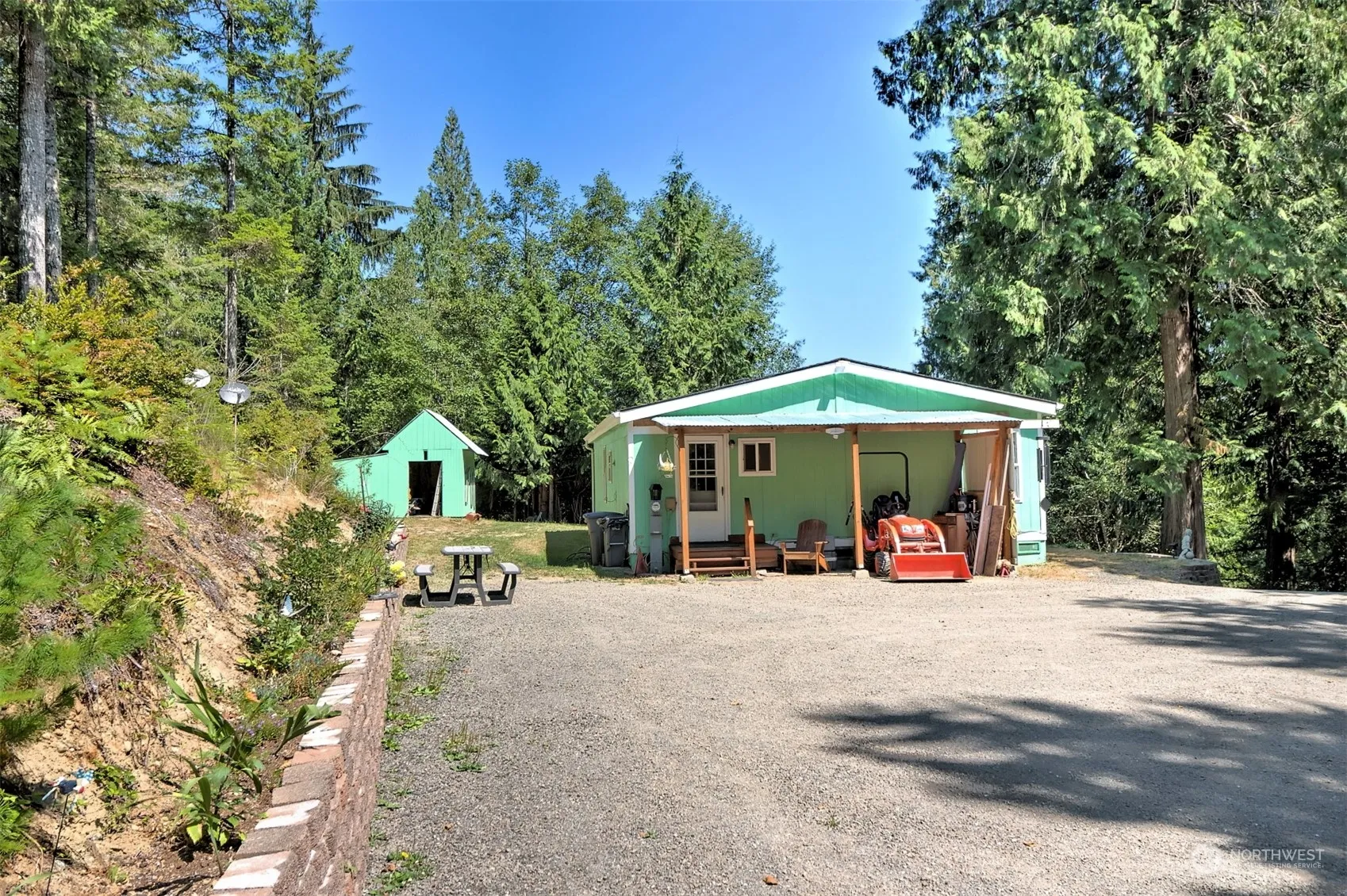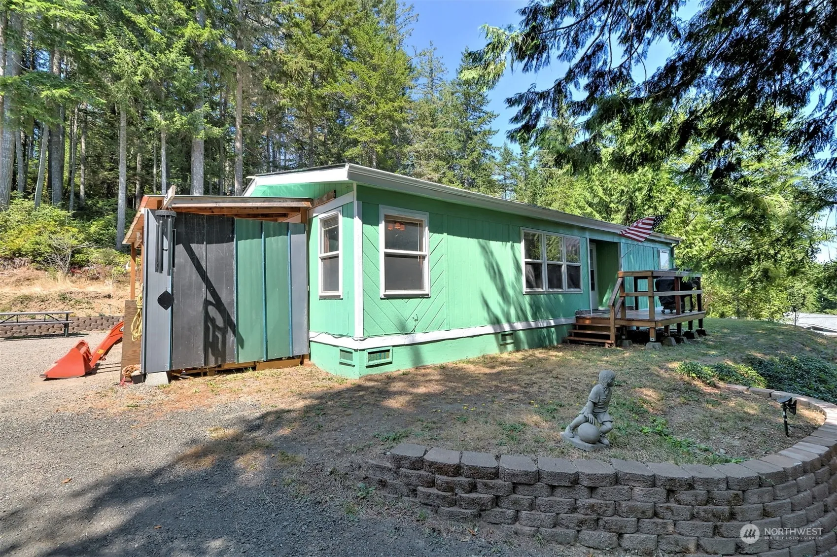 A little bit of country but close in with easy commute to PSNS, Bangor, ferries, schools,town, lots of recreational opportunities and areas beyond. A forested setting of affordable 3.7 acres with a camping spot by the creek below, offers lots of room for outdoor entertaining and gardening. Wander up the driveway to a cute and cozy home, waiting for you to make it your own. A little bit of TLC and it will be the perfect home for your new memories. New roof, newer furnace, one remodeled bathroom and newer electrical are an added bonus. Outbuilding to store your tools. Great location at great price.