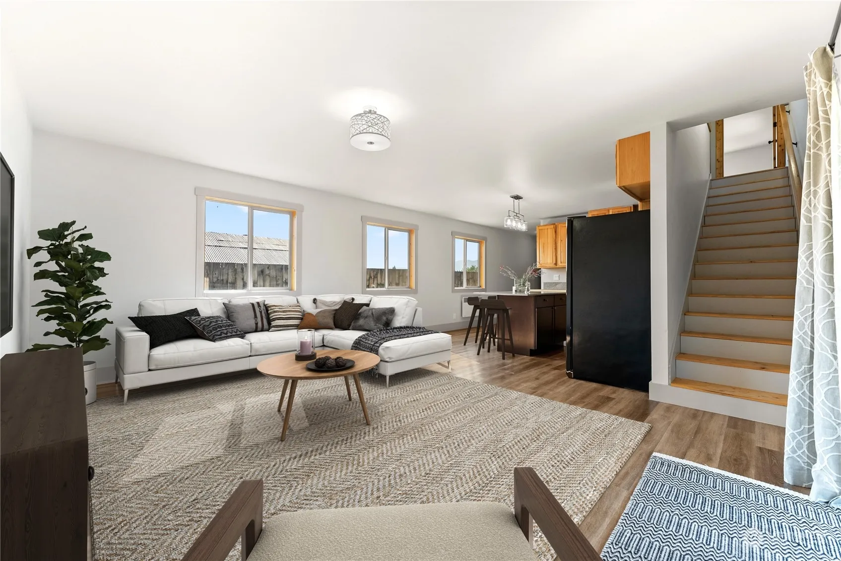 Incredible modern In-Town Home. This custom-built 3-bedroom, 2½-bathroom, two-story home is situated on a spacious irrigated lot at the end of a private road. The thoughtfully designed interior emphasizes efficiency and low maintenance and showcases a range of modern quality features, including luxury vinyl plank and porcelain tile flooring, porcelain tile and quartz countertops, natural hickory cabinets, and board-and-batten cement siding. The property offers stunning views of the mountains and a great setting to kick back and enjoy the natural beauty. With river access just two blocks away and downtown within walking distance, this home offers both convenience and a prime location.