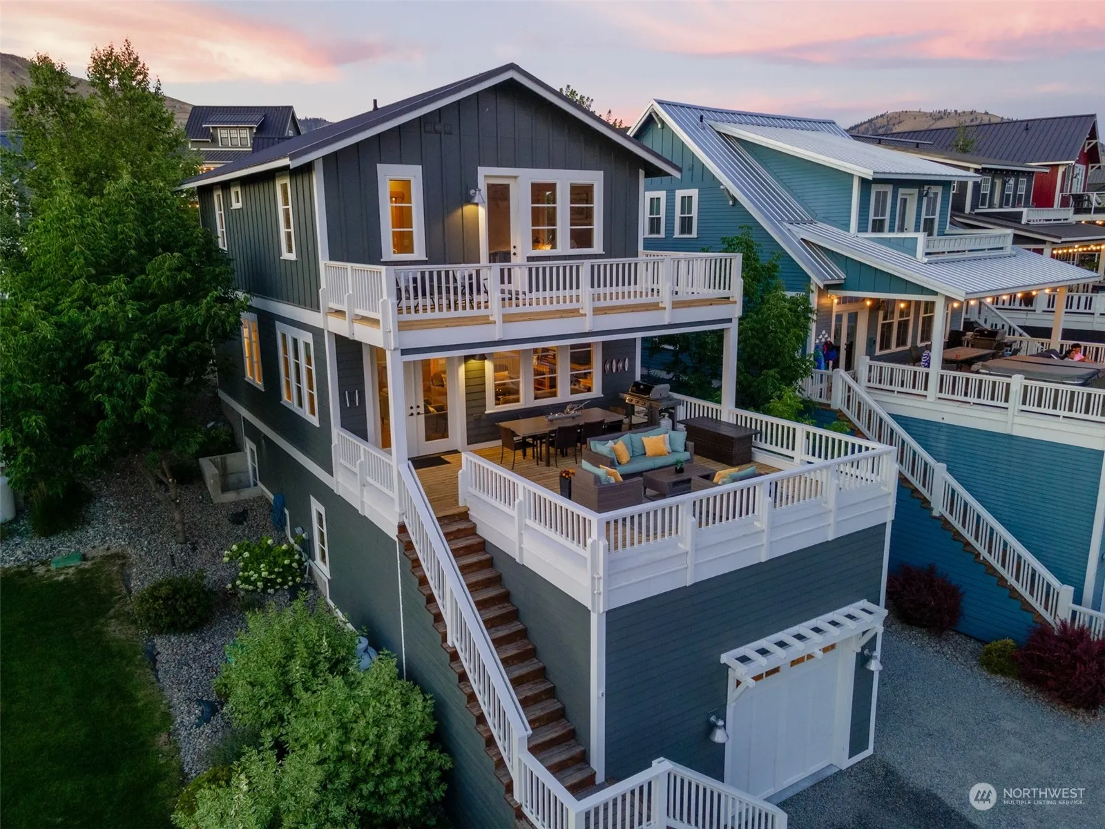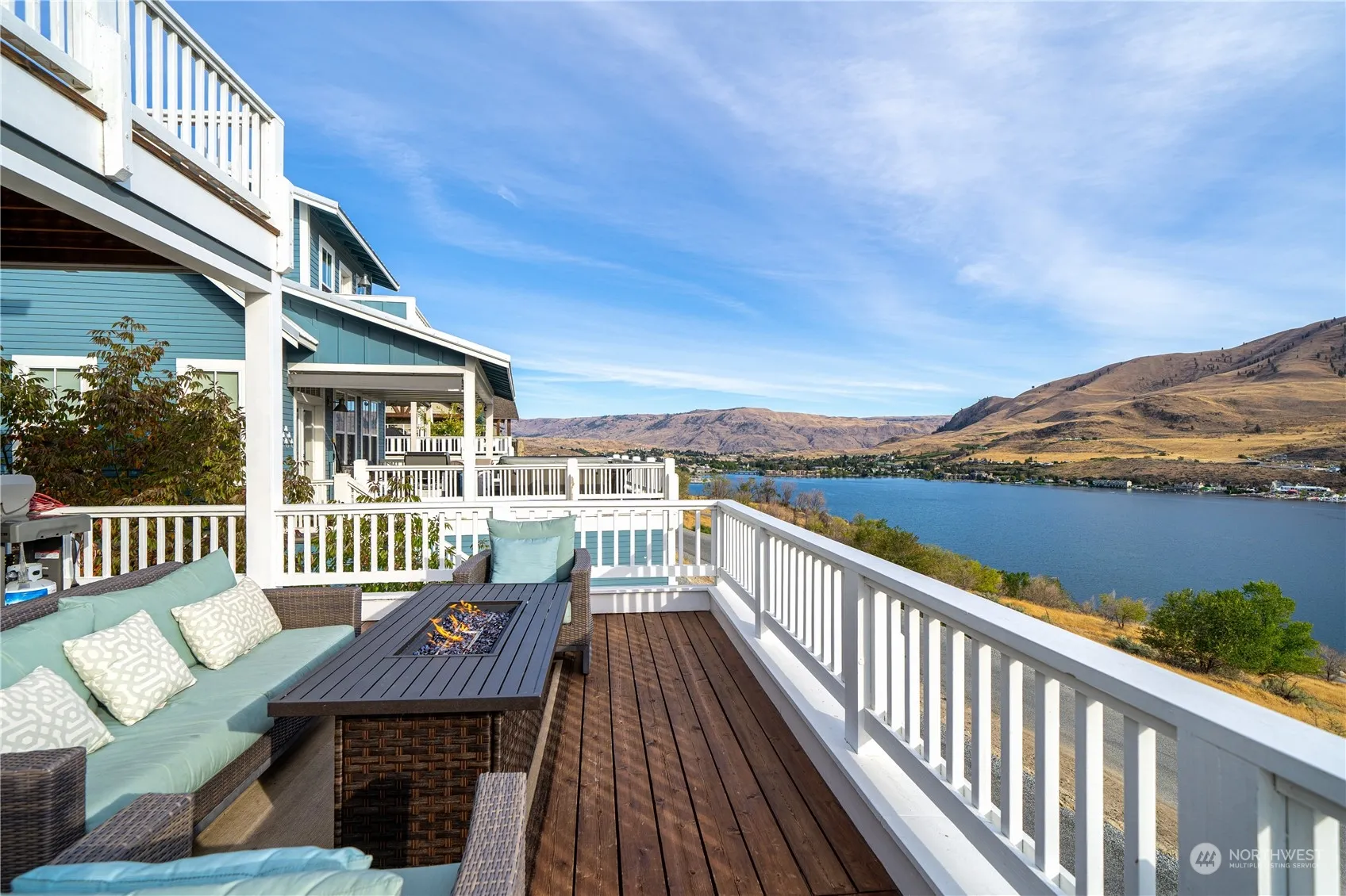 Incredible opportunity for a fully turn-key home at The Lookout w/ a premier location & unparalleled 180° views of Lake Chelan; just steps from the hilltop pool, waterfront & marina. This 4bd/3.25bth, 2,683SF home features a main level w/ kitchen/dining/living room leading to an expansive view deck w/ dining, BBQ & lounge area for the best in indoor/outdoor living. The upper level offers a Primary Suite w/ a view balcony & 2 additional guest bedrooms. The lower level features a large media room, bunk room, outdoor fire pit & attached garage & play room w/ ping pong table. The Lookout offers community waterfront w/ sandy beach, private marina, parks, pools, playgrounds & more! Great vacation rental home w/ on-site management & hospitality.