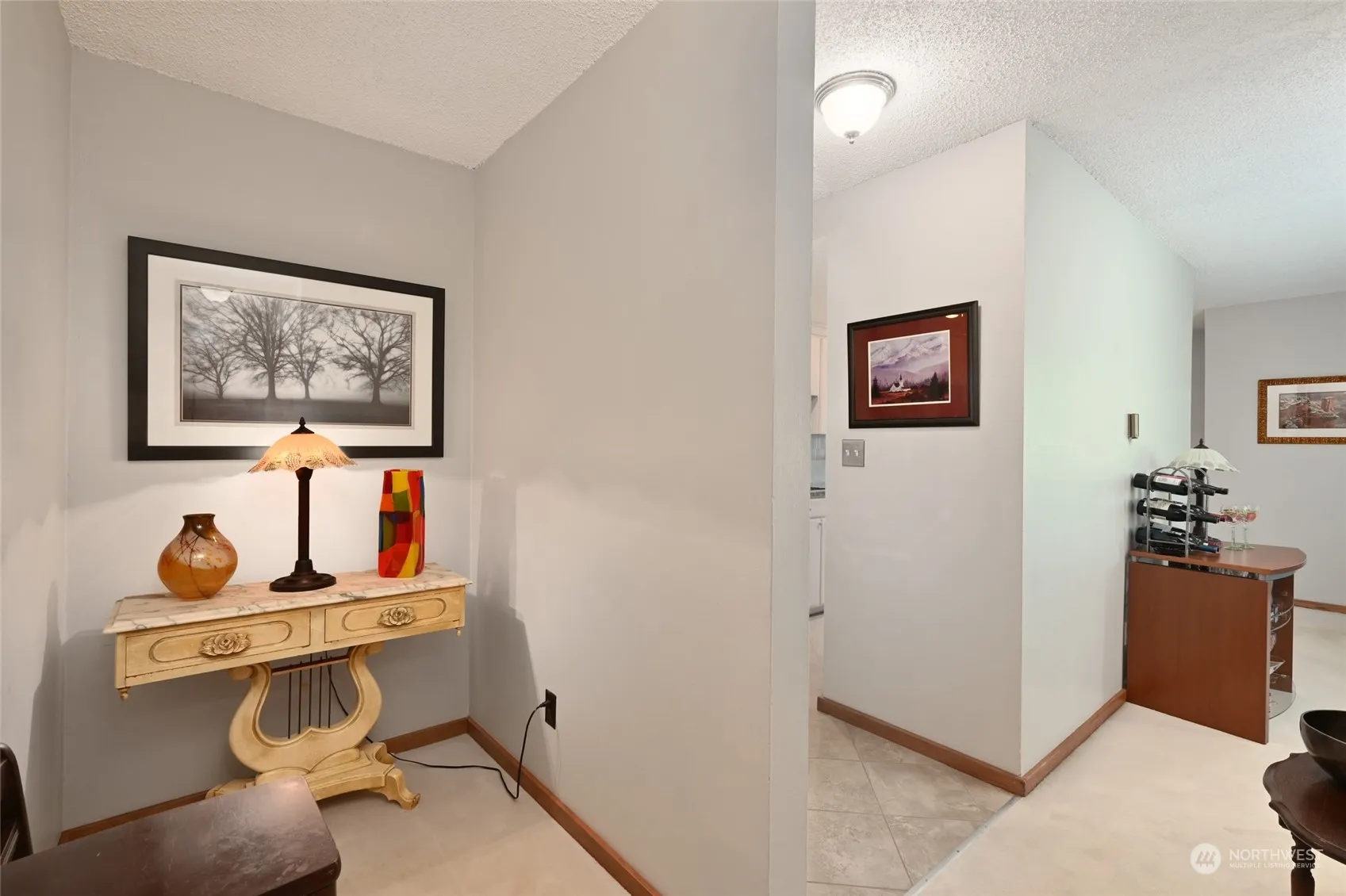 Top Floor Corner Unit! 2-bedroom/ 1.75 bath in Richmond Beach! Updated kitchen and Primary Suite with granite counter tops and stainless appliances. Super clean, bright, fluffy carpeting. Lots of windows for natural light. Deck surrounded by treetops and views of landscaped greenery. Primary ensuite updated with birch closet doors and full bath update. Office nook in the hallway outside 2nd Bedroom. Radiant heat in ceiling. One (1) pet. Less than 1 block to Starbucks, QFC and near to Saltwater Beach & Library Parks, & Community College. Outdoor pool for Sumer fun at Richmond Village. The one you’ve been waiting for!