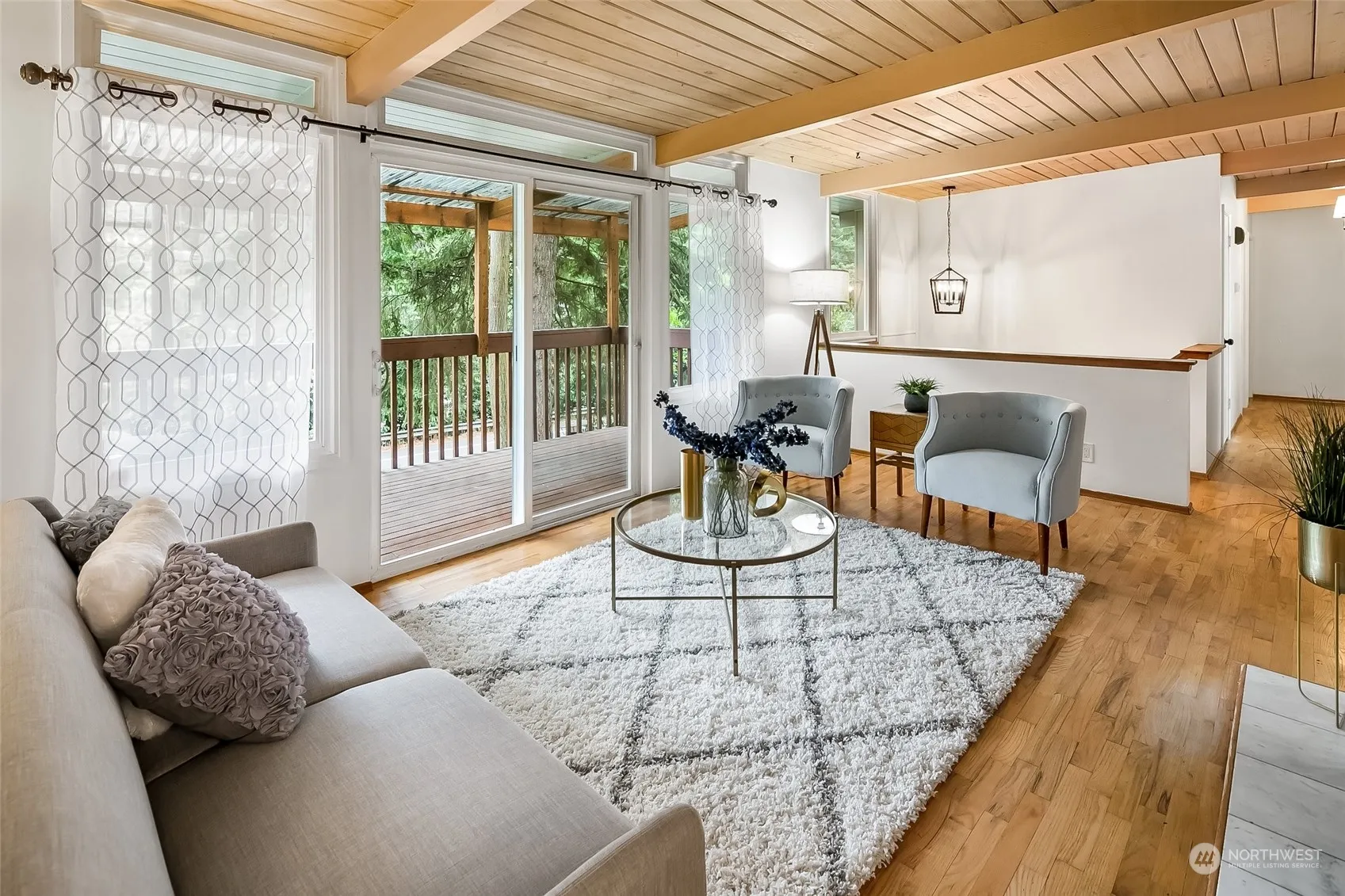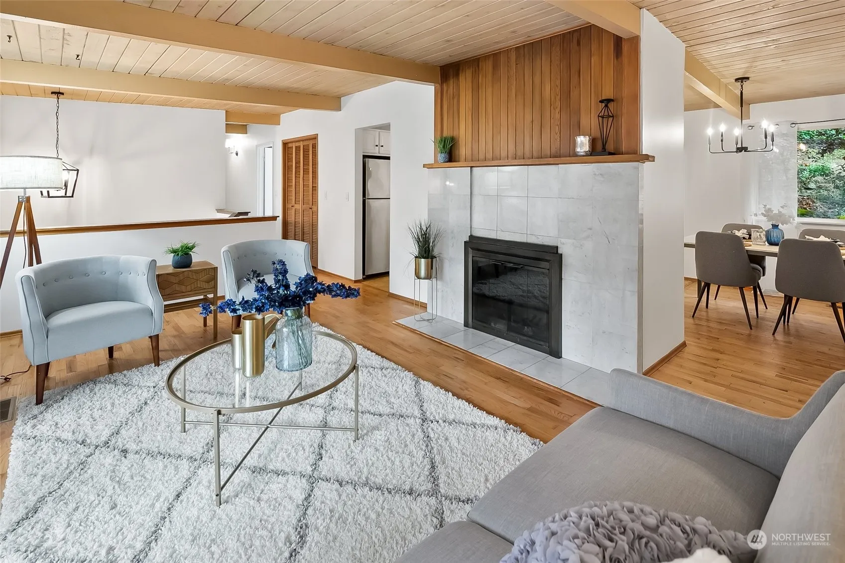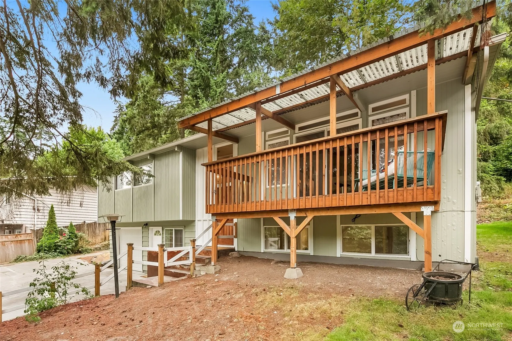 Welcome to thriving city life & a park like backyard in this Richmond Highlands multigenerational home. Upstairs features vaulted tongue & groove beamed ceilings, primary with ensuite & walk in closet, 2 additional bedrooms, and an addtl full bathroom, with W/D. Downstairs you’ll find ADU/MIL potential & possibility for a separate 1 bedroom unit with full kitchen, 3/4 bathroom, W/D, living space, eating space and separate entry. New paint and flooring. Transportation is at your front door with convenient bus access & easy commuting from the new light rail station. Minutes to St Luke School, Shorewood High School, Shoreline Community College, Shopping & Richmond Beach all just a short few blocks, bike or drive away. Sidewalks coming 2025