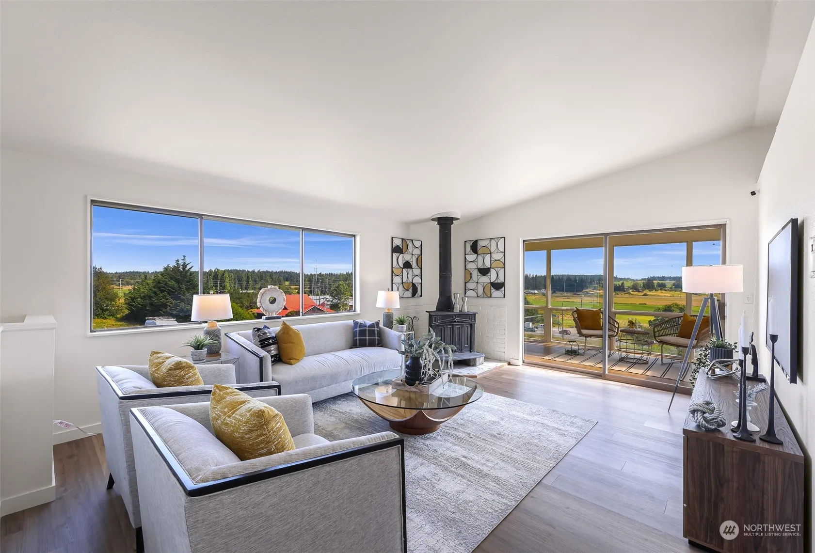 $60,000 BELOW APPRAISED VALUE!!! —Inspected, fully updated & move in ready— daylight basement rambler on sprawling 2.5 acres. Island living yet only minutes to shopping/dining/I5. GRANITE kitchen w/ tons of cabinet & counter space & full dining room. Huge living room w/ vaulted ceilings & slider to glass enclosed deck to enjoy the panoramic views. Primary suite w/ skylights for natural light, attached 3/4 bath & adjoining sitting room. 2 addtl bedrooms, bonus room & full guest bath on main. Fully finished basement features 2 large living rooms, 3/4 bath, bonus room, utility room & storage. Outside find huge 30×36 3 bay shop, bring the toys! 416sq.ft storage area. Second large detached shop w/ power. Round riding arena. BRAND NEW WINDOWS