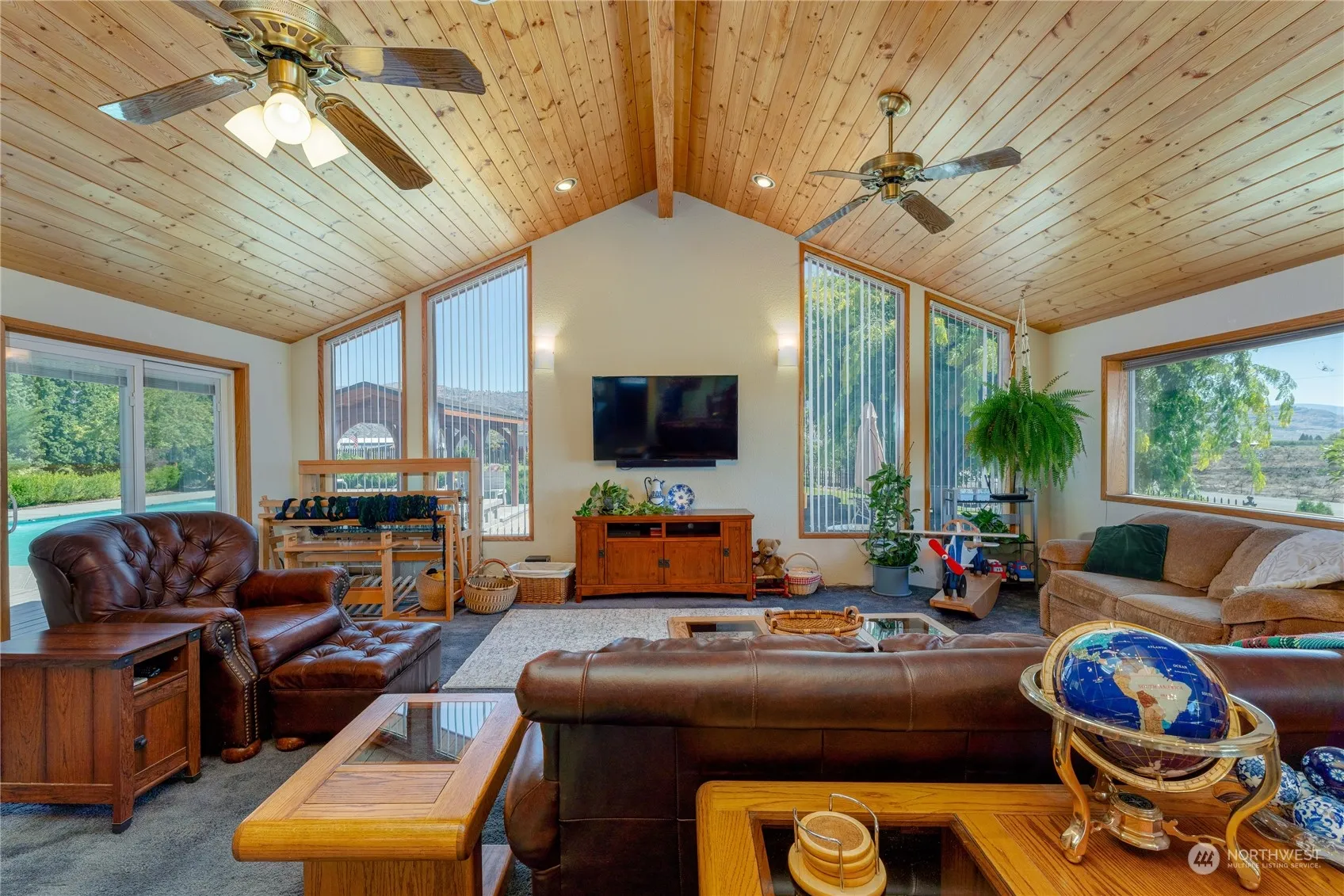 Taxi right off the runway from the Omak Aiport to this stunning property. 70 x 36 ft hanger with 40 ft main door plus auxiliary shop space. Additional shop space in 40 x 22 ft enclosed and insulated Quonset hut. Entertainers’ dream with in-ground concrete pool, outdoor kitchen, private pool bathroom and pergola. Serenity garden, relaxing water feature, propane fire pit table and fully-fenced yard with mature landscaping complete the outdoor oasis. This light-filled home features an open great room with vaulted pine-planked ceilings. Main floor primary bedroom with en suite bath, jetted soaking tub and cedar sauna. Numerous updates including new Carrier heat pump in 2023, new roof and facia in 2019 & new pool pumps and filter in 2019.