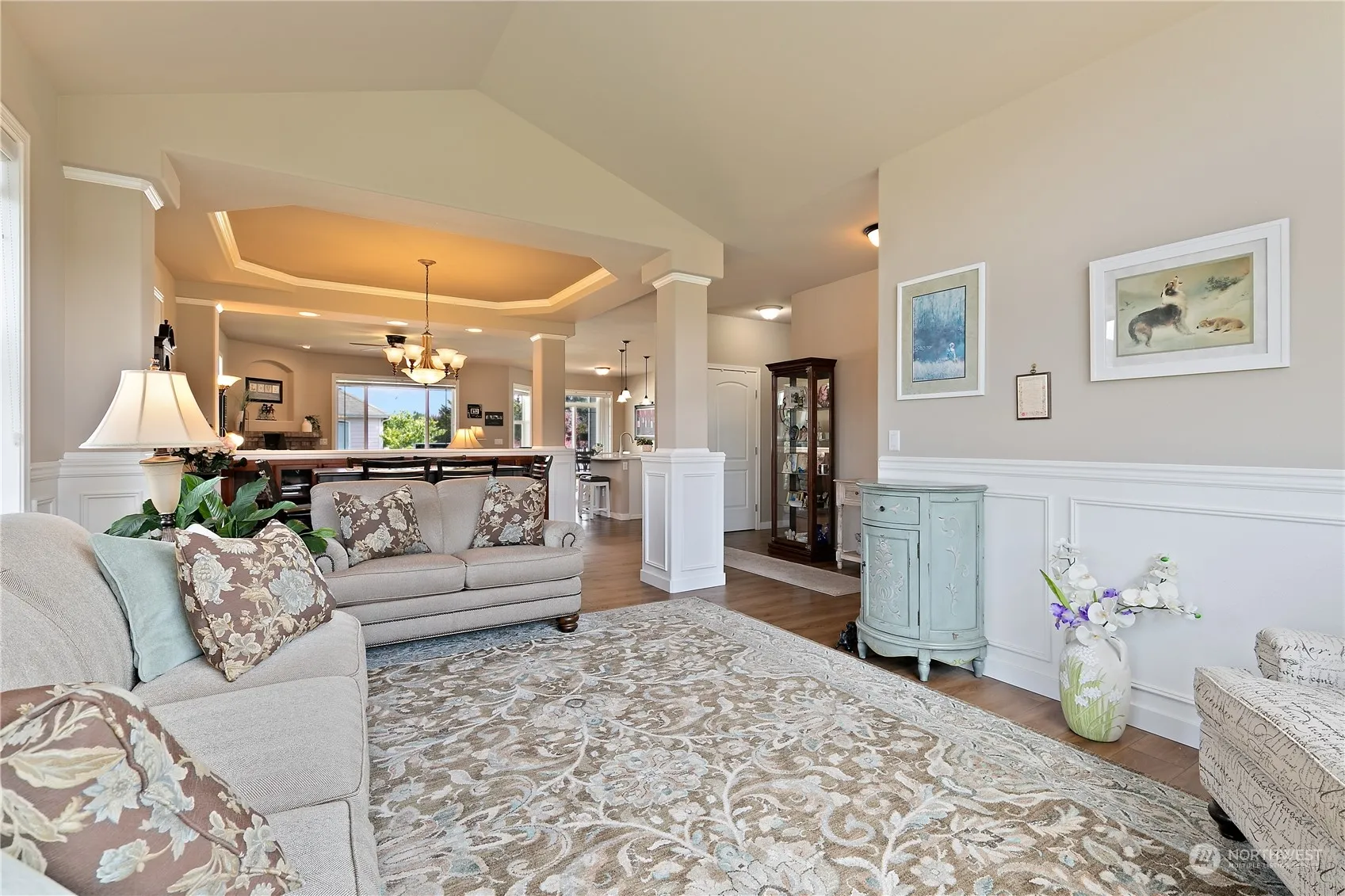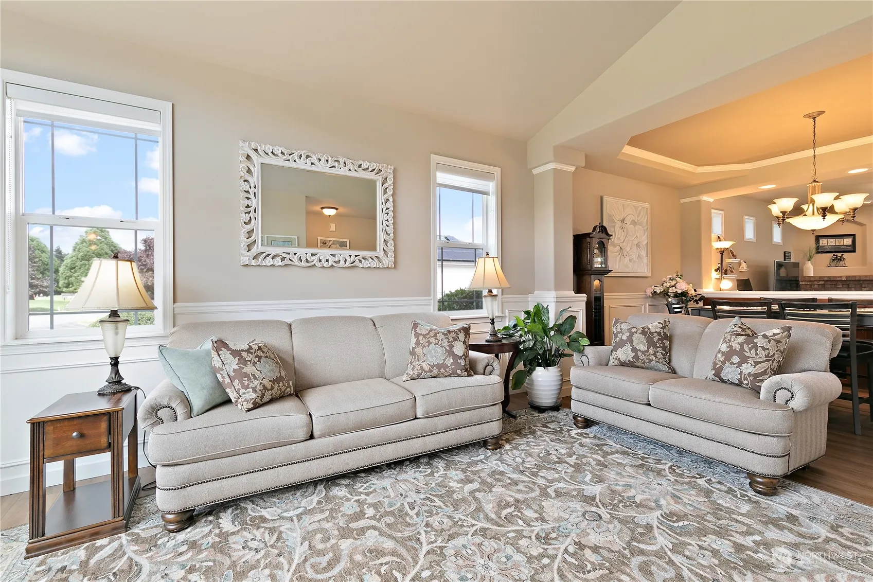 Discover this custom 3 bed, 2 bath rambler in the sought-after Spyglass division in High Cedars. Located just across from High Cedars Golf Course, this home offers stunning views of Mt. Rainier & has been meticulously updated. The beautiful, fully remodeled kitchen features quartz counters/island, SS appliances & white cabinets. New int & ext paint, & premium LVP throughout. Situated on a spacious .36-acre lot, the property boasts a brand-new composite deck & covered patio, fully fenced & lighted backyard, what a perfect setting for outdoor enjoyment & views! Additional features include a 2-car garage & detached 640 sq ft shop -fully insulated & heated, ideal for RV storage/ workshop. Beautiful updates throughout, do not miss this one!