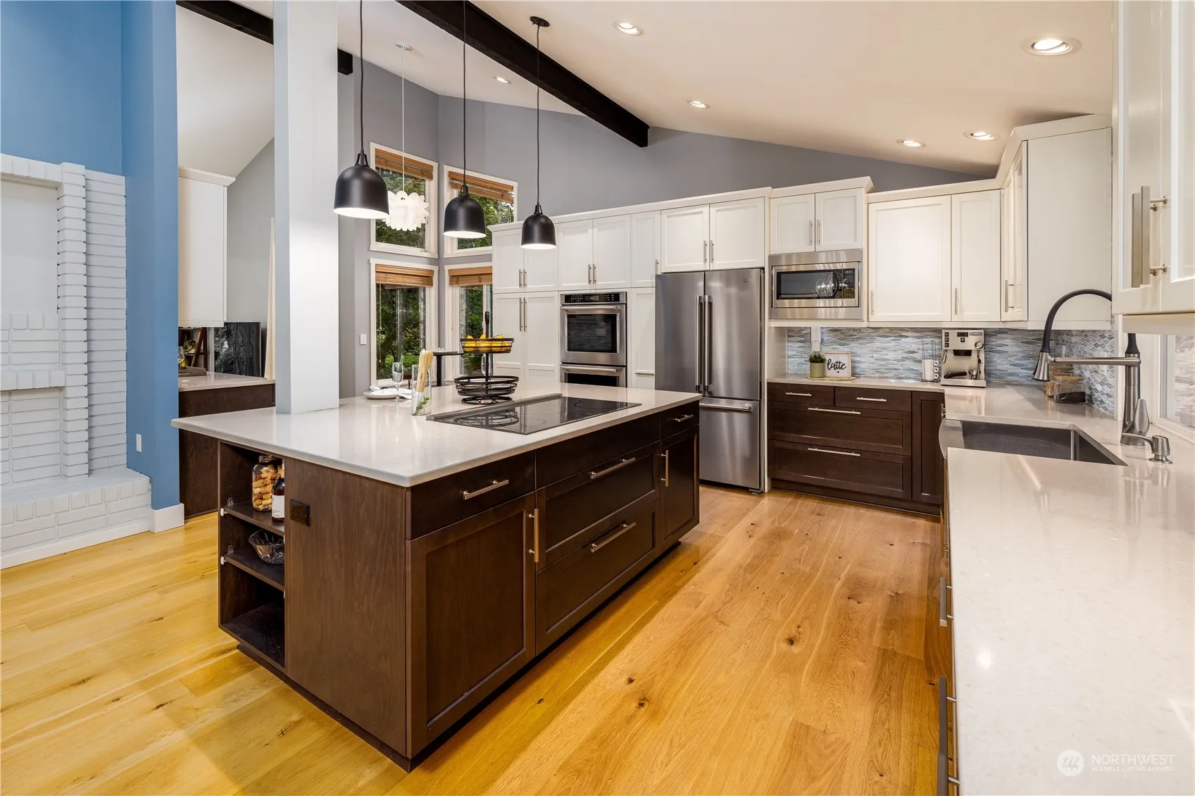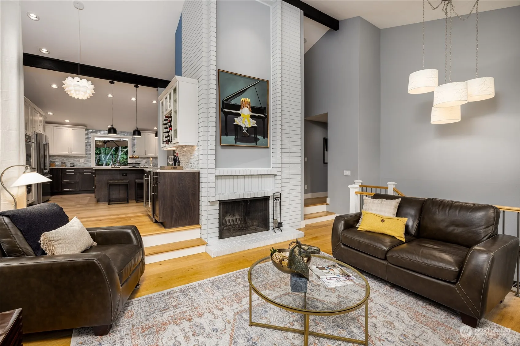 Quality updated home in desired Mill Creek Community situated on a fabulous cul-de-sac. Stunning kitchen with quartz countertops, induction cooktop, spacious island, bar with beverage fridge, and smart lighting. French oak flooring and two mid-century fireplaces host the kitchen, living and dining rooms. Down the hall you’ll find the primary bedroom with ensuite and walk-in closet, updated bath, and two additional bedrooms. A bright fourth bedroom, rec-room with fireplace, bath, and utility room all on the lower level. 2 car garage with shop space, and EV charging. Don’t miss the park hidden behind the serene backyard. Stroll to the Town Center on the miles of walking trails. Enjoy the golf course, great schools in a vibrant community.