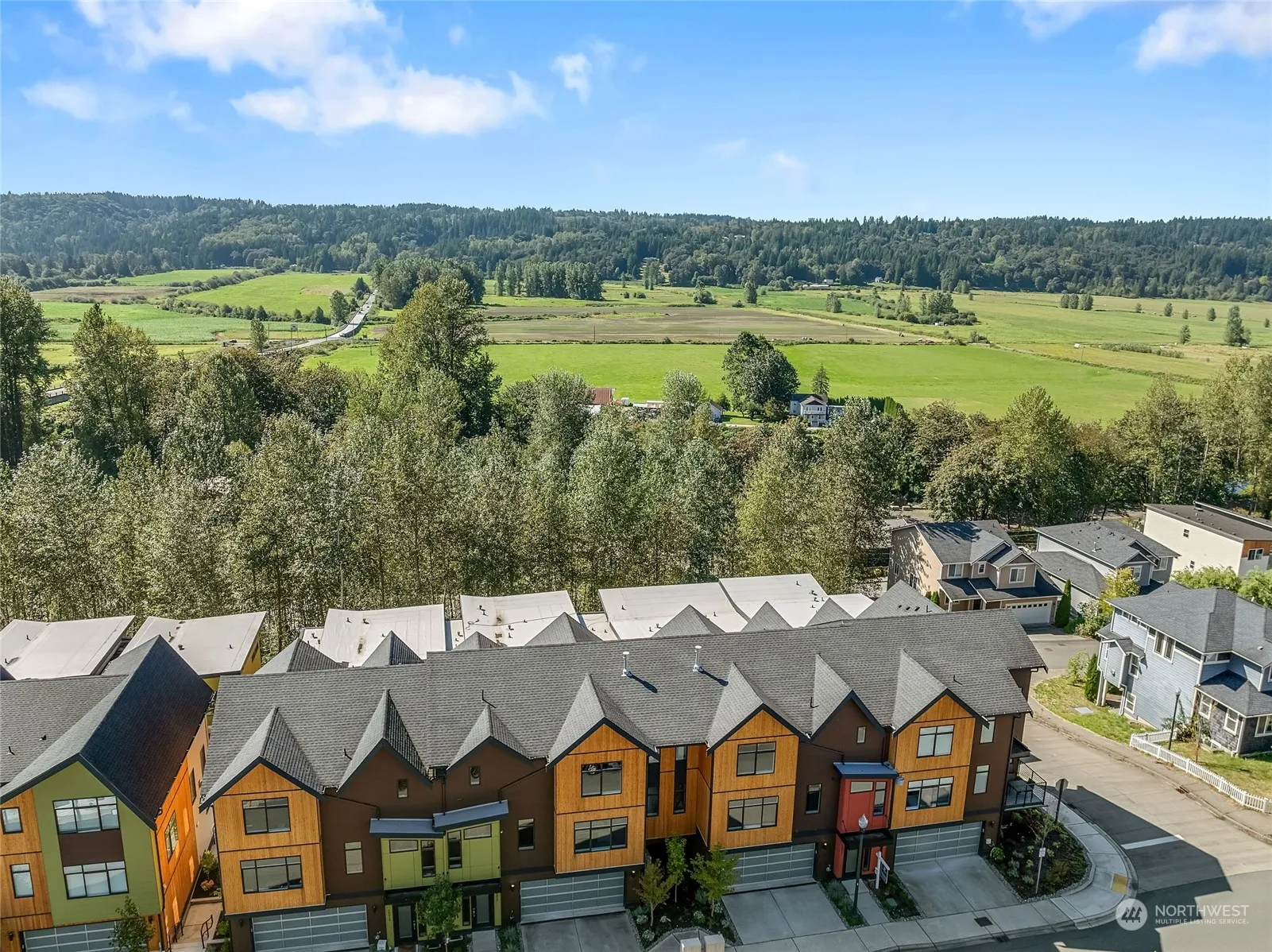 3 bedrooms with their own attached bathroom. This ensuite package is truly magnificent. It ensures privacy and luxury for all residents. High ceilings, luxury amenities and modern finishes. A giant great room kitchen/living concept with the kitchen and its granite countertops and high end touches opens to a living and dining area that is great for entertaining. Enjoy the cozy gas fireplace, perfect for relaxing evenings. Located in a vibrant community, you’re just steps away from local parks, beaches, schools, and the charming downtown of Duvall. Truly pick one of 10 restaurant’s you can walk to in 5 minutes. This townhome is designed for those who appreciate the finer things in life and seek a blend of style, comfort, and convenience.