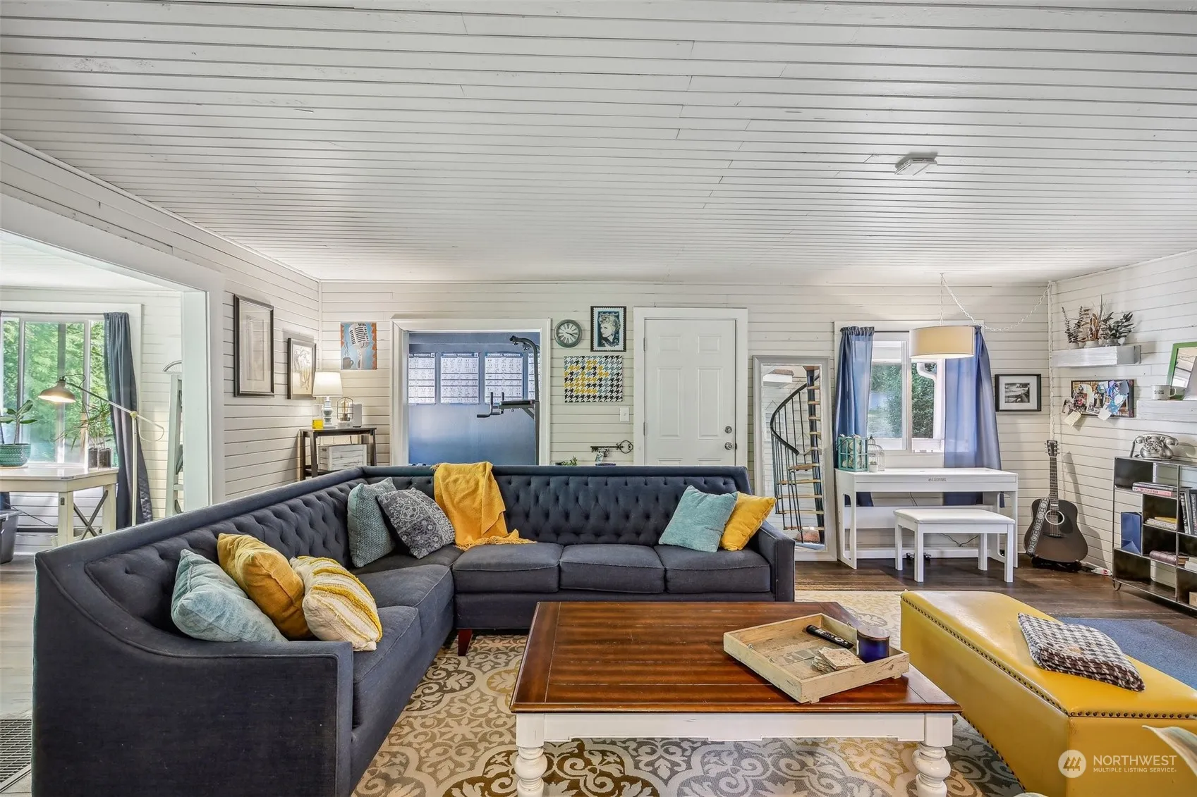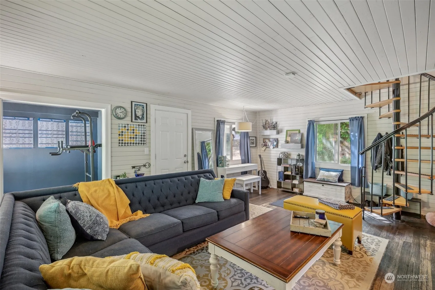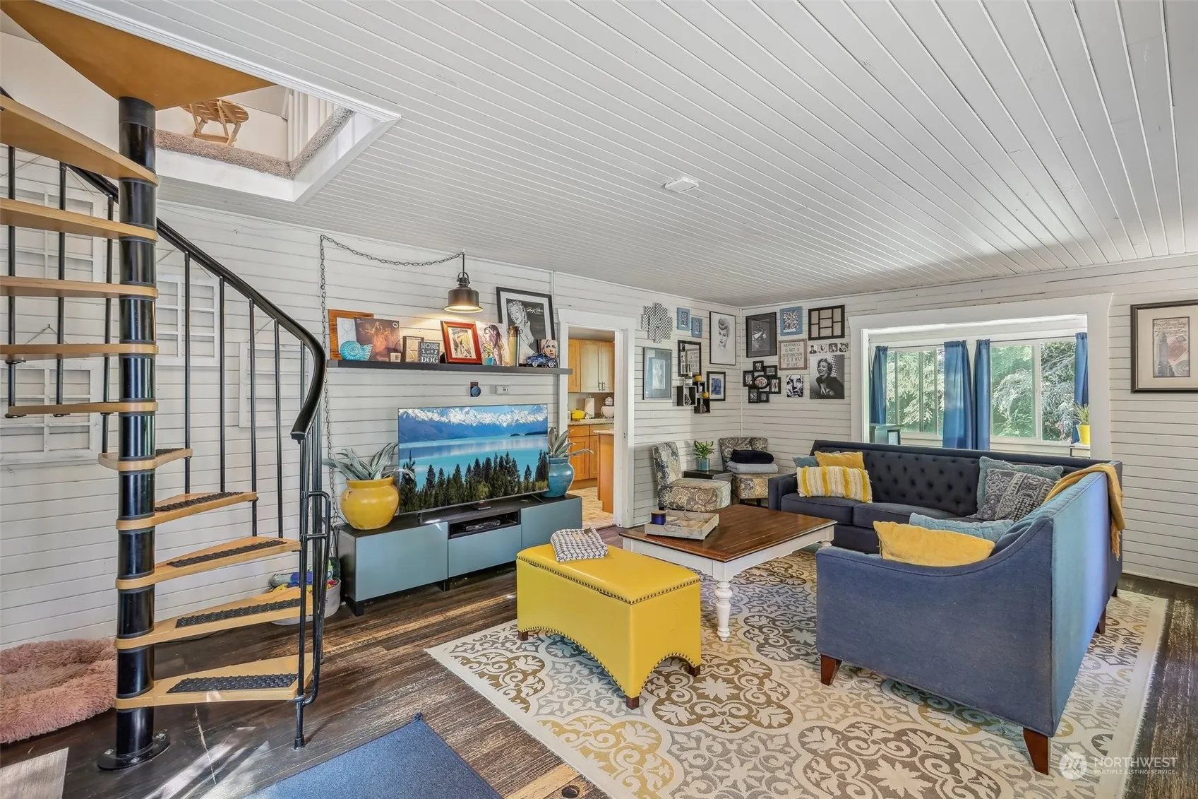 Welcome to this bright and airy cottage, bathed in natural light and brimming with charm. Perfectly situated close to parks, schools, and just a short drive to the Bainbridge ferry, this home offers both convenience and a tranquil retreat. Step inside to discover a cozy living space with a unique spiral staircase leading to the loft bedroom, creating a quaint and intimate atmosphere. The home also features a large fenced backyard, surrounded by mature trees, providing privacy and a serene outdoor space for relaxation or entertaining. The sunroom has enough space for an office or reading nook, offering the versatility to fit your lifestyle.Don’t miss out on this adorable cottage with endless possibilities. Schedule your showing today!
