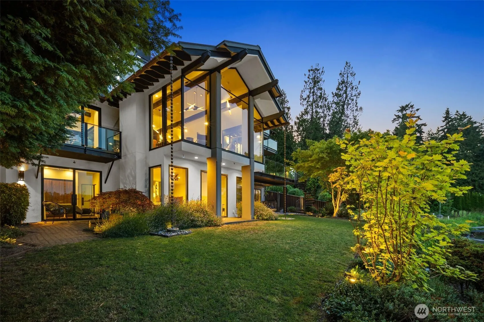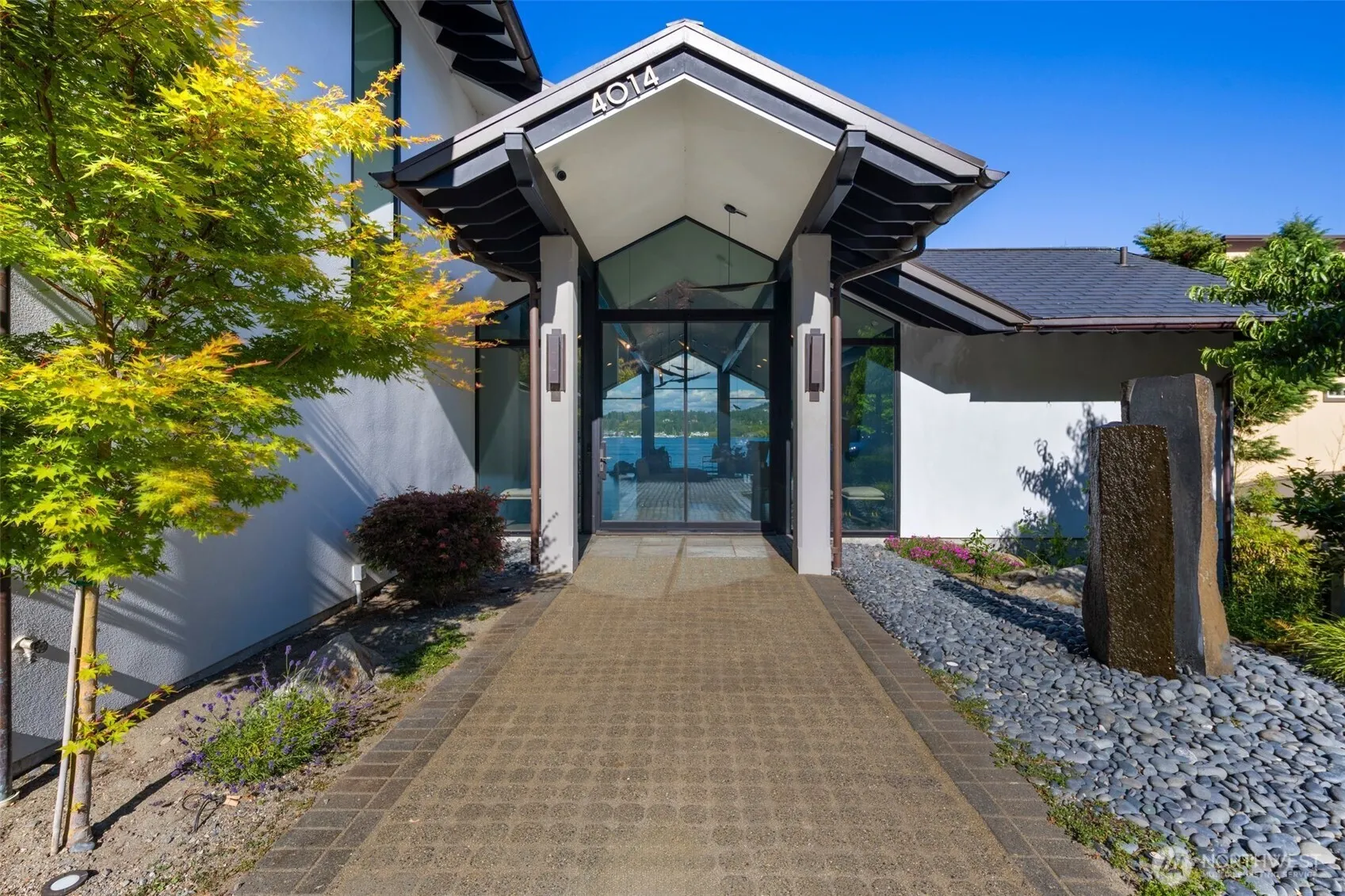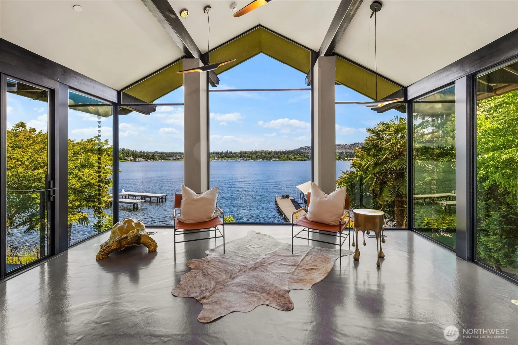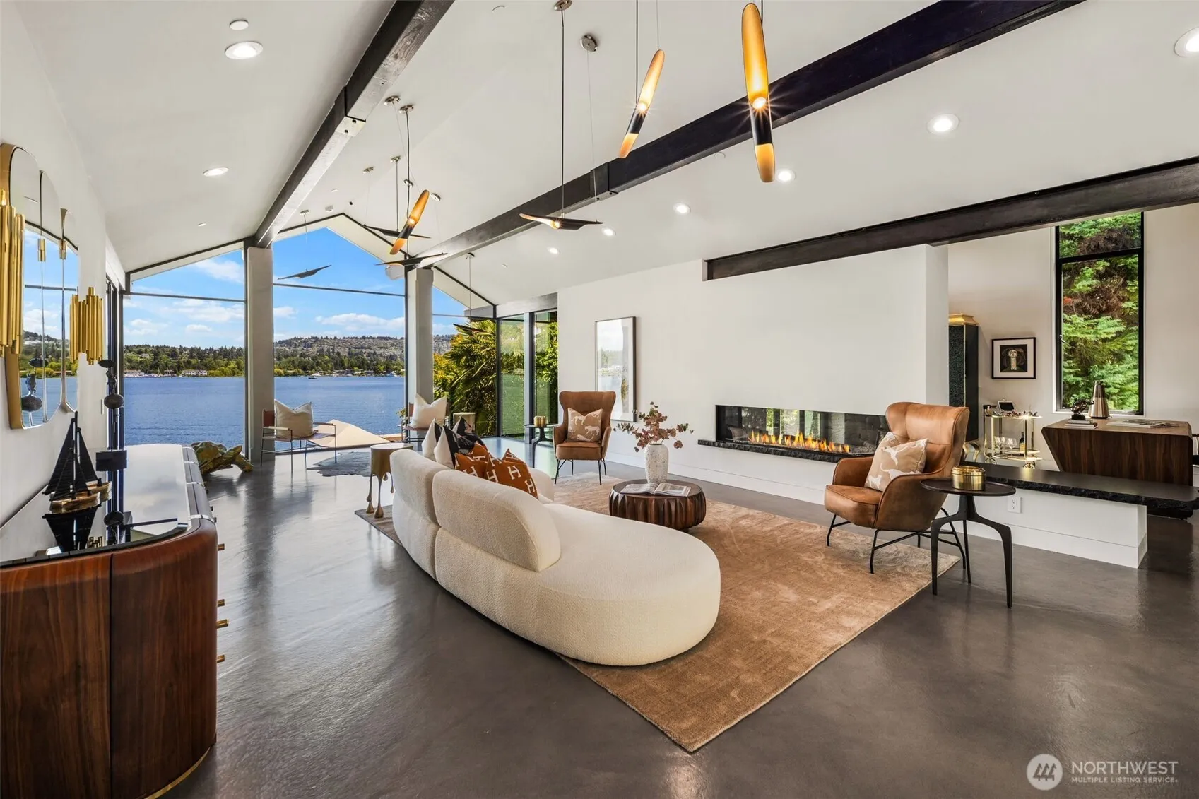 Experience refined lakefront living in this reimagined NW contemporary masterpiece, tucked away on the coveted shores of Mercer Island. Originally designed by Ross & Ralph Anderson. Privately gated with a secluded path, the estate boasts 80+ ft of rare no-bank waterfront, private covered dock—perfect for embracing the boating lifestyle on Lake WA. Every detail has been artfully curated: expansive slab marble, custom Smart steel doors & windows, and a sculptural staircase, all crowned by a copper roof and fencing. A designer kitchen & showstopping primary suite with spa-inspired bath elevate everyday living. Walls of glass frame unobstructed lake vistas, while dramatic indoor-outdoor spaces invite both grand entertaining and serene retreat.