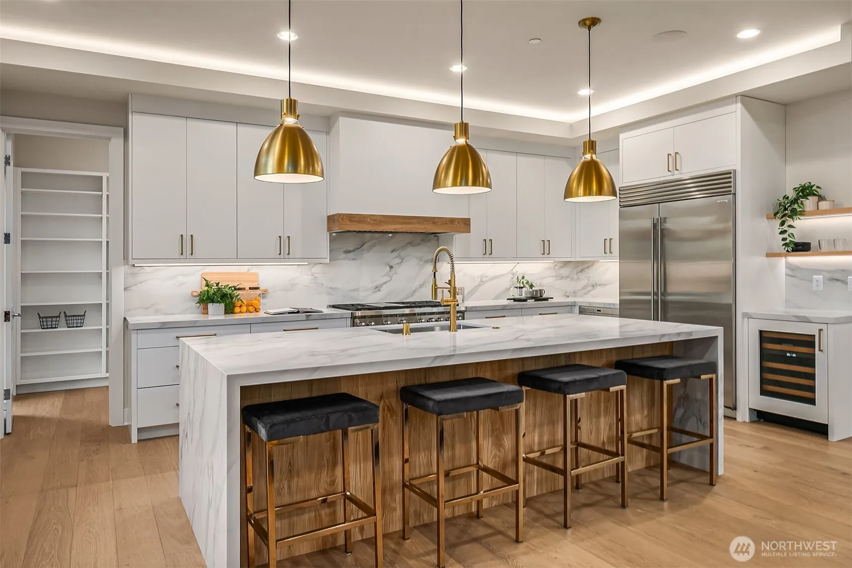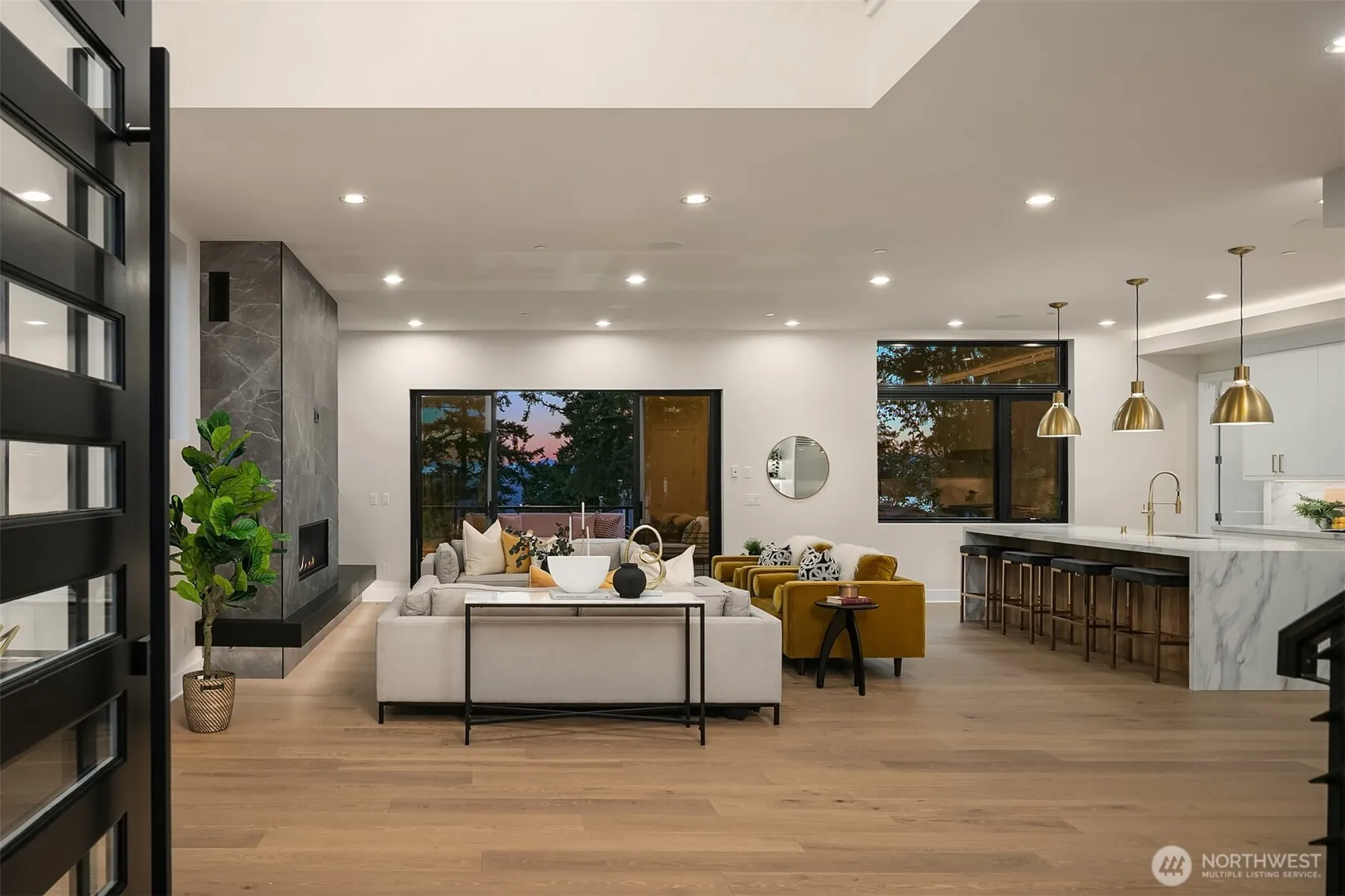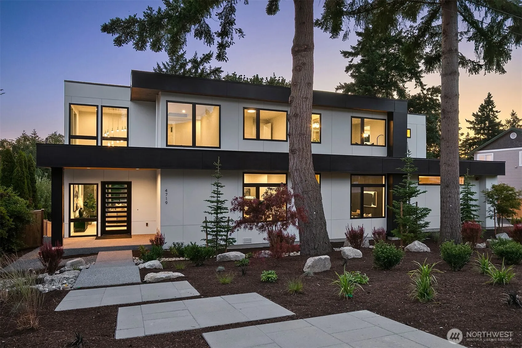 A modern masterpiece in Mercer Island, newly completed by Design Built Homes and designed by McCullough Architects to maximize natural light and Lake Washington views. Desirable open-concept living with double height entry, great room, Chef’s kitchen, gourmet island, formal dining, office, and covered patio with Infratech heaters and 3 fireplaces. Wide-plank European Oak, commercial Wolf/Sub-Zero, Anderson Windows, security, solar, & car charging. Thoughtful layout with 5 bedroom suites, including a main floor gen-suite & upper primary with water views, massive deck, and a luxurious bathroom and closet package. Nearly 15,000 square feet of property with a fully fenced backyard and 3-car garage.