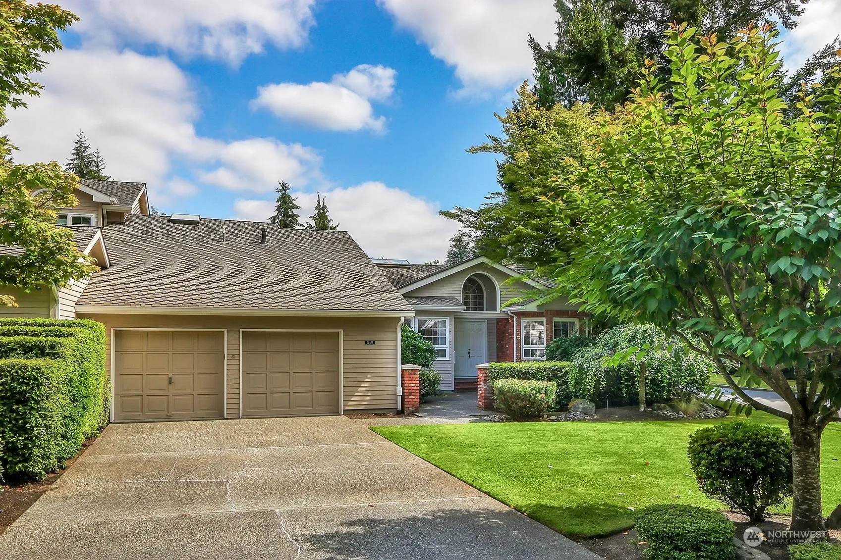 A wonderful townhome and condo alternative with easy, one-level living in the lovely Pembrook neighborhood at Mill Creek. Handsome hardwood floors throughout, new carpet, formal & informal living and dining, two gas fireplaces, and light and bright living spaces with vaulted ceilings. Sizable primary suite with walk-in closet and 5-piece bath draped in tile. A large corner lot with a private patio off the kitchen and family room is perfect for entertainment overflow. Sizable attached two-car garage off the laundry with pull-down stairs to loft storage, Just minutes to the Mill Creek Country Club, Town Center, parks, and walking trails.