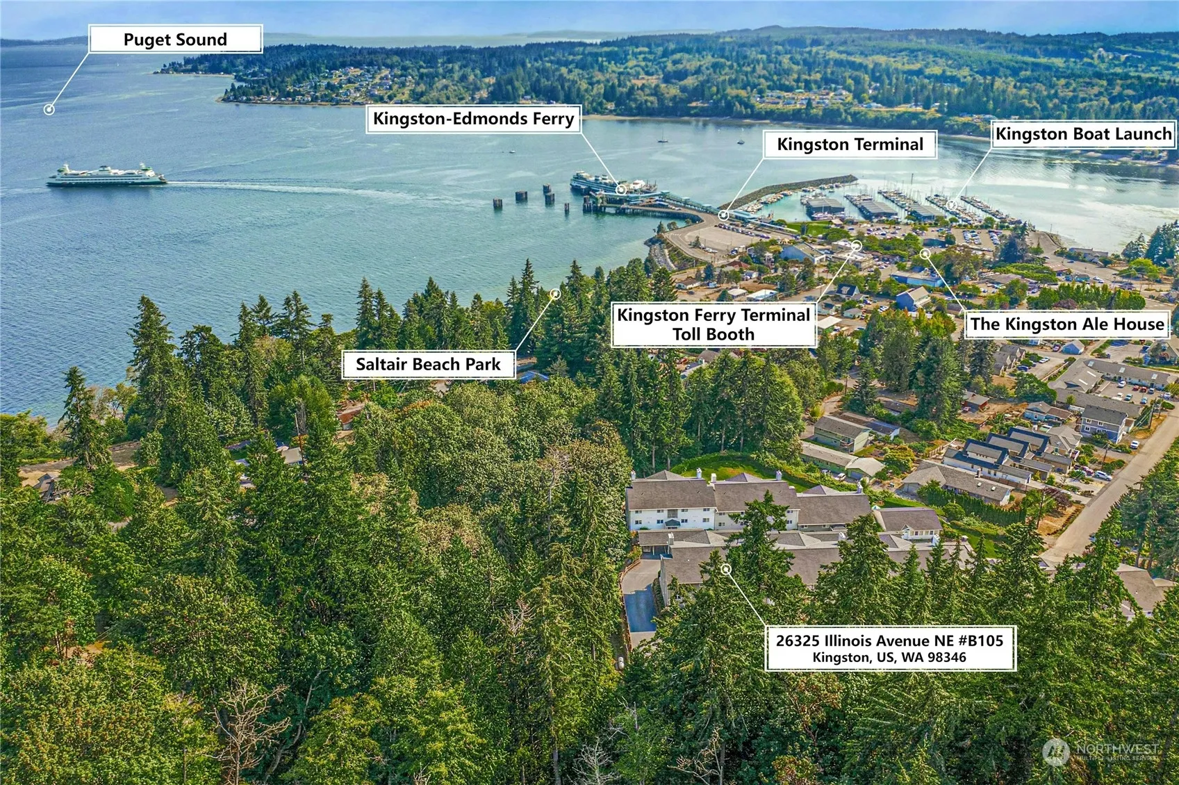 Charming 1 story 3-Bedroom corner condo in Coastal Kingston: Experience the charm of Kingston’s coastal community by discovering urban living at its best in this freshly painted, bright one-story condo, just minutes from the Kingston/Edmonds ferry and the Seattle walk on ferry, shops, restaurants & parks. The spacious living room, centered around a cozy gas fireplace, opens to a back patio, perfect for enjoying your morning coffee or evening drink. The home has 3 bedrooms which include the primary suite with full bath. Nestled in a prime location, this home offers easy access to schools and amenities, making daily life a breeze. Enjoy the serene beauty of your surroundings in this peace filled coastal community just minutes to everything!