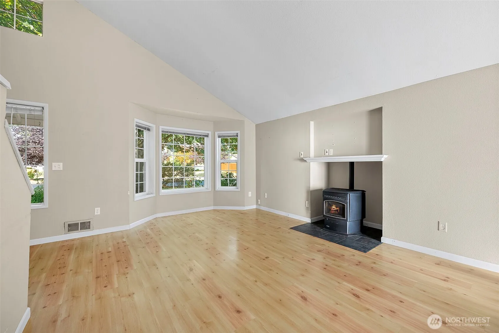 Welcome to this beautifully maintained 3 bedroom, 2 bath home that truly checks all the boxes. Vaulted ceilings + hardwood floors + fresh paint give it instant charm, while AC keeps you cool and a pellet stove keeps you cozy. The kitchen shines with granite countertops and stainless steel appliances, offering both style & function. Upstairs you’ll find the large primary suite w/full bath, walk-in closet & private deck. 2 additional bedrooms & a full bathroom. Step outside to a deck that includes garden boxes & a huge backyard offering plenty of room to play, and perfect for gatherings. Tucked in a quiet neighborhood with no HOA and close to amenities—this is home sweet home.