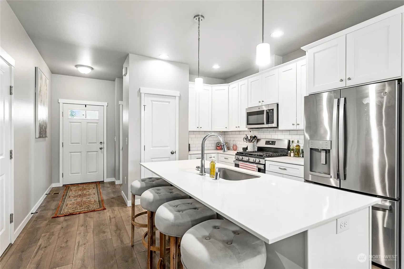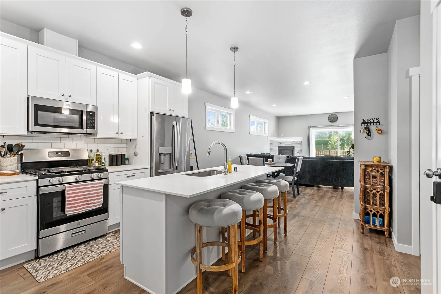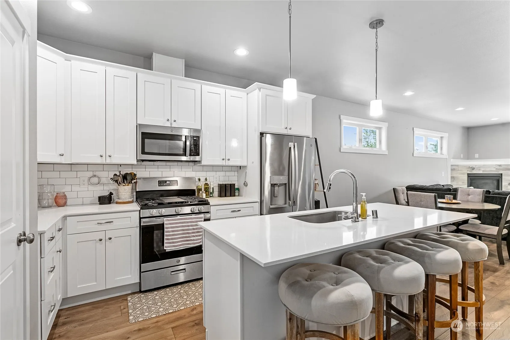 Discover the perfect blend of comfort & style in this modern condo that offers the space & feel of a single-family home. With 1,487 sq ft, it tastefully features 2 beds & 2.5 baths, including a main-floor primary suite! The open-concept layout showcases a pristine kitchen w/SS appliances & generous countertops, ideal for cooking & entertaining. Enjoy the seamless transition to the living room, complete with a cozy gas fireplace. The upper level offers a second living space, bedroom, bath and finished office/bedroom! Private deck and newly fenced backyard, perfect for BBQs and gatherings! Just minutes from Bellingham, Lynden, and Canadian Border with easy access to shopping, dining, and directly across from Raspberry Ridge Golf Course.