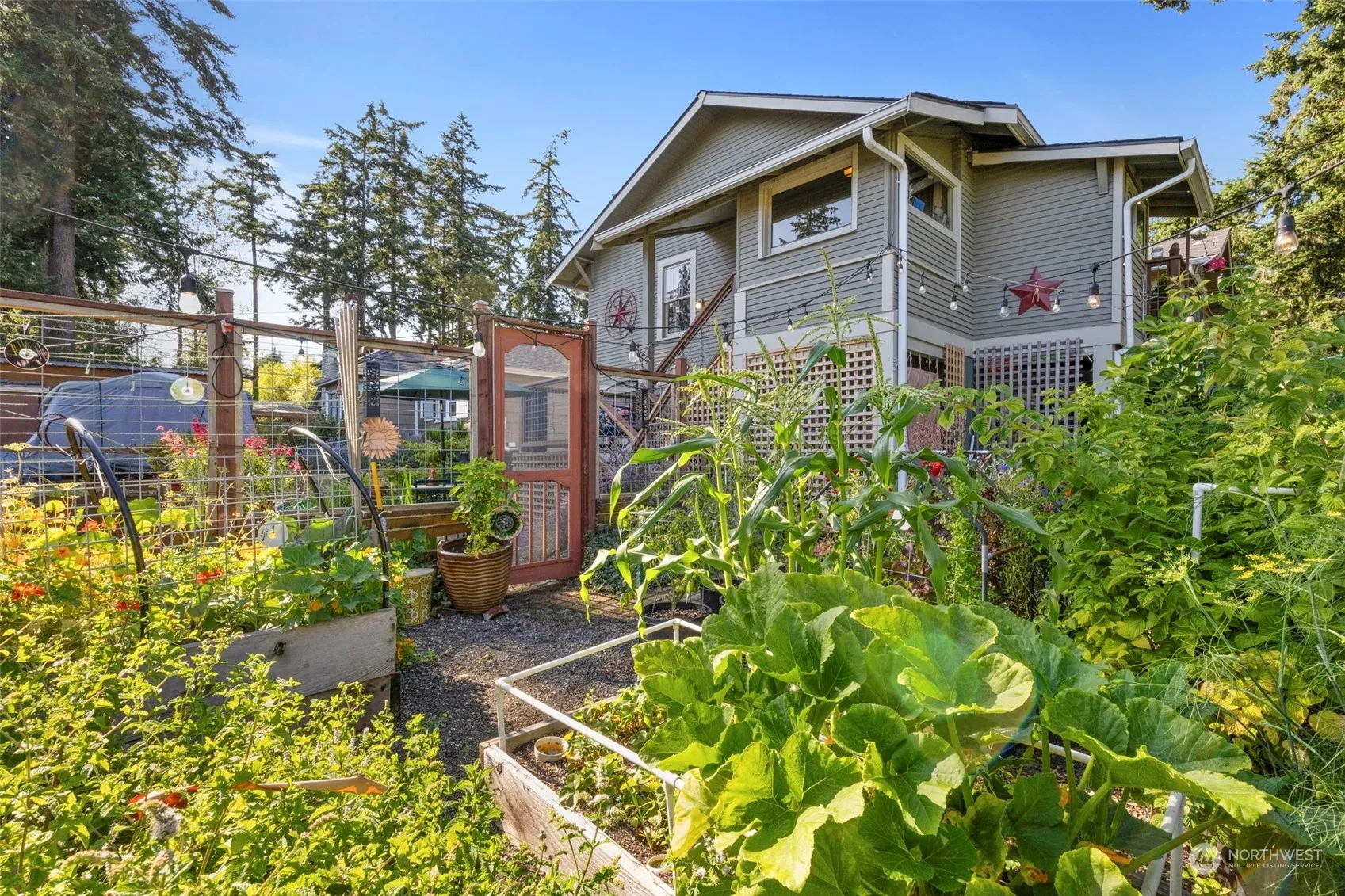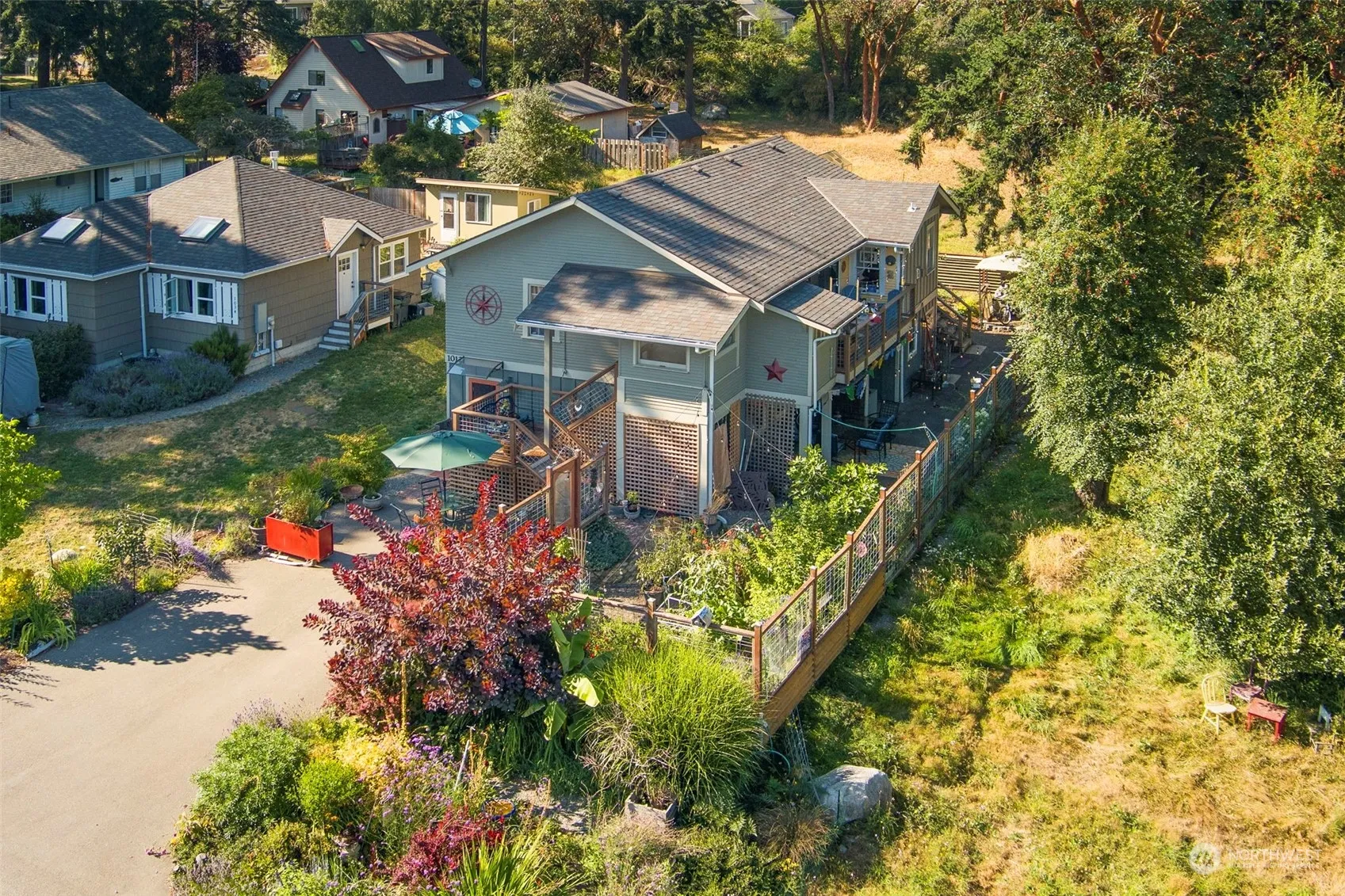 Multi generational living! Charming 4-bedroom home located near shopping & schools, featuring a newly renovated kitchen w/ walk-in pantry, hardwood floors, established gardens & easy potential to convert lower level into an ADU. Main level; primary bedroom w/ spacious walk-in closet, a versatile 11×12 laundry room (plumbed for a potential kitchen conversion), bonus room & storage rm w/ utility sink. Upstairs, you’ll find the kitchen w/ walk-in pantry & 8-ft sliding doors that open to a deck w/ peek-a-boo views of the bay in the fall. This level also includes 3 bdrms, full bath, dining rm & living rm w/ cozy propane fireplace & back deck.Don’t miss out on this unique property that combines comfort, convenience & potential!