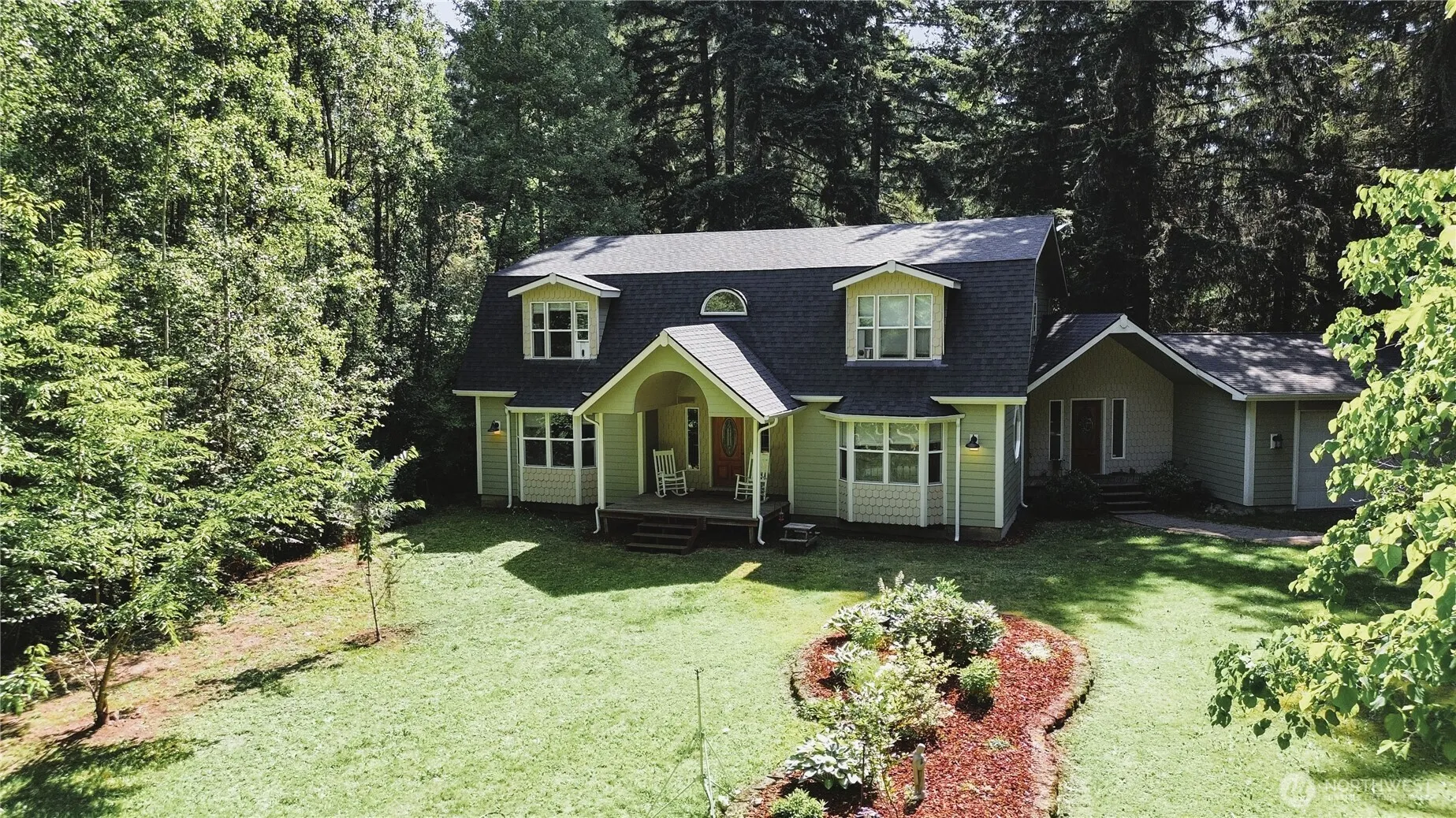 This spacious 3,460sf home is a 4 bedroom (6bed septic) 3 bath w/ open living spaces & soaring ceilings. Highly sought after 1 bed & full bath on the main floor. Upper level hosts a great loft area, primary bedroom w/5 piece bath & walk in closet, plus 2 more bedrooms with Jack/Jill bath. Why wouldn’t a home in the forest have beautiful maple trim, real wood cabinets & countertops. Take advantage of new dual zone boiler system providing wonderful radiant baseboard heat, new roof, gutters, & Hardi plank sidiing. This seculded 5 acres is a mixture of trees, seasonal pond, fruit trees, berry bushes & fresh air. Don’t forget the old 1 bedroom house/barn in the back for storage & farm animals, connected to septic but not currently habitable.