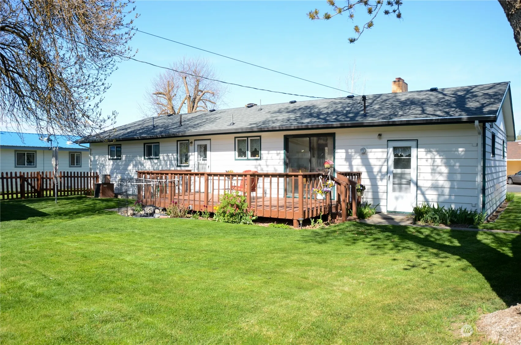 Very well maintained 3 bed one bath rancher located close to the grocery store. Fireplace, 1224 Sq ft with a single car attached garage and a double car/shop in the back. Nice refinished hardwood floors. 75×100 ft lot with a deck in the back. New furnace and windows in 2013, New bathroom remodel and hot water tank in 2020, New roof and gutters in 2021. Sprinkler system. Fenced back yard. Heat in garage. New water supply in 2013 from street to house.