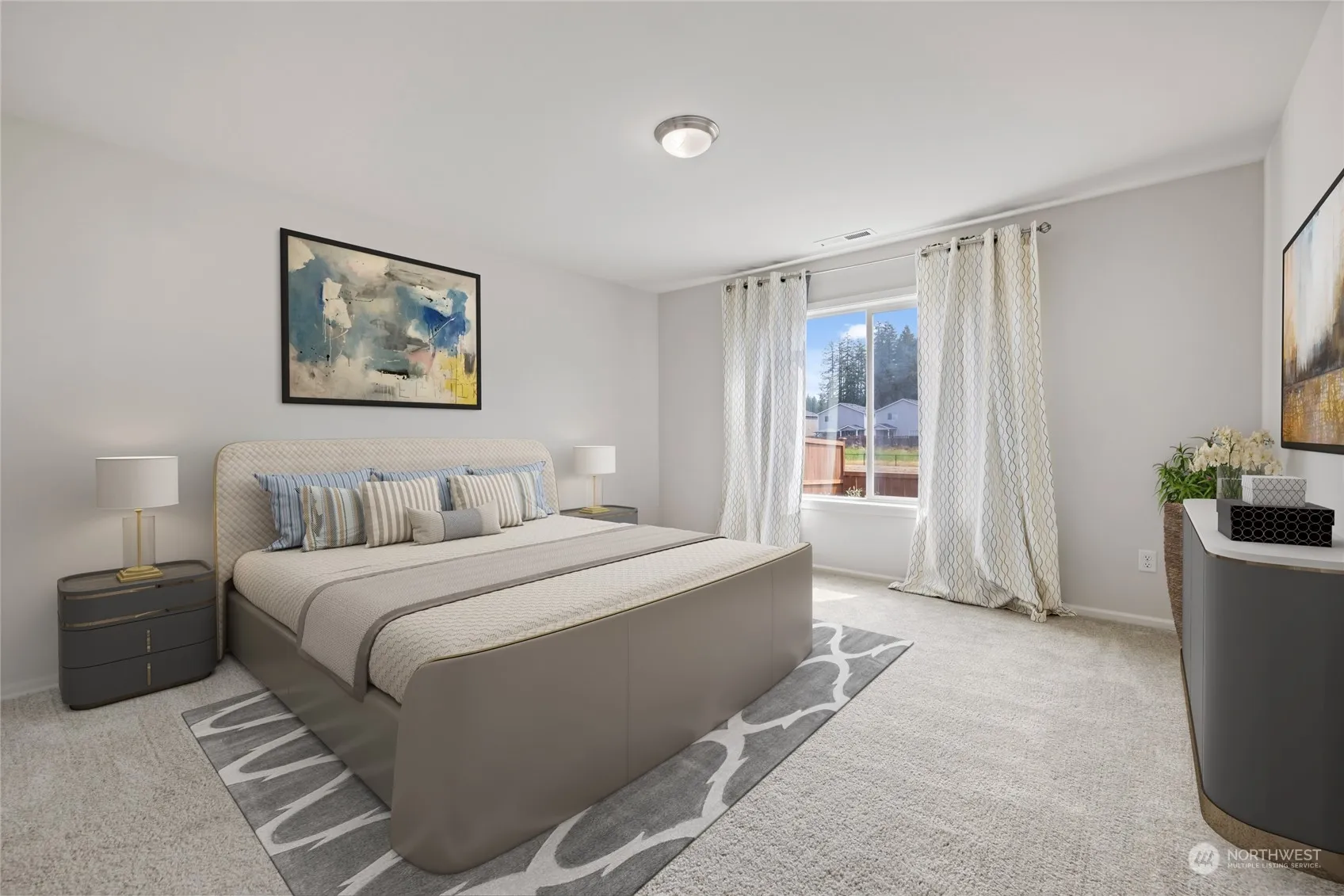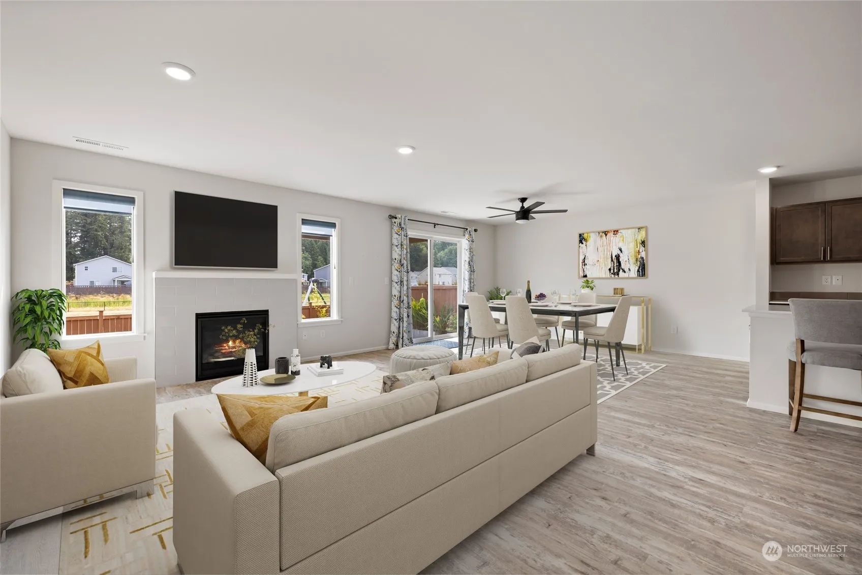 Gorgeous, spacious 3-bedroom rambler with great room and 2 full bath. Enjoy private view from patio and upgrades galore throughout this beautiful home. Home has AC and solar panels and is ready to save you money in energy costs. The Kitchen and Bathrooms feature with Quartz counter top, breakfast bar, stainless appliances, island and huge dining area. A gas fireplace in the great room. A large 5 piece main bedroom has an amazing soaking tub. The home, located in the Preserve at Tumwater, which is a charming residential community in Tumwater. The community offers various amenities including a play park. The neighborhood is close to beautiful natural areas for recreation. Additionally, residents enjoy easy access to I5, State Capitol.