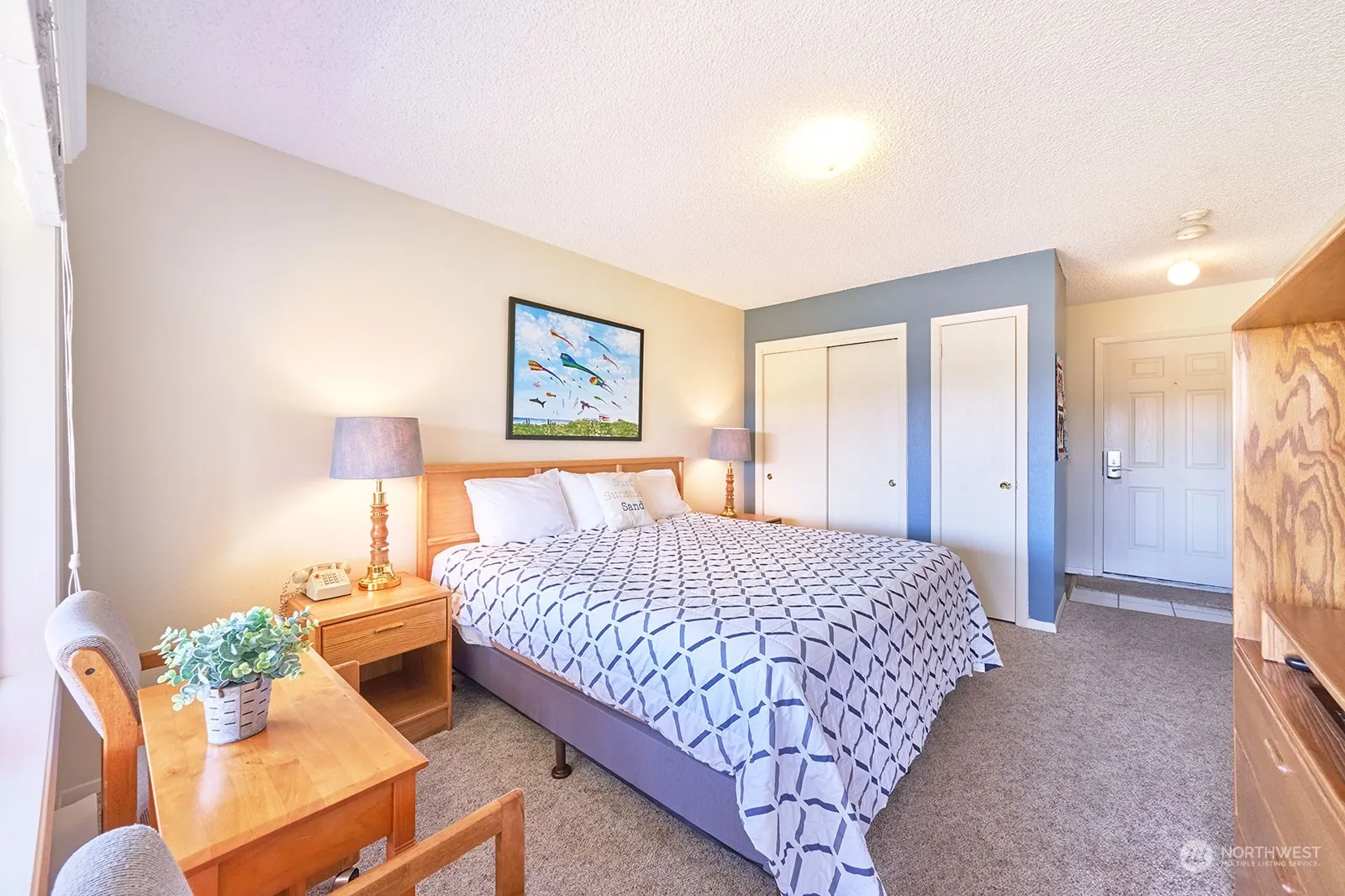 Let the sound of the ocean lull you to sleep at night in this fully furnished and turnkey double condo that sleeps 7 with beautiful ocean views. Put one or both units in the rental pool and make some income when you are not using them. With tasteful beachy decor throughout, the one-bedroom unit has queen bed in bedroom, open plan living space with queen sleeper sofa and a full bath. Adjoining studio unit has king bed and a pull-down single bed in the kitchenette. You’ll love watching crabbers and fishing boats, spot whales spouting and enjoy amazing sunsets. Stroll down the path to the beach, hop on the paved Discovery Trail and bike into town, soak and swim year-round in the beautiful indoor pool center or stargaze in the outdoor hottub.