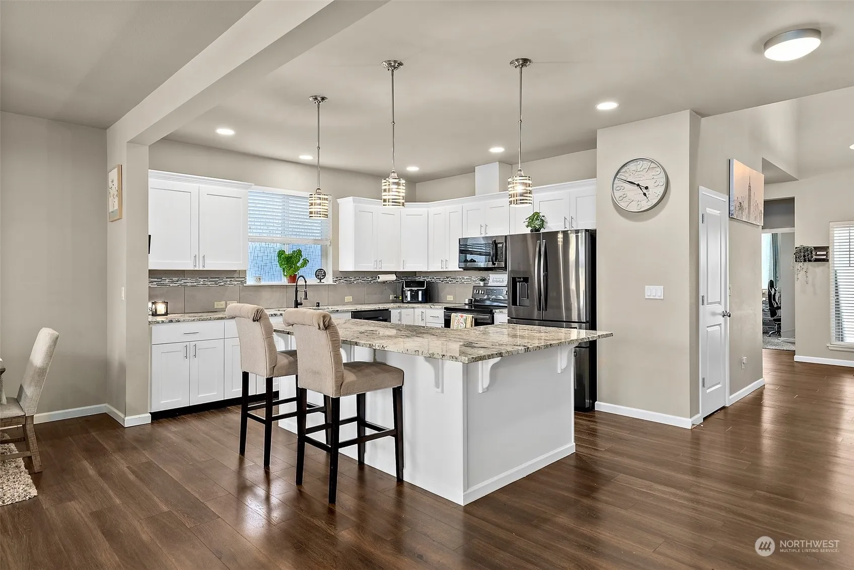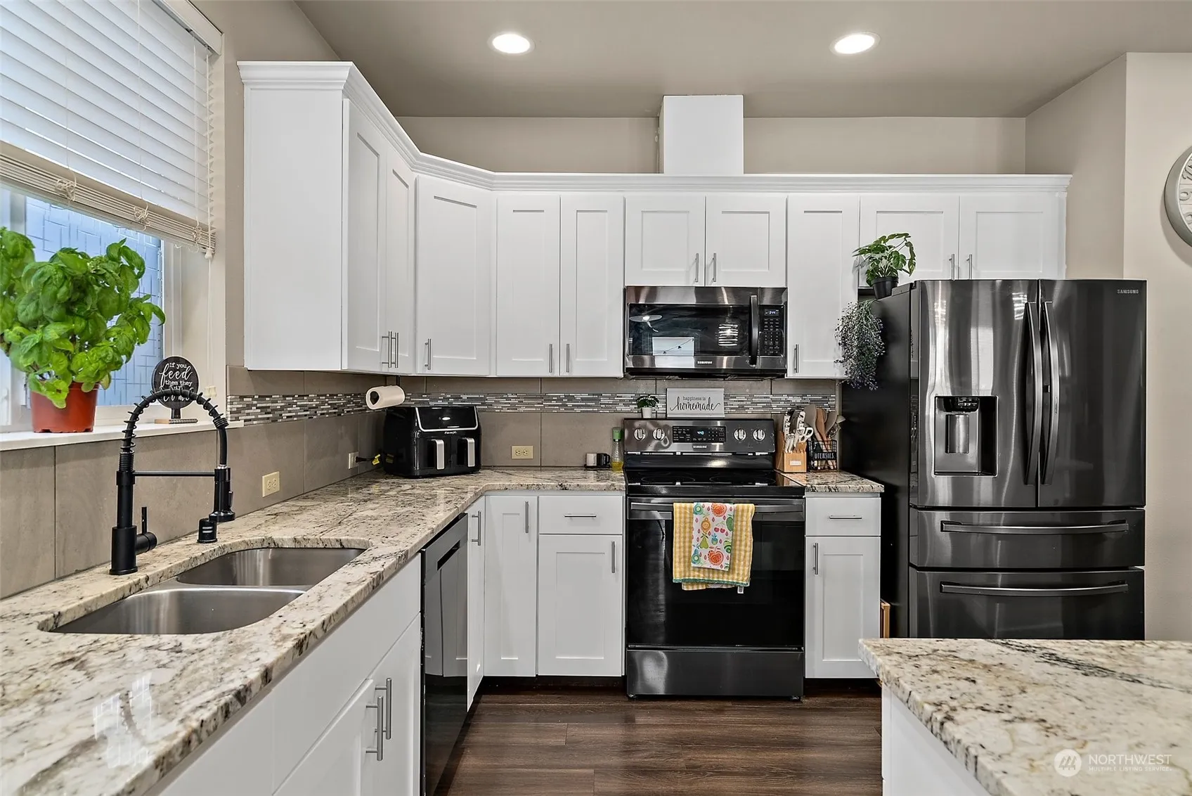 Looking for a rambler? Discover this beautiful 2,470 sq. ft. home in Yelm offering 4 bedrooms, including a main floor primary suite with a 5-piece bath, an additional bathroom, and an office. The open-concept living area features vaulted ceilings and a gourmet kitchen with high-end black stainless steel Samsung appliances and a large quartz island. Upstairs, you’ll find a spacious bonus room, 3rd and 4th bedrooms, and a full bath. The fully fenced backyard is perfect for relaxation with a covered patio, hot tub, and gazebo. Situated near parks, shopping, restaurants, schools, and JBLM, this upgraded home is perfect for entertaining and ready for you to create lasting memories!