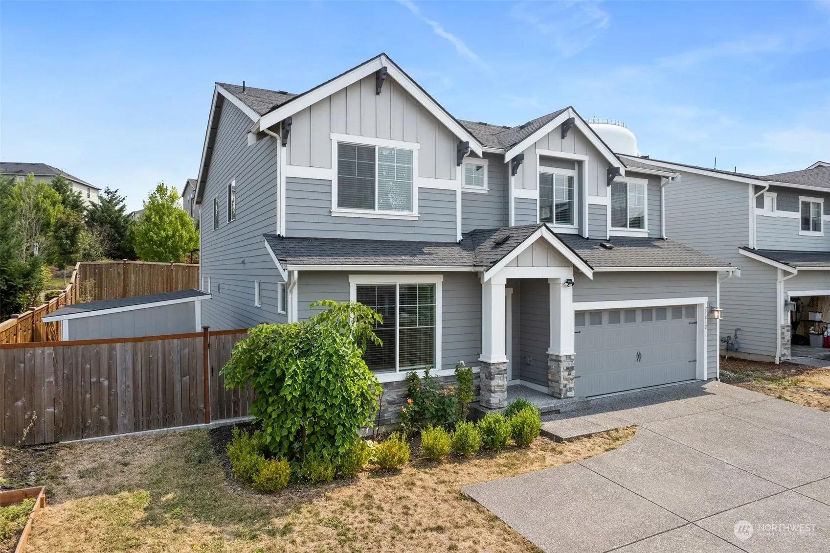 So much to love about this corner lot Maple Hills community home! Open living space offering abundant windows with natural light from all locations. Main floor features a bedroom or office with a 3/4 bath. Walk into your Chef’s kitchen w/ double oven, gas range, SS appliances, oversized quartz island, & huge walk in pantry. Slide the glass doors opening up to your spacious covered patio & huge paved backyard perfect for entertainment. Upstairs Owner Suite w/ 5 piece spa-like Bath, built in walk-in closet. Bonus room and three more bedrooms, laundry room complete the 2nd story. Two-car garage and A/C!!! Convenient location & minutes from hiking trails, parks, shopping, schools. Upcoming HWY 18 access & Lakepointe Urban Village. Welcome Home!
