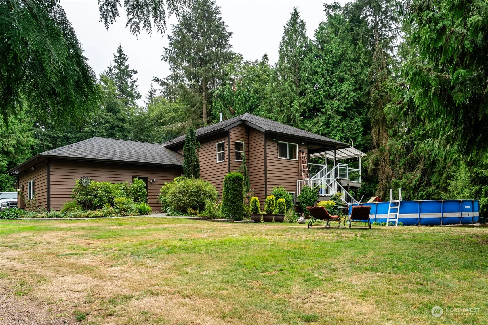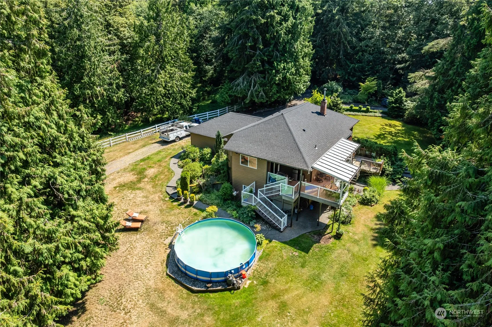 This custom built home is tucked away at the end of a long paved driveway & offers the ultimate private setting. Equestrian property with hay storage & 3 stalls to bed down your horses or livestock. 3.75 acres of fenced area. Inside, the impressive floor to ceiling brick fireplace is the centerpiece of the home. Off the kitchen & dining room is a lg covered deck overlooking the beautiful yard. Primary bedroom w/bath, walk-in closet & access to it’s own deck. Downstairs you will find 2 more bedrooms, bonus rm, family rm, bath & laundry. Outside is the perfect setting for those fun summer gatherings. Pool, play set & lg covered concrete patio area w/firepit & picnic table. Cute playhouse with sleeping loft & power. Country living at its best!