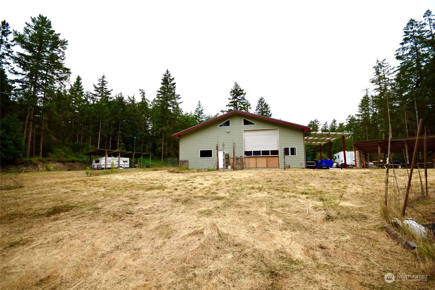 All you could dream of: Beautiful scenery, privacy, 5 acres of trees & meadow, & amazing 2640 RV garage/shop with 3/4 bath. This 3 bed, 2 bath home has wonderful tranquility. Multiple RV parking spots-2 with complete hook-ups. Additional RV covered spots, huge woodshed & storage shed. Attached RV barn/shop has new Lopi wood stove, 3/4 bath, multiple spaces for a variety of uses & room walls that can easily be removed. New metal roof, gas range, refrigerator, washer/dryer, microwave & Traeger wood pellet grill. All furnishings can be included. Come with all your dreams & ideas!
