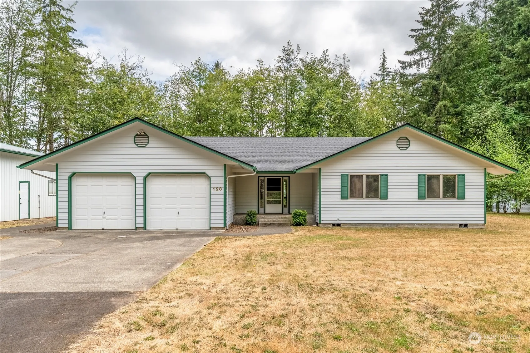 First time on the market! View Crest Drive is private drive that few know about. Meander back on the paved road to #128. A 3-bay shop will make most people smile as it has concrete floors, power, water, and expansive line of workbenches. The home offers attached 2-car garage, a mudroom entry/laundry that can be closed off from the kitchen. Kitchen has oak cabinets with Formica counters. Nice eating bar that seats 4+ as well as dining space looking out to living room. Vaulted ceilings in living room and large windows looking out to composite decking and private yard. Sleeping areas off of living room. Primary offers a substantial walk-in closet, low step shower & door to deck. Concrete pad ready for hot tub! Put this one on the list!