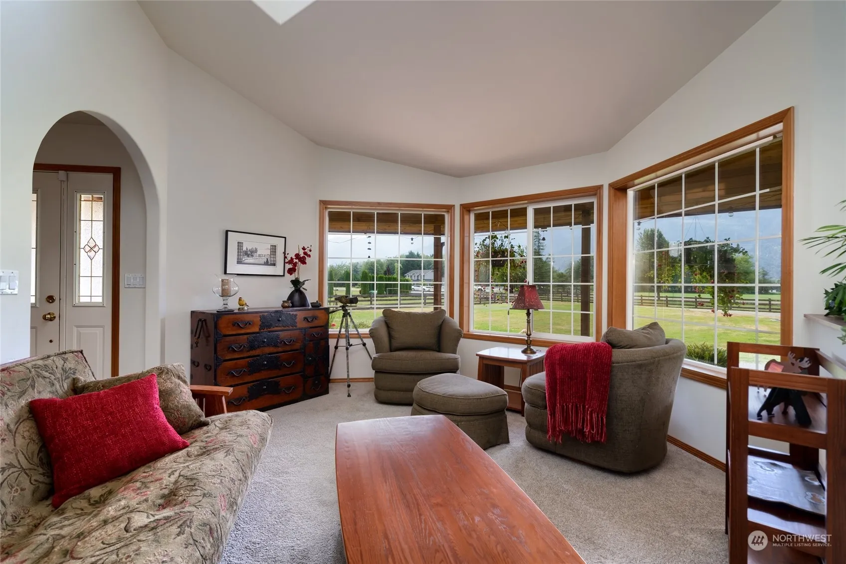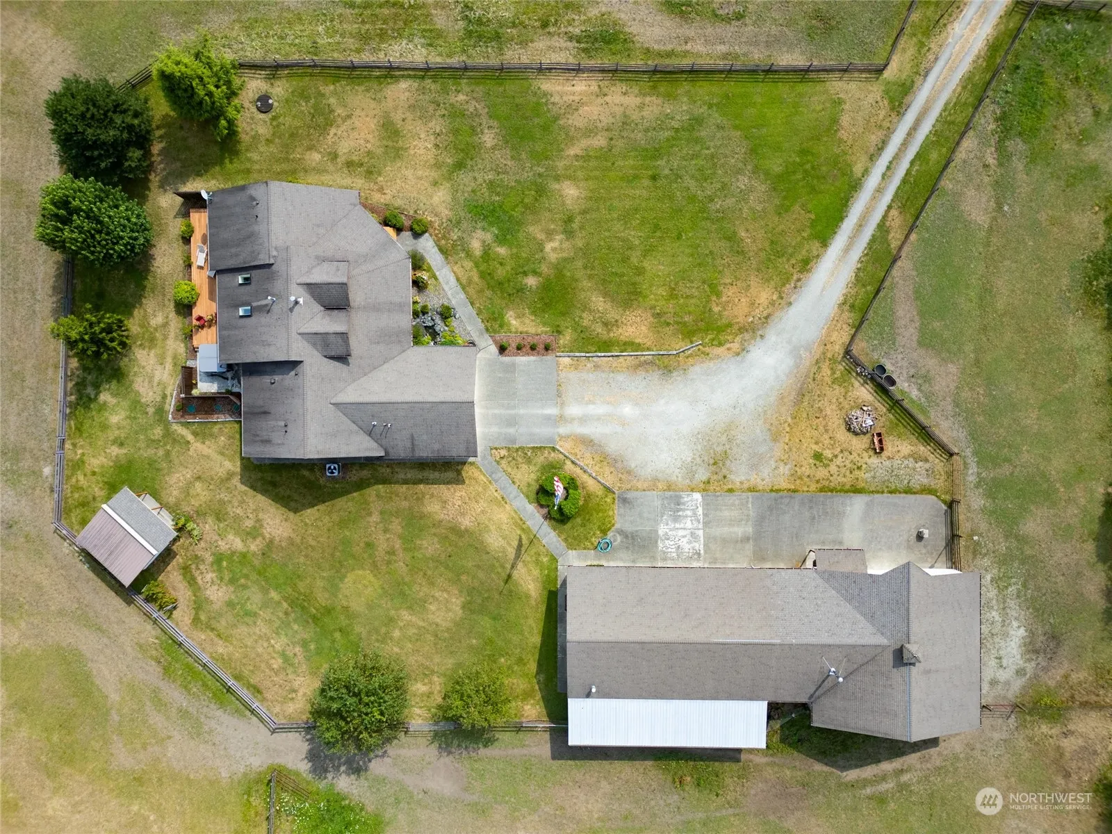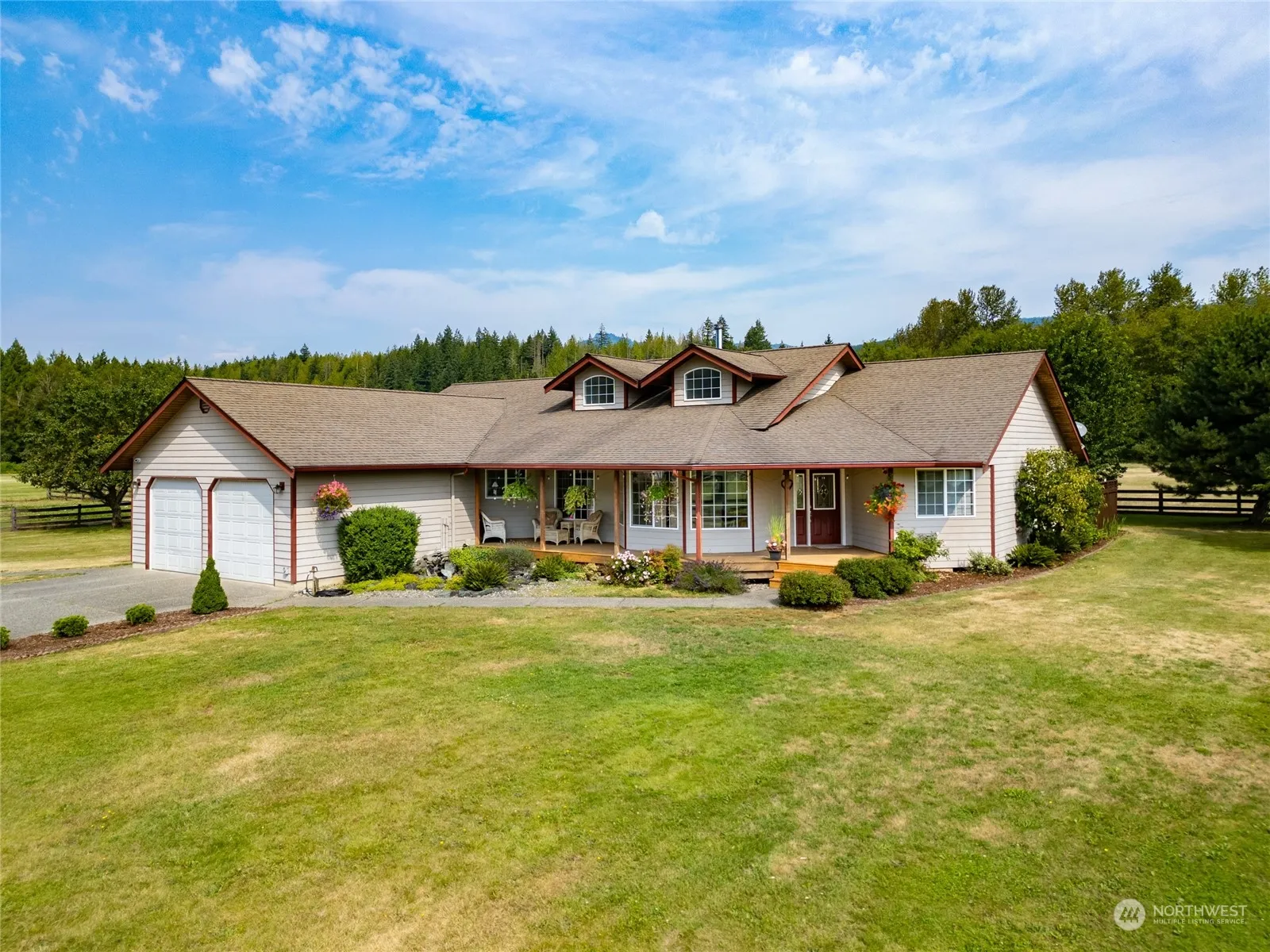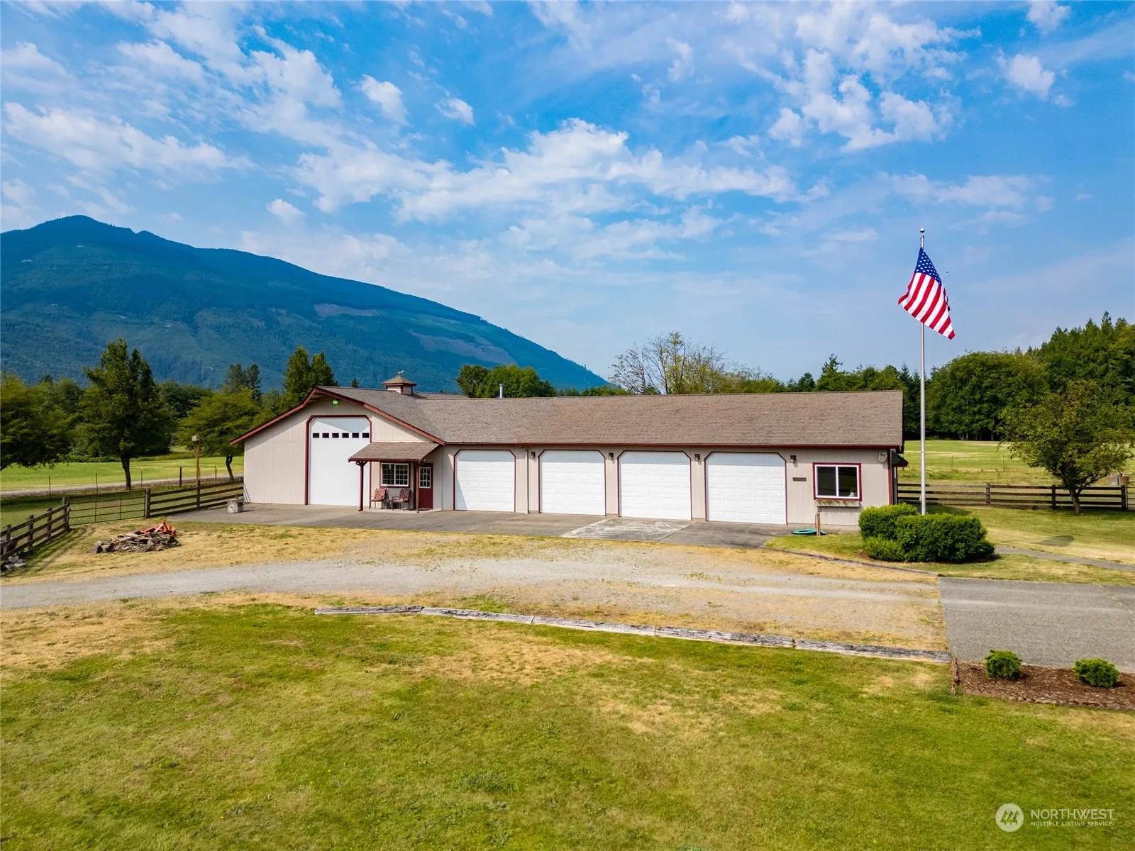 This custom-built 3-bedroom, 2-bath home is perfect for horses or car collectors alike offering stunning views and 5 flat usable acres. 48×30 shop/garage with five roll-up doors, and a 38×36 three-stall horse barn with cement floor, an office equipped with a wood stove, and small hayloft. This single-story house showcases intricate details: skylights, vaulted ceilings, arched doorways, freestanding wood stove, Heat Pump, hardwood, laminate flooring, ash cabinets, pantry and a large eat up kitchen island. The primary bedroom includes a gas fireplace, on suite bathroom with a jetted tub and 4-foot walk in shower. Large front and rear decks for relaxation and elk watching. The property is fully cross-fenced, and beautifully landscaped.