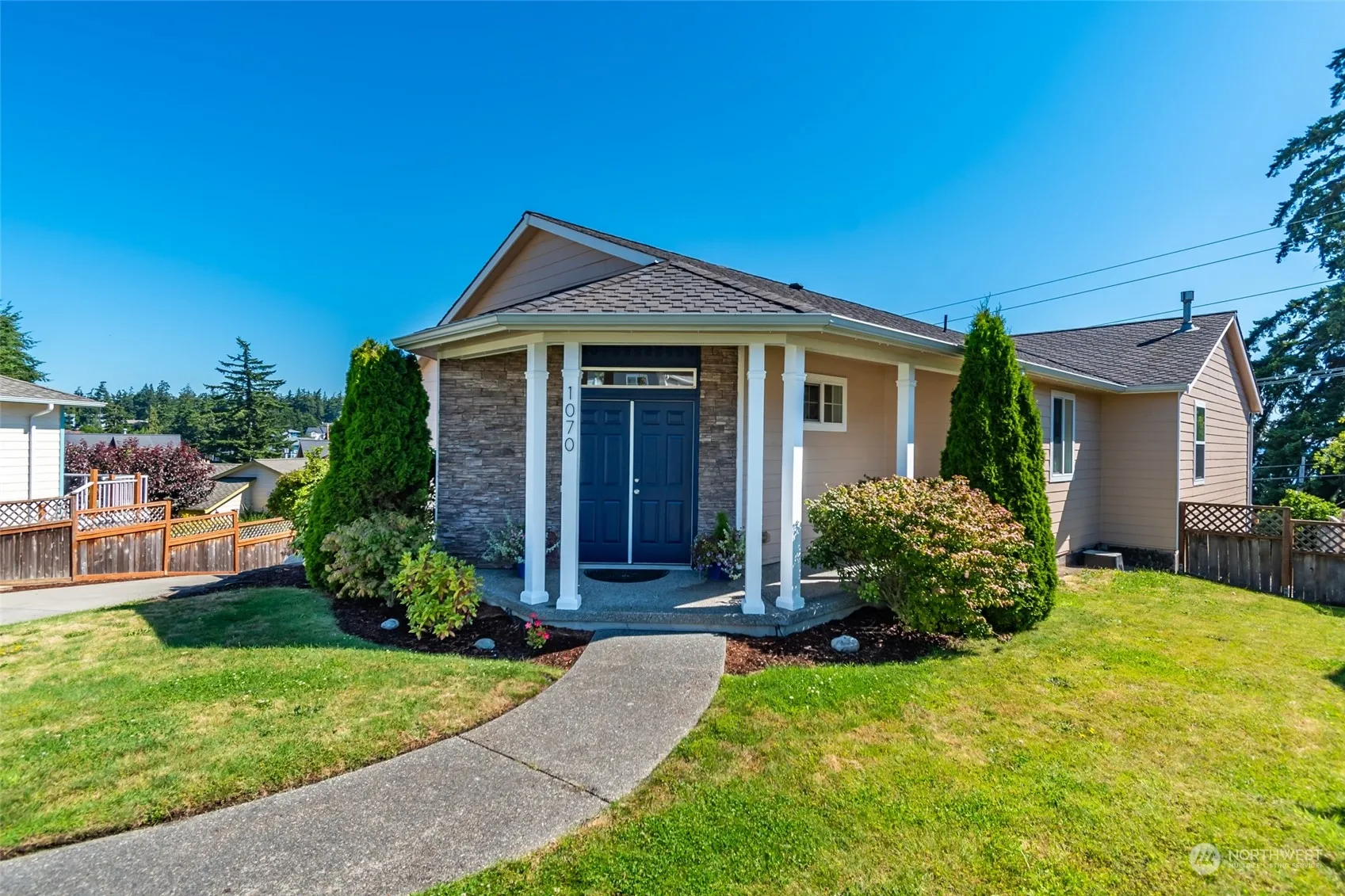 Enjoy beautiful views of Oak Harbor Bay, Cascade Mtns, boating events & city fireworks from this custom built 4 bdroom home in Harbor Vista. Designed for main level living, entry offers open design w/ Pergo flooring, spacious living rm, 9′ ceilings, dining area & french doors open to a new wraparound deck. 1 flex room for bdrm/office. Kitchen w/sill stone counters, center island, computer desk, TV, & opens to amazing utility room. This level has another guest bedroom & full bath. Primary suite has an endless walk in closet, w/ full bath & soaking tub & access to deck. Lower level w/ family rm w/ new laminate flooring & 4th bdrm w/ walk in closet & hall bath. 3 car garage, landscaping w/ irrigation system & large patio. It’s better than new!