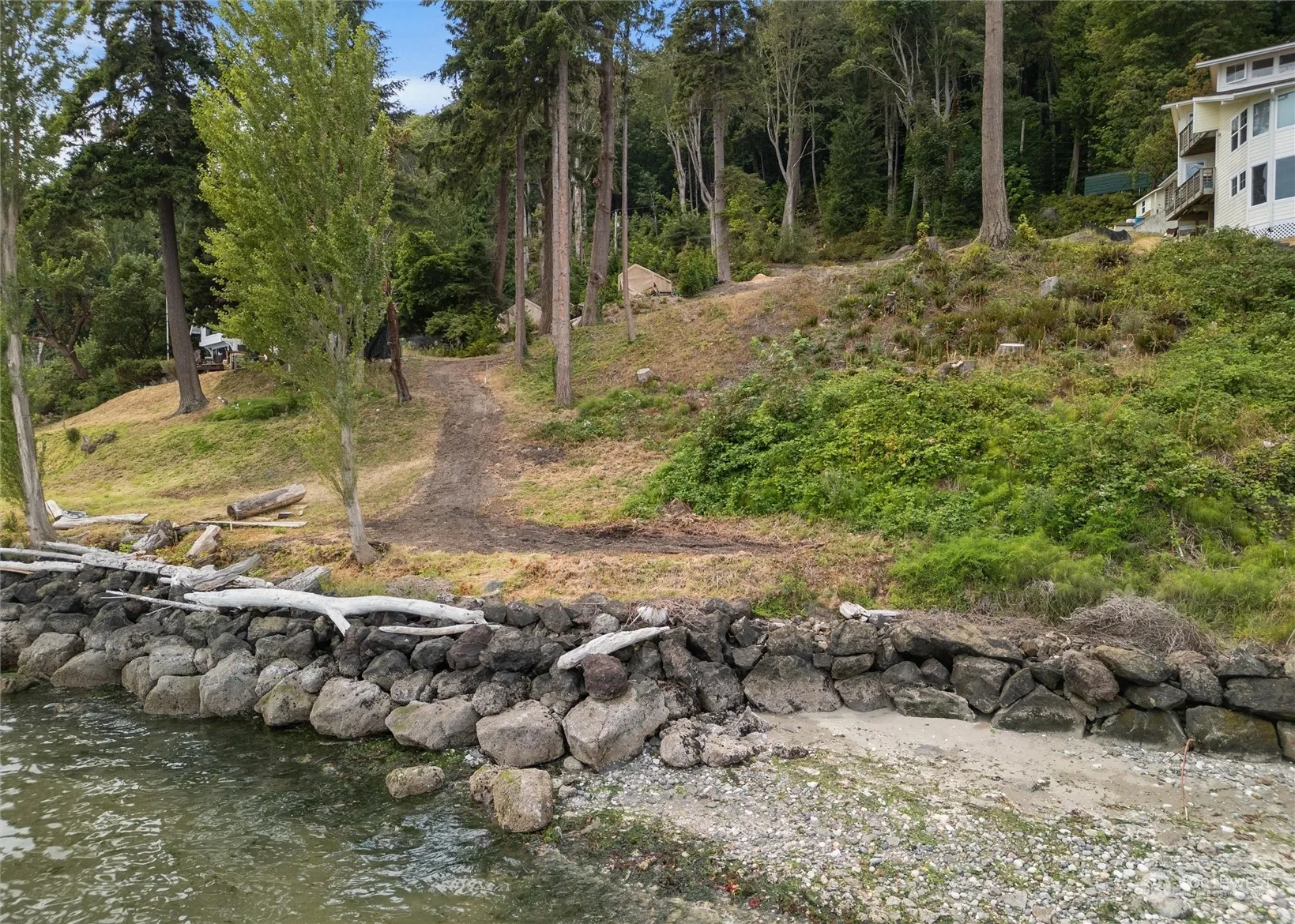 Building Permits in Hand *Assumable Construction Loan Avail 4.79% 30 yr fixed* Remarkable opportunity to build your waterfront estate. Build ready with approved plans for a 2177 square foot 3 bedroom home w/detached garage on 1.4 acres with 122′ of low bank/bulkheaded waterfront. Ever changing shipping lane views along with Mt Rainier and partial Mt Baker views. Enjoy mornings watching the sun come up over the Cascades and evening with the twinkling lights of the Edmonds skyline. Sit on the beach and watch the sea life and bald eagles. Walk along the beach to downtown Kingston or through the wooded trails at high tide. Septic & Well are in, power in street, lot cleared. In an area of million dollar homes. Walking distance to Ferry.