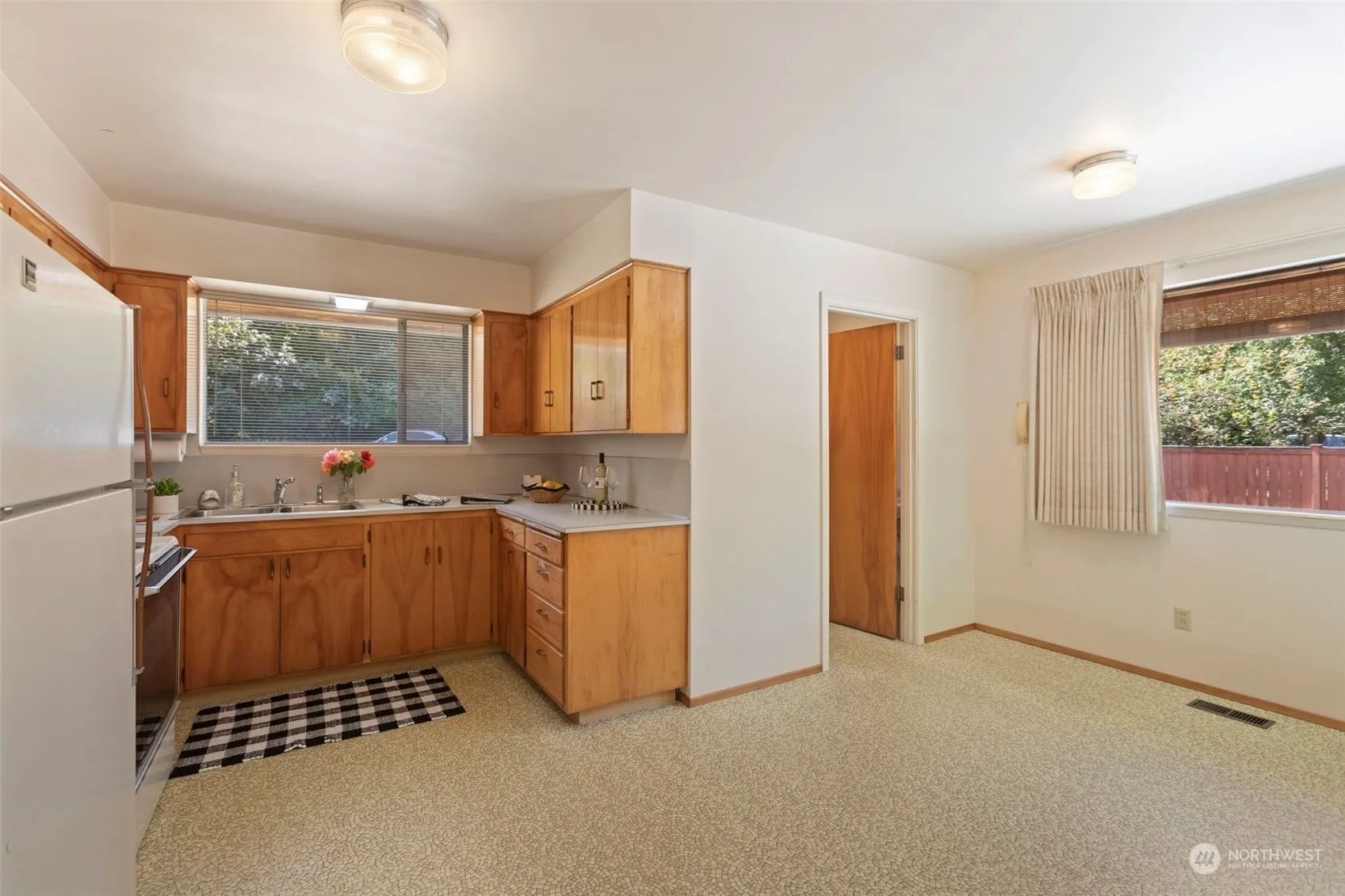 Welcome to this charming 1959 cozy move in ready rambler, this is across from the Seattle golf course in Shoreline. 3 BR, 1 and 1/2 bath with mid-century features, beautiful wood-work though-out. Kitchen has orgininal cabinetry, pantry, laundry rm with 1/2 bath, new carpet in the Living rm and Dining rm, wood fireplace, full bathroom, all bedrooms have beautiful hardwoods in all bedrooms and large closets. Step out to a private patio for dining and entertaining. Spacious garage. Quiet neighborhood. Excellent location, short distance to Town and Country market, Richmond Beach, mulitiple parks with trail, shopping, library, restaurants, exceptional schools. Please come view this wonderful home.