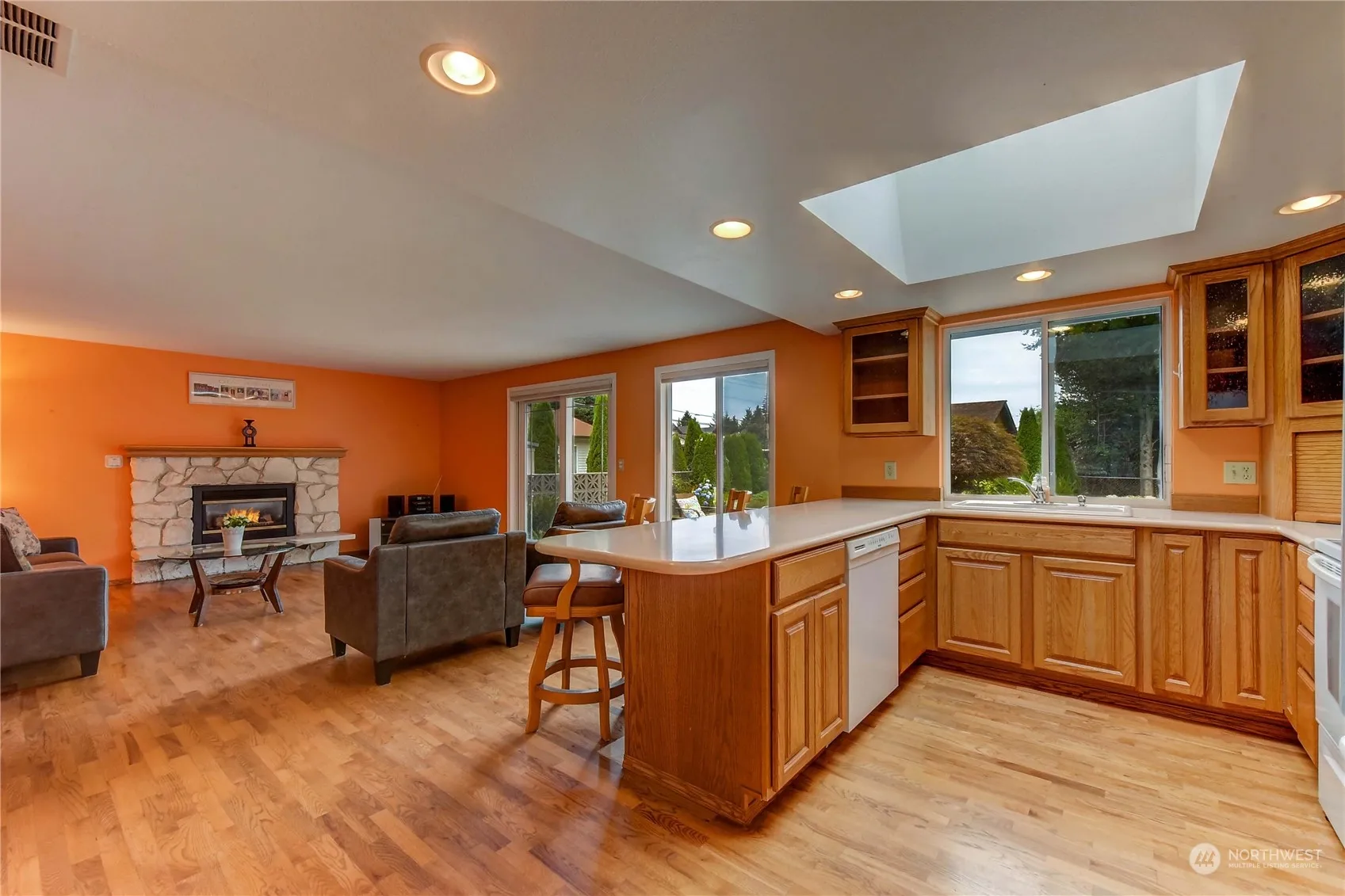 You’ll love living on 1-level in this 3-bedrm, 1.75-bathrm RAMBLER! Large Primary ensuite has more than enough room to place a king size bed & has 2 closets. It also has a private bath w/tiled shower. Primary suite has direct access in-to the laundry rm which also has access on the hall side. The Chef will enjoy preparing meals in the sunny kitchen as it is open to the family rm and offers a large eating counter to visit or meal prep. You’ll love the family rm with its hardwood floors & gas fireplace. From the family rm, step out the sliding door to relax on the patio. The completely level yard is perfect for gardening or playing yard games. The garage is 620 square feet & has a built-in storage rm. All this + RV PARKING! Truly a must see!!