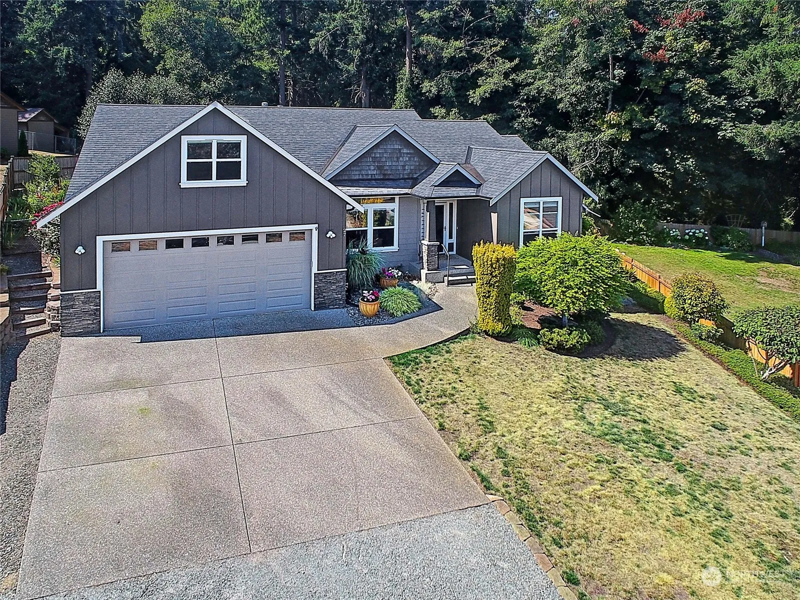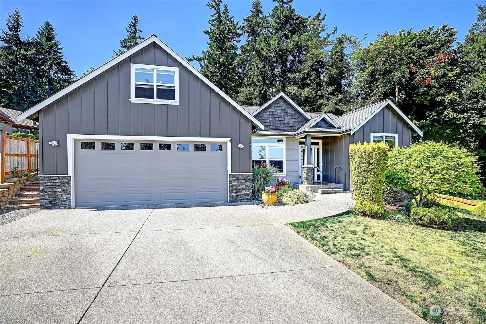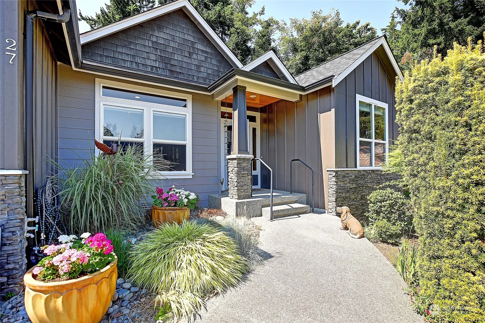 Well constructed, this comfortable rambler with a bonus room over the garage and views of the Mountains and Bay. Beautifully landscaped with flower gardens, an outbuilding, partially fenced and backs to a greenbelt for maximum privacy from the quiet patio. Open floor plan flows well with vaulted ceilings, hardwoods, large living spaces and a cozy fireplace. Beautiful kitchen with granite, stainless appliances and loads of light. Bedrooms on opposite sides of the home a nice office space and additional flex space over the garage for overflow or a bonus/play room. Located in the heart of the Camano Island Country Club with 3 beaches to access, views and the Island lifestyle. Nearby shopping, amenities, and easy access on/off the Island.