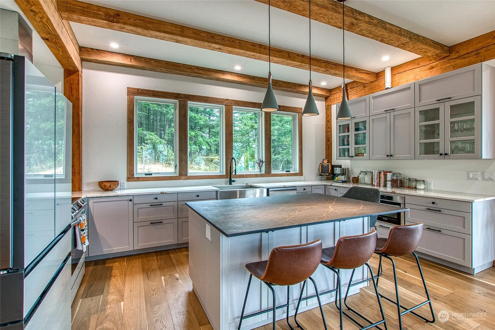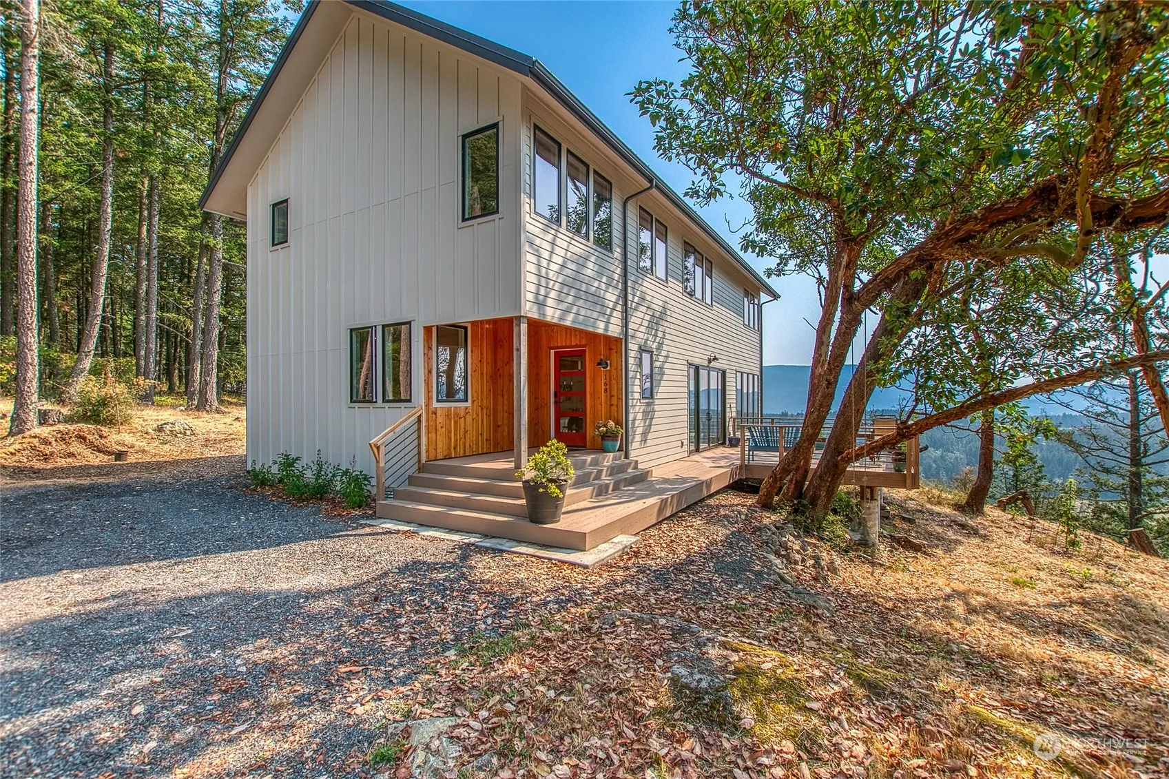Dream location in West Sound abutting Turtleback Preserve! Brand new architecturally designed 3br, 3ba home w/ unparalleled privacy & magnificent views over Crow Valley. Gourmet kitchen w/ silestone island. Passive solar design w/ open floor plan allowing for views from every room. Primary suite w/ walk-in closets & spacious bathroom w/ deep soaking tub. Radiant heat on main level & all bathrooms. Gorgeous exposed beams milled from firs on the property. Detached barn/studio with loft & 3/4ba presents many opportunities. Walk up to the terraced, established fruit orchard complete w/ irrigation. 10min to town. Fantastic community water system + well. Charming cabin w/ seasonal waterfall adds to the magic of this one of a kind island property!