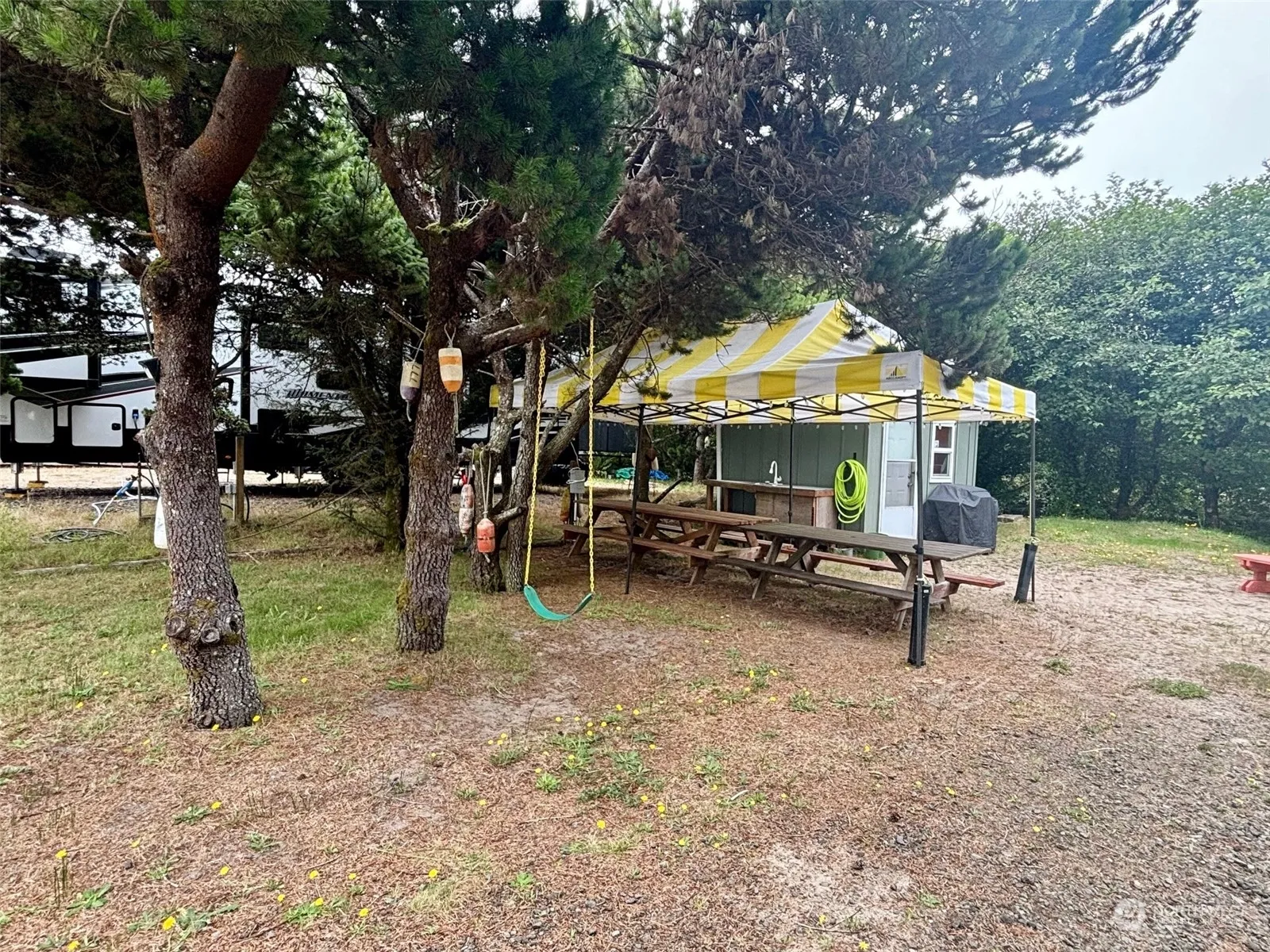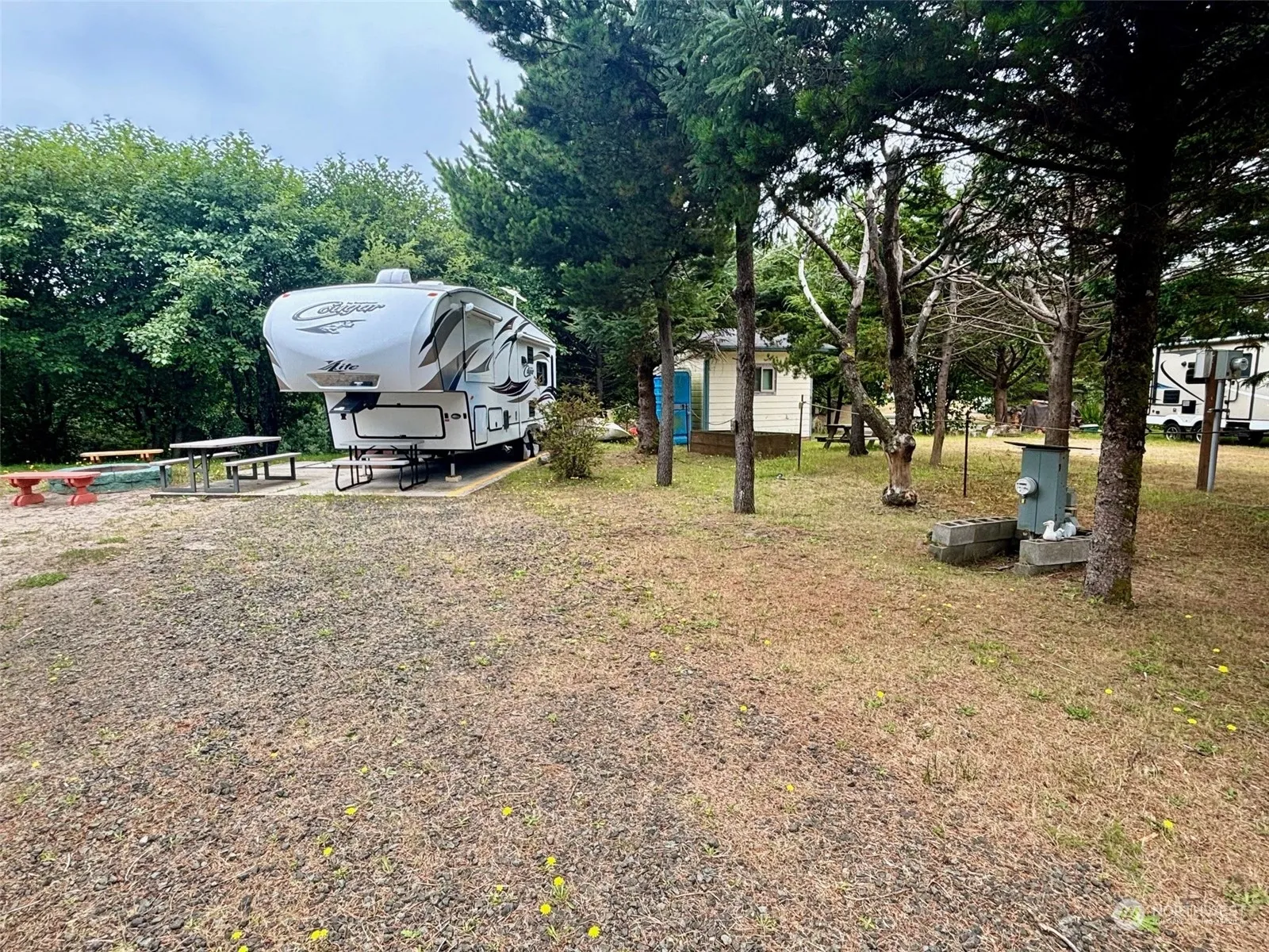 RV ready lot in Surfside Estates. This .19 acre lot is ready for RV beach fun! 30 foot poured concrete pad for RV placement. Outbuilding with microwave & refrigerator included. Fish cleaning station. 3 electric/water RV hook-ups on site- room for the whole crew! Canal front property. Don’t miss this opportunity to own your own beach property!