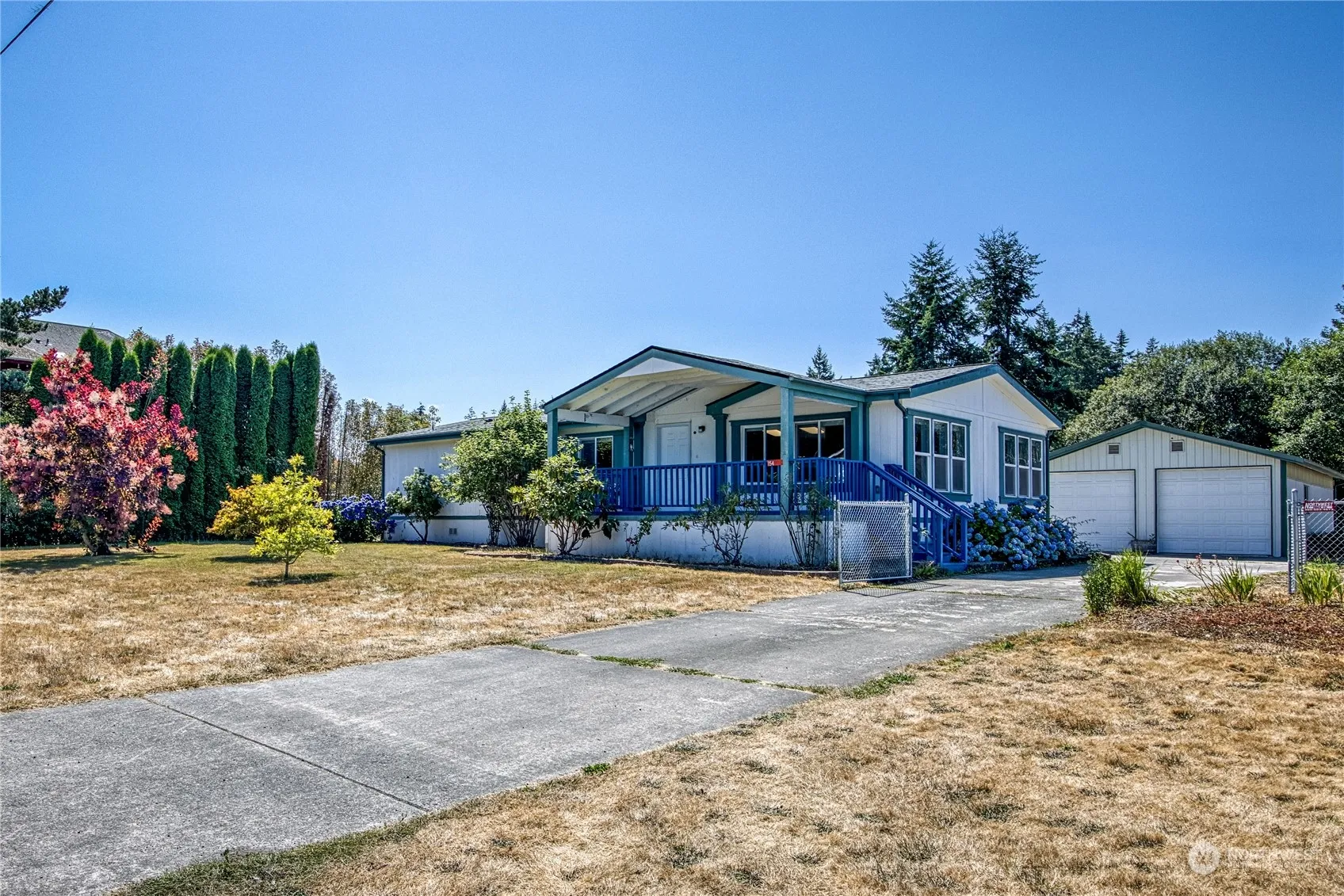 Bright and cheerful home with welcoming front porch on shy 1/2 acre close to all Port Hadlock shops & services. Recent updates include NEW ROOF on home and carport, new flooring & updated baths. The house offers an open floor plan featuring great room and large kitchen with generous prep space. The primary bedroom has an attached full bathroom and walk-in closet, plus two other bedrooms and full bath. Great storage throughout. 24′ x 40′ garage with paved entry is perfect for myriad uses. Ramp from rear of home aids accessibility. The large flat fenced back yard has both defined garden area + big grassy space for dogs / play area. Plenty of room for your boat, RV/trailer, and work equipment. The home is in move-in condition & ready to enjoy.