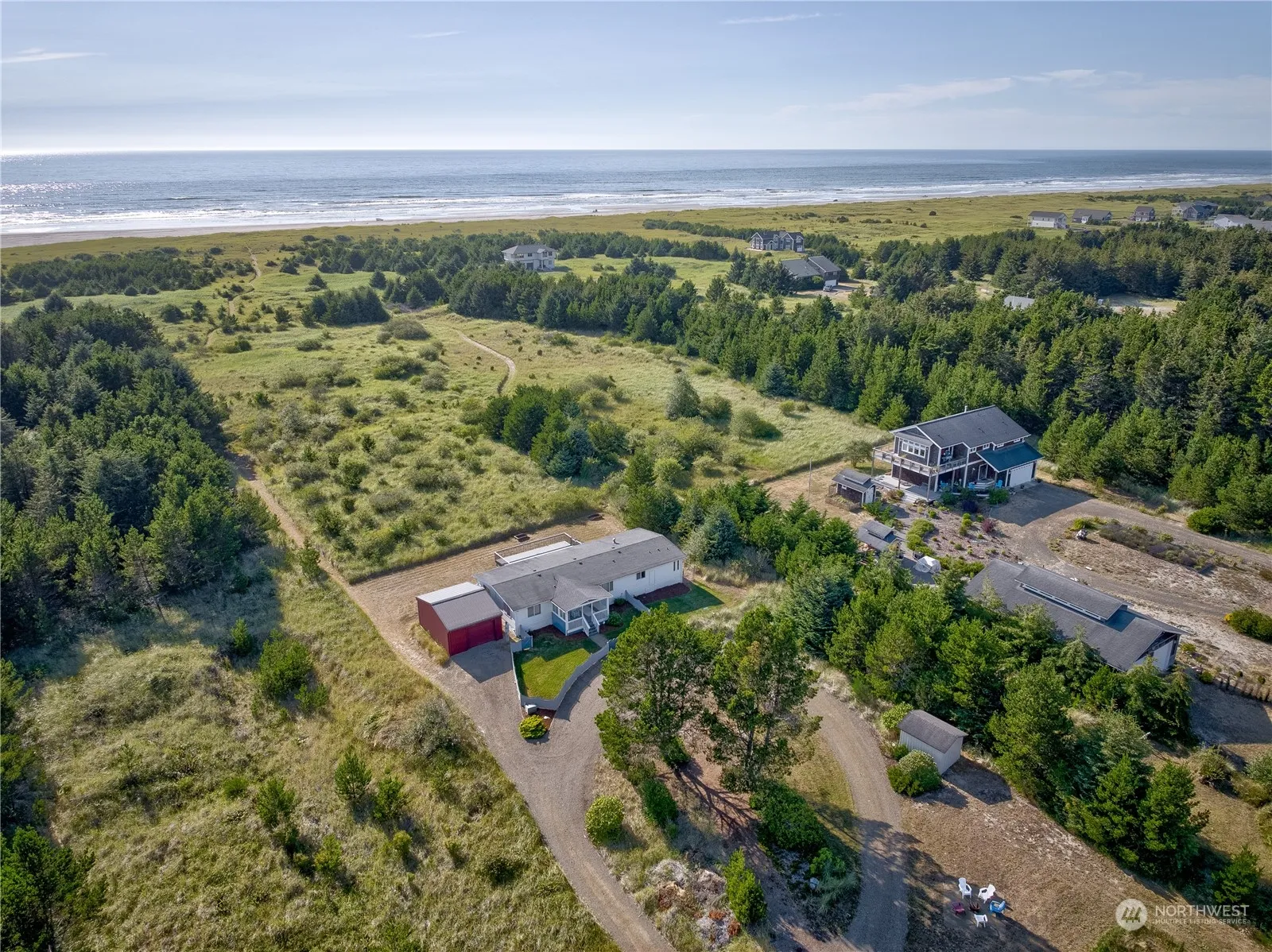 Seclusion, beauty & peace all await you on this wonderful half acre property that borders the WUB! Entering from the covered front porch, you’ll find a lovingly maintained 1800+ sf of open concept living space with 3 bedrooms, 2 baths, & a cozy living room featuring built ins. The kitchen features ample storage, work space & double oven. The split floor plan spaces bedrooms on each end for privacy. The large ensuite primary bedroom features walk in shower w/ garden tub. Enjoy the walking path to the beach some amazing sunsets from your large west facing deck. Oversized one car detached garage w/ extra space for storage/work. Close to Long Beach for shopping, festivals & fun! STR Conditional Use Permit in place until the end of 2024.