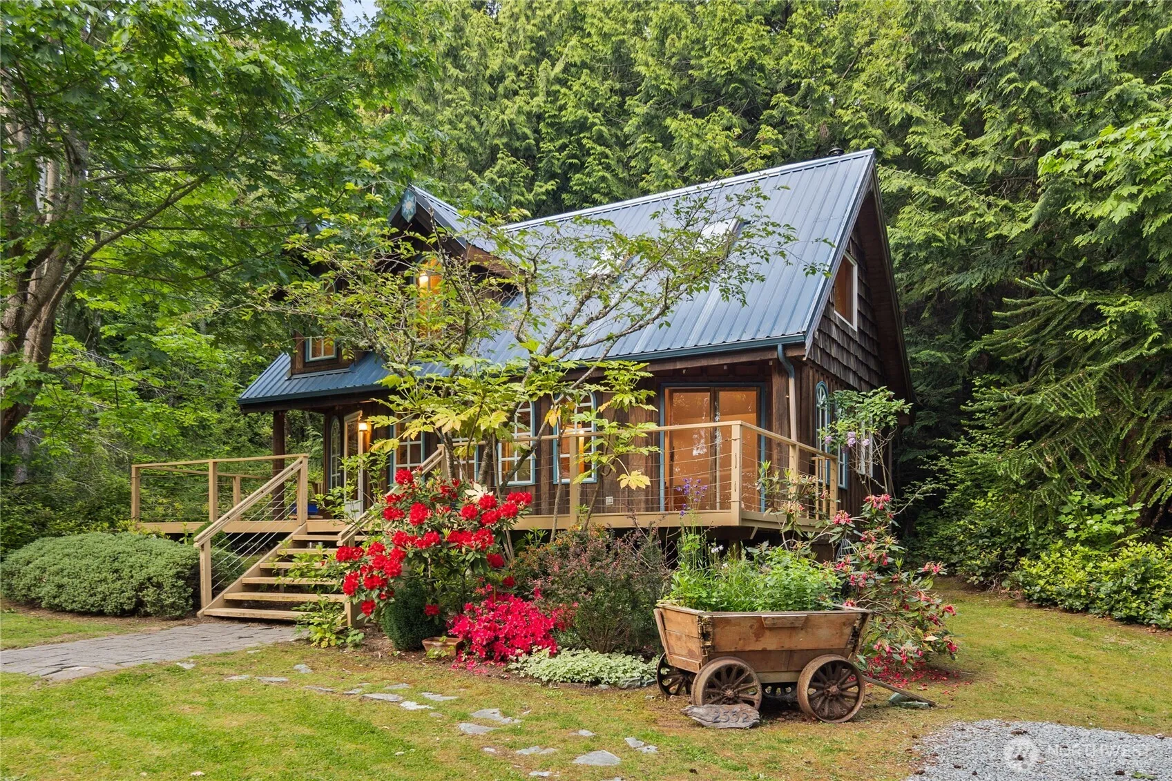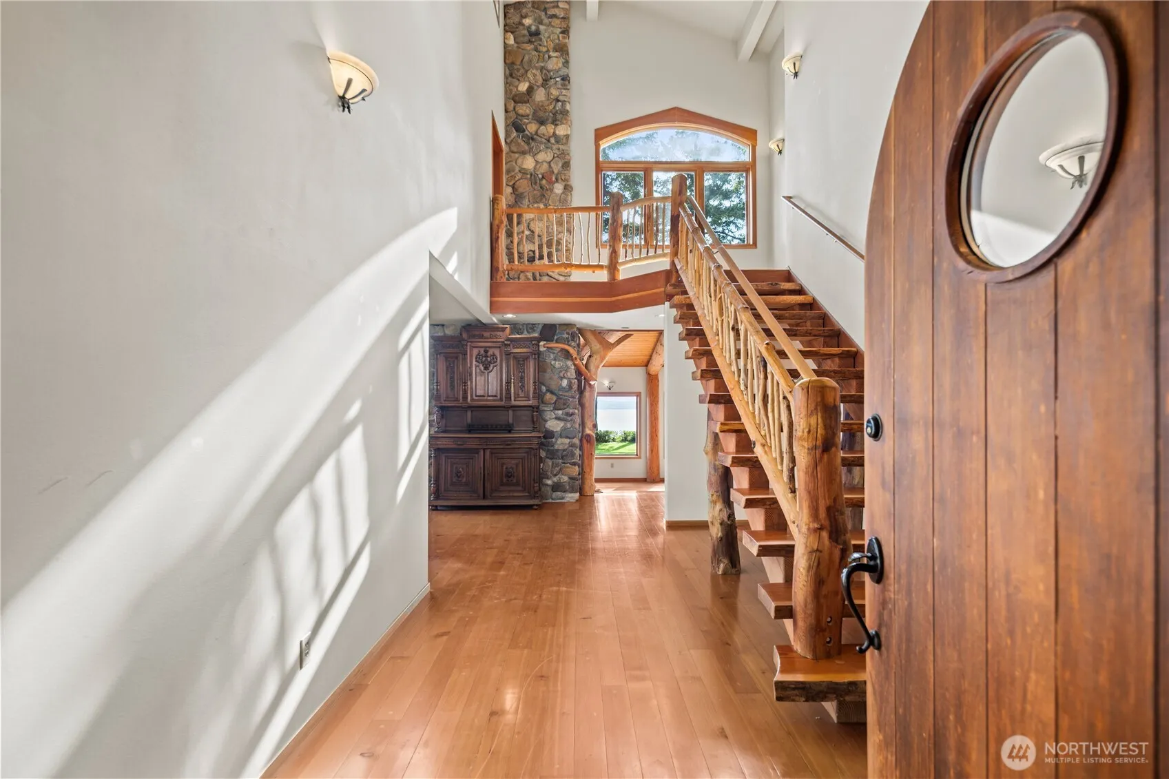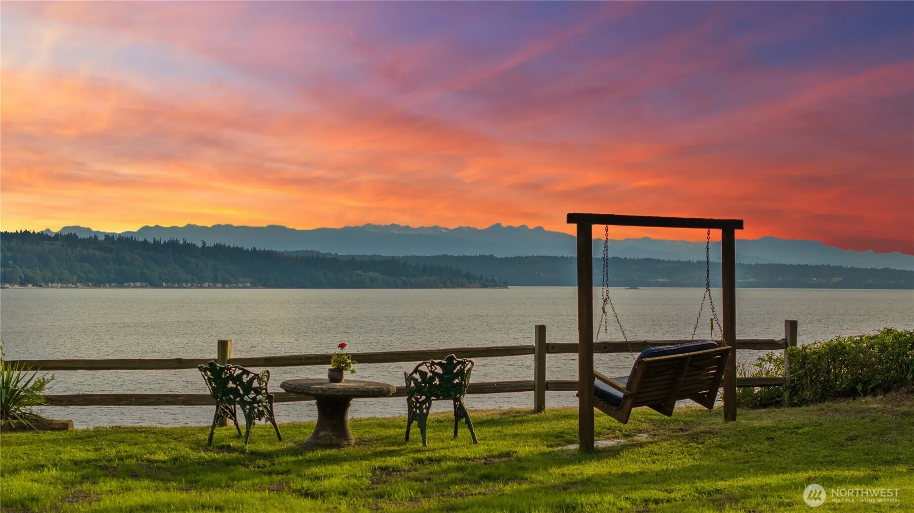 Stunning Camano Island Prime West-Side Waterfront, 2 Homes on 2 Acres. Perched above a private 181′ Bulkheaded Sandy Beach w/ Well Maintained Stairs to YOUR Protected Shoreline. Whales, Boat Traffic, Shellfish & Incredible Sunsets. Detached garage/shop PLUS full guest home. Custom-built PNW Architecture, sweeping-views over parked-out timbered grounds. Grand, Lodge-Style vaulted entry beckons guests in to an open layout w/ exposed beams, multiple fireplaces, view deck w/ hot tub. Gourmet kitchen, primary suite, office, large guest bedrooms, & excellent flow to a manicured, timbered shoreline-yard. Separate Cottage has loft-bedroom, kitchen, bathroom…perfect for additional living space. Waterfront Legacy Property…Welcome Home!