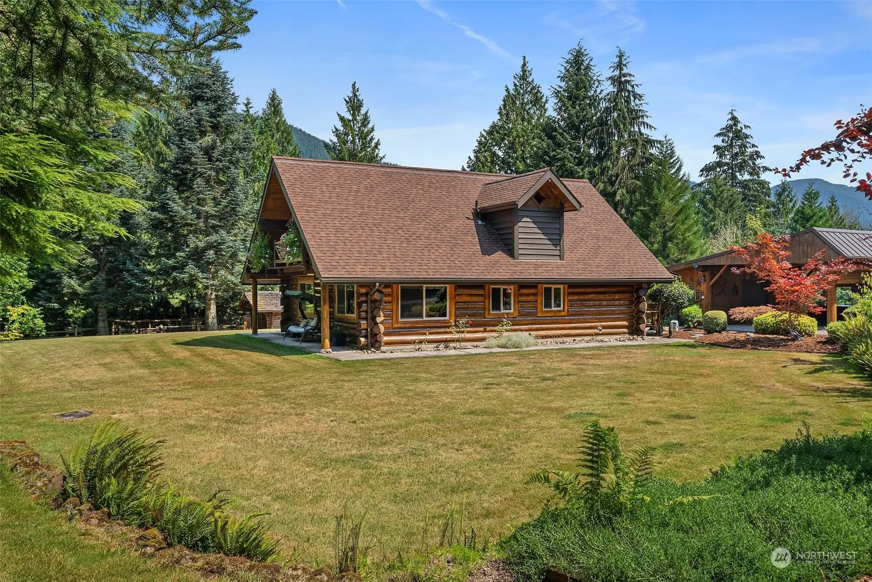 Experience the tranquility and rustic charm of country living in this beautifully maintained log cabin, situated at the end of a peaceful country road. Set on five acres of lush land, this property offers a wealth of amenities and quality finishes for a perfect blend of comfort and functionality. The kitchen has custom appliances, gas range and granite counter tops. Relax and enjoy the serene surroundings from the hot tub. Outside you will find a barn, shop, chicken coop, and dog kennel. This enchanting cabin offers a perfect escape from the hustle and bustle of city life, providing peace, privacy, and is ready to welcome you home. Schedule your private tour today and discover the magic of country living!