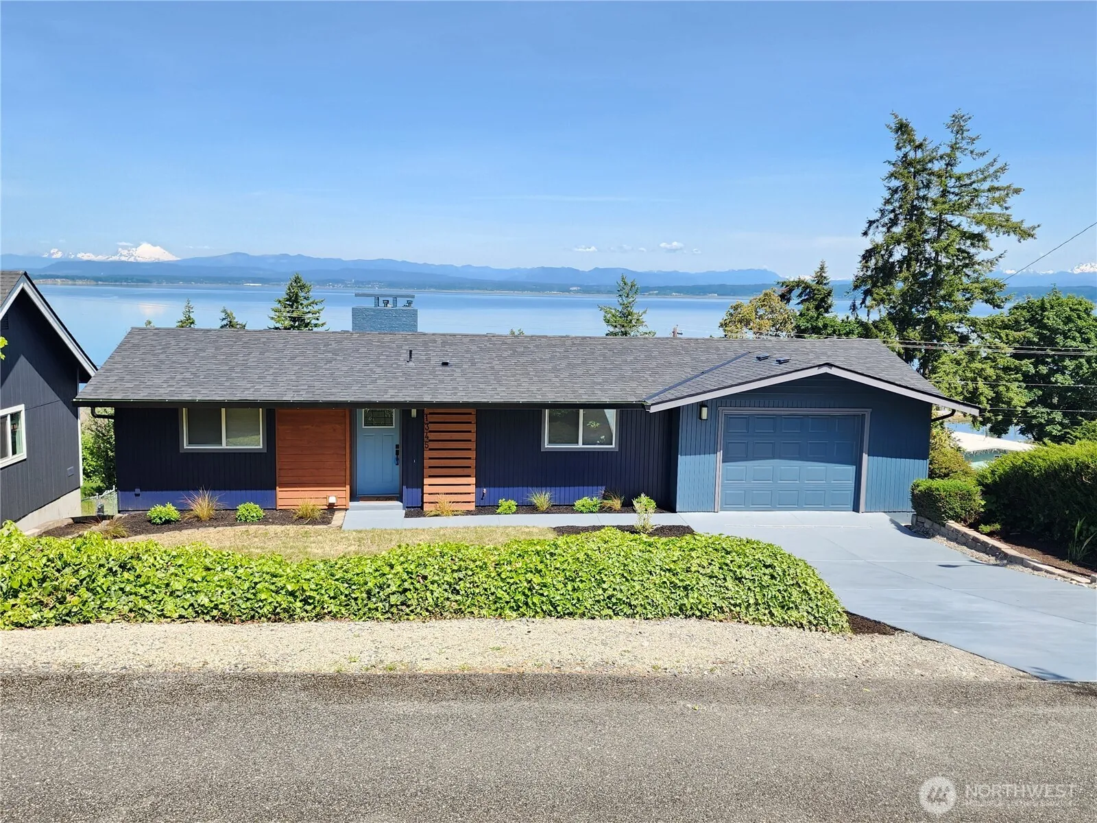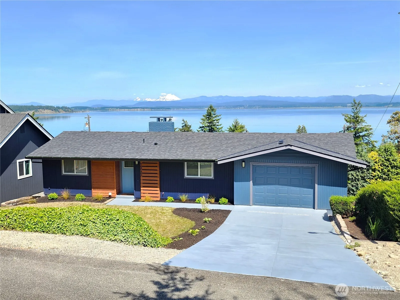 Camano Country Club gem delivers sweeping Port Susan & Cascade views from both floors. Access to 3 private beaches, clubhouse, and ferry-free island living just 15 min to Stanwood. Nearly new from the studs out remodel in 2023: New septic, roof, drywall, paint, wide-plank LVP, carpet, lighting, doors, quartz counters, stainless appliances, windows and more. Light-filled great room with navy brick gas fireplace opens to an expansive view deck. Flexible layout offers 3 bedrooms, 1 3/4 baths, & a daylight level with large family room, fireplace, den/office & 2nd bedroom plus laundry. Two large bedrooms on main floor plus main bath. Garage with 2nd laundry room. large yard with recent updates. Virtually staged.