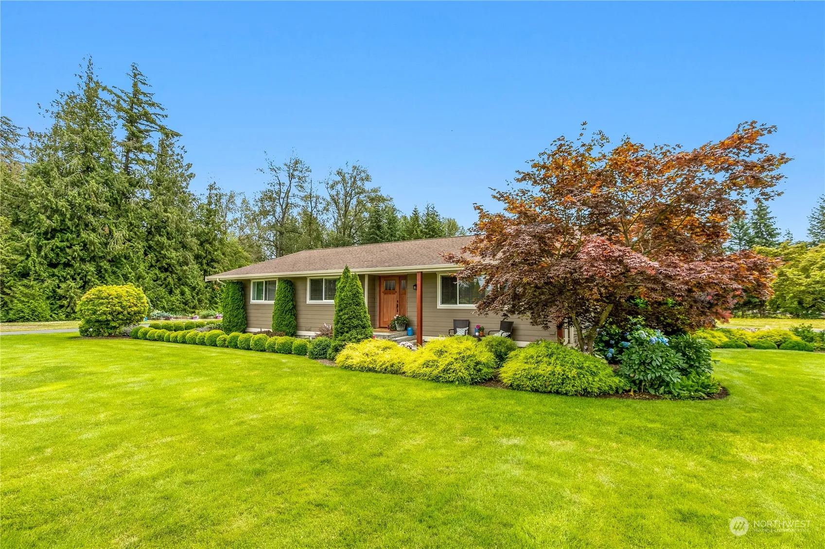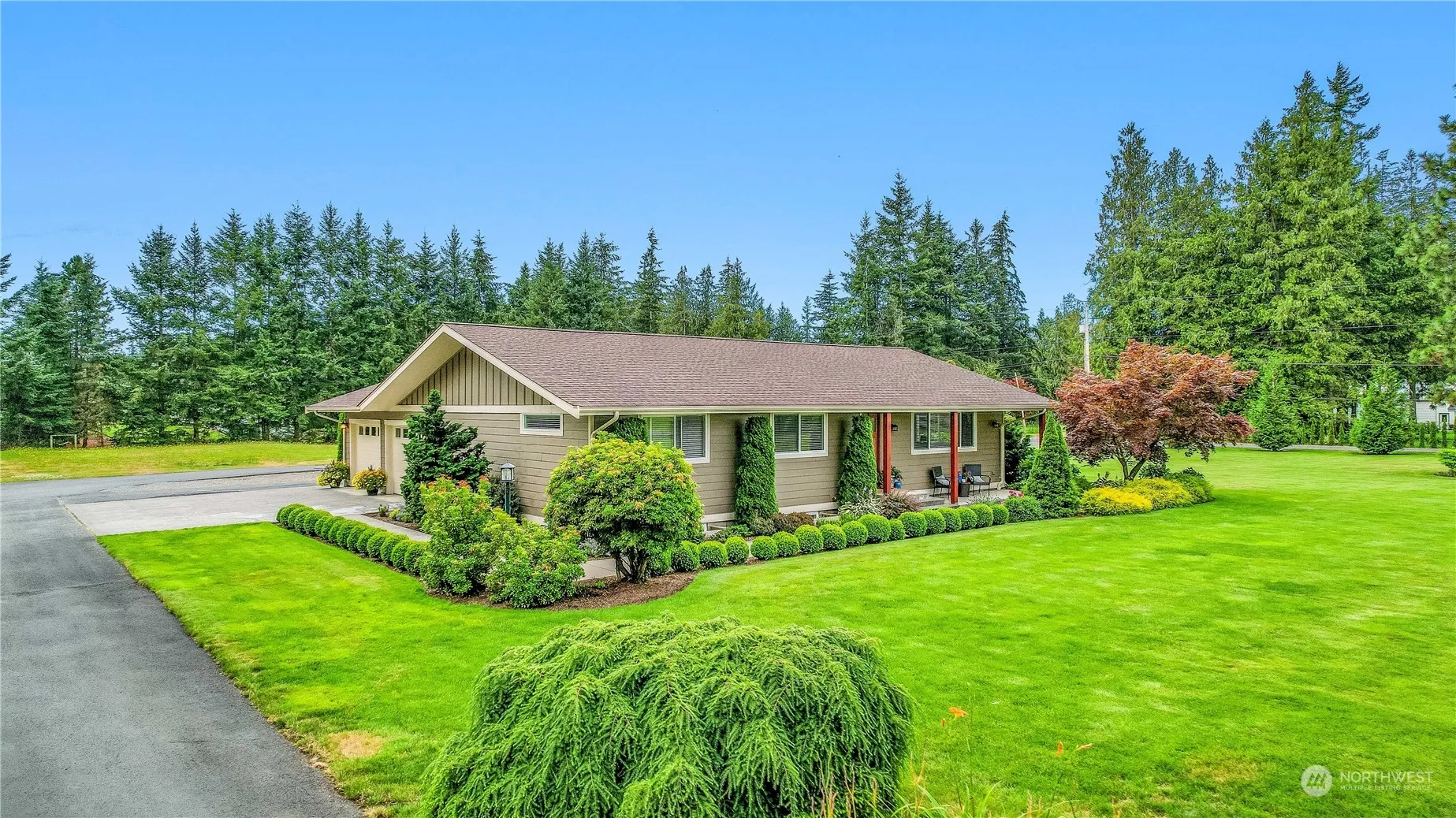 Come see what’s inside this 3,000+ sq ft 5-bedroom home on just shy of 3 acres. Complete remodel in 2014. Open concept main floor with vaulted ceilings. Spacious kitchen with high end appliances, quartz countertops and oversized island for entertaining. Full basement with large rec room wired for sound, tons of storage space and a walk out covered patio. Oversized concrete deck adds to the entertaining space on this one-of-a-kind home. CAT 6 cable throughout. Two separate parcels make up this private 2.97-acre lot. Mature landscaping has been meticulously maintained featuring an in-ground sprinkler system. Paved circular driveway for ease of coming and going. Raised bed fruit and vegetable garden adds to the outdoor enjoyment.
