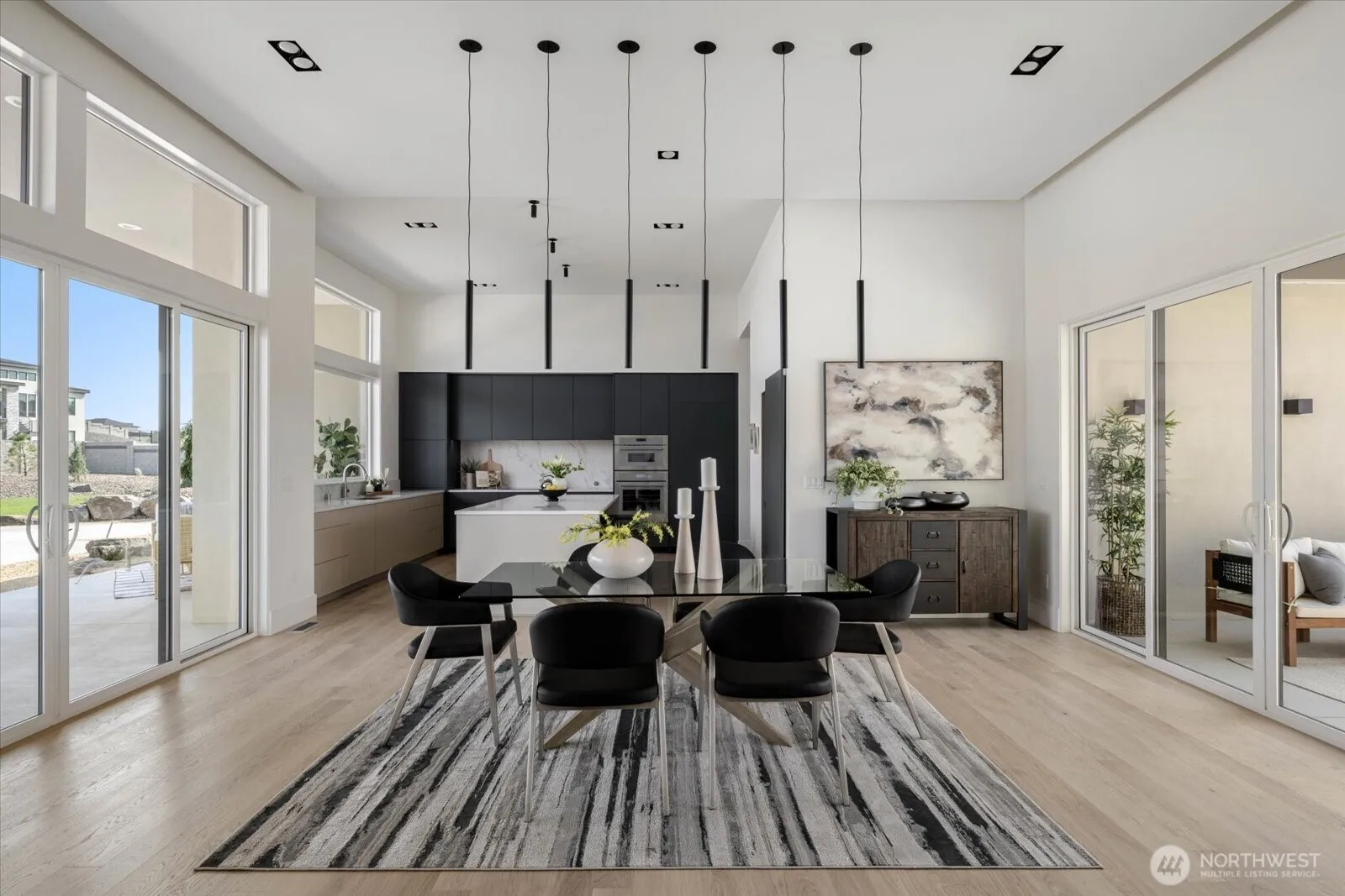 Parade Home by Dream Builders Homes! This residence blends timeless craftsmanship with modern comfort. Engineered white oak flooring flows through open living spaces with 9’–12’ ceilings and expansive windows. A chef-inspired kitchen features Thermador appliances, a hidden coffee bar, and a built-in icemaker. The living room centers on a 48″ linear gas fireplace, with a flexible media room nearby. The primary suite offers a spa-style bath with soaking tub, heated tile floors, and a large walk-in closet. Outdoors, enjoy a 16′ x 35′ saltwater pool, hot tub, gas firepit, and private courtyard. Stucco and stone finishes complete this showcase of design and quality.