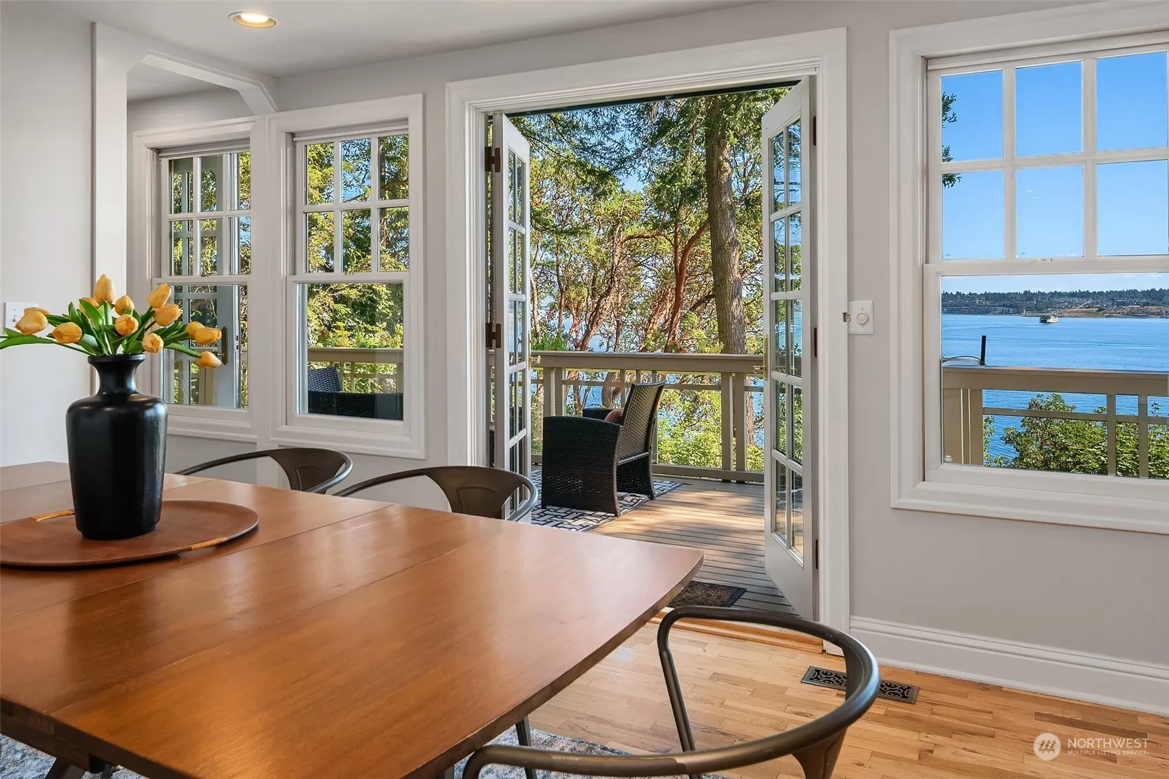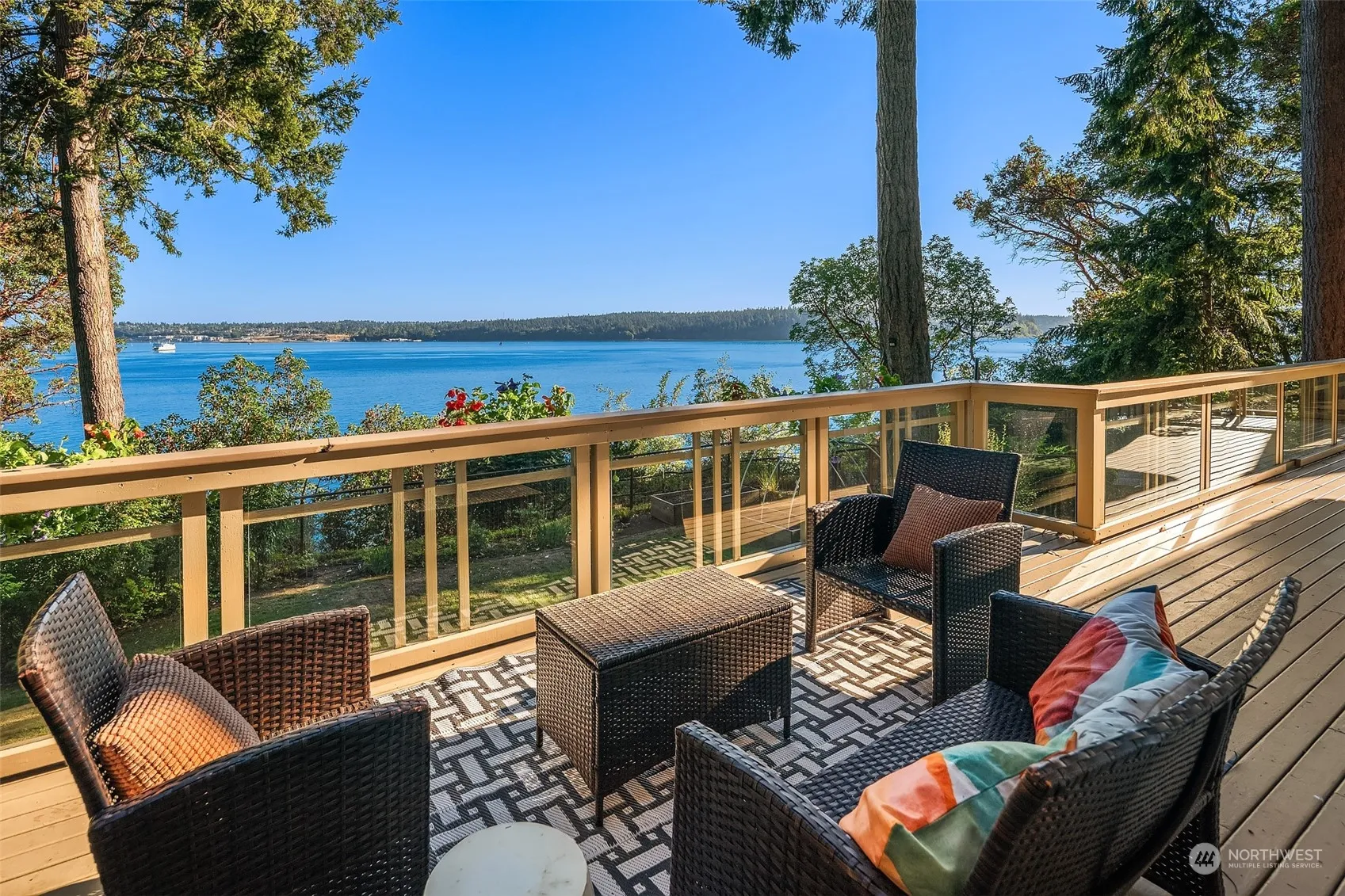 Fantastic opportunity for an island estate with a gorgeous, generous & stately 3+ bedroom main house with high-bluff, south-facing sound, mountain & city views AND an additional 3 bedroom beach house at the water’s edge. Main house enjoys hardwood floors, two fireplaces, lovely antique built-ins, french doors leading out onto the view deck from the living/dining areas, and a very private lower-level primary suite with custom-tiled shower, soaking tub & dressing room. Upper floor is a private oasis with new carpeting and fresh paint. The 2.72 acres feature lovely mature landscaping, a greenhouse, two-car garage & studio. Beach house is oh-so charming & outfitted for summer fun with decks, built-ins & custom touches throughout. A rare find!