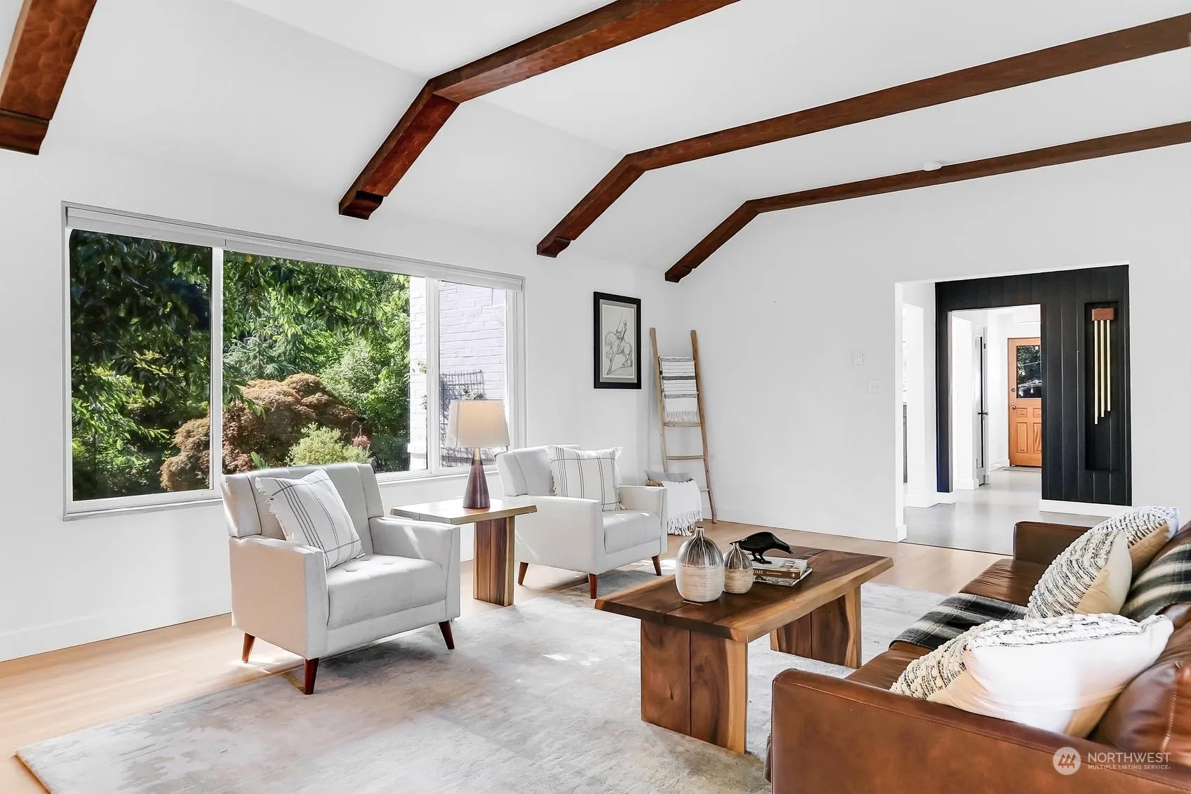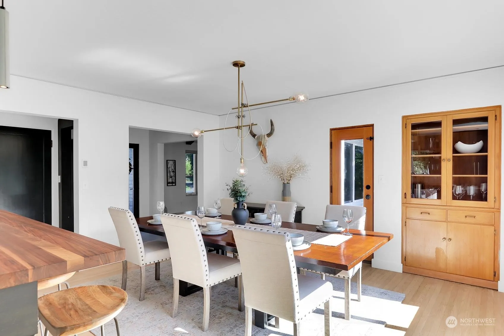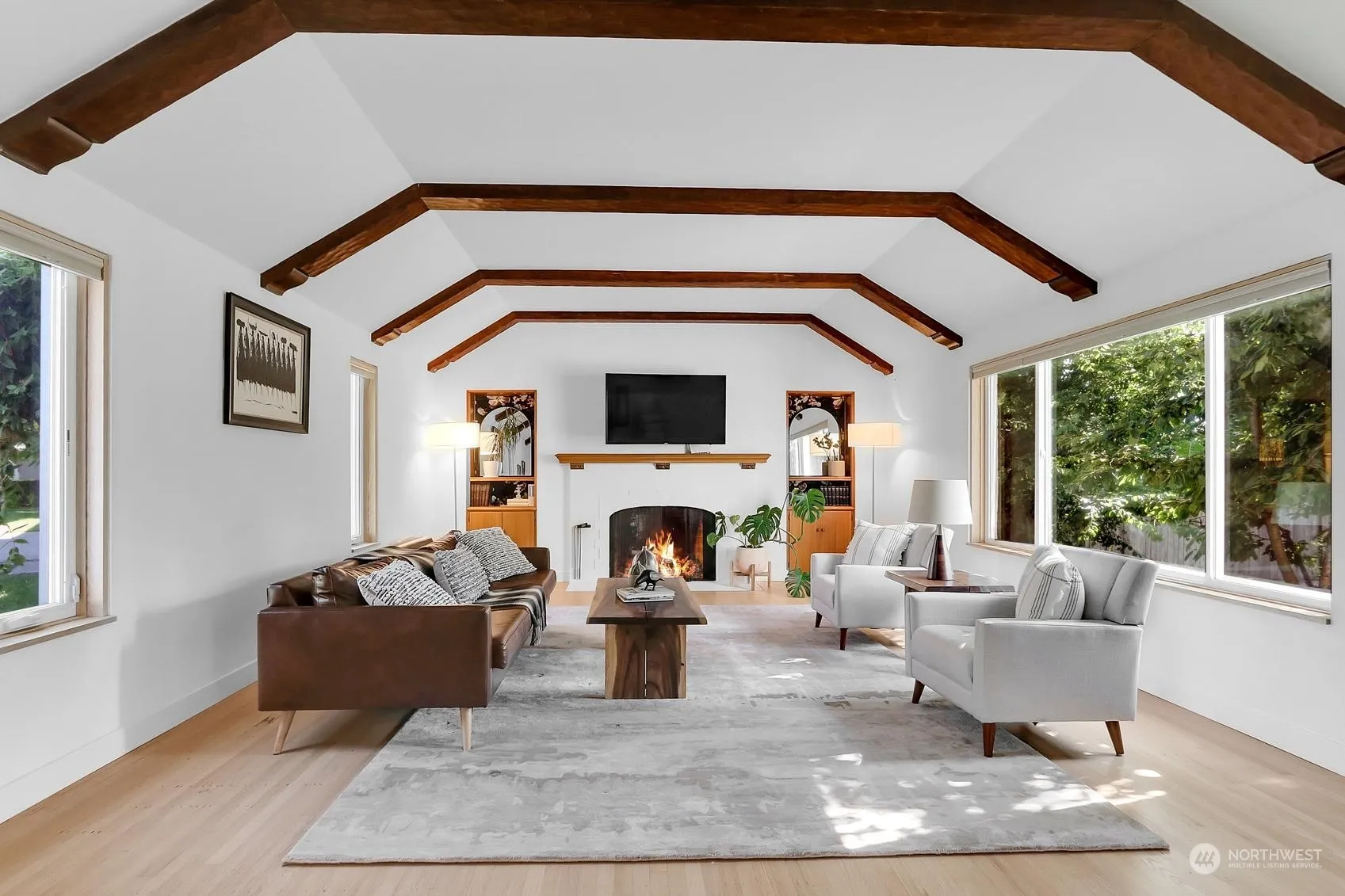 4-bed Richmond Beach home combines modern style w/ historic charm, creating perfect spaces for gathering & entertaining. Formal living room w/ hammered wood beams that frame the wood-burning fireplace. Fully renovated gourmet kitchen showcases tonal & textured design elements, dark cabinetry w/ appliance overlays, brass hardware, & open shelving. Bertazzoni gas range w/ dual ovens positioned for peekaboo views. 2 eating spaces & dining area w/ built-ins provide ample room for hosting. Huge fully fenced backyard offers multiple gathering areas, raised garden beds, fruits, veggies. Top-floor Primary Suite w/ view deck, 5-piece bath, WIC, 2nd W&D. Lower-level rec rm, complete w/ bar & wine cellar. New Roof. Moments to schools, beach & parks.
