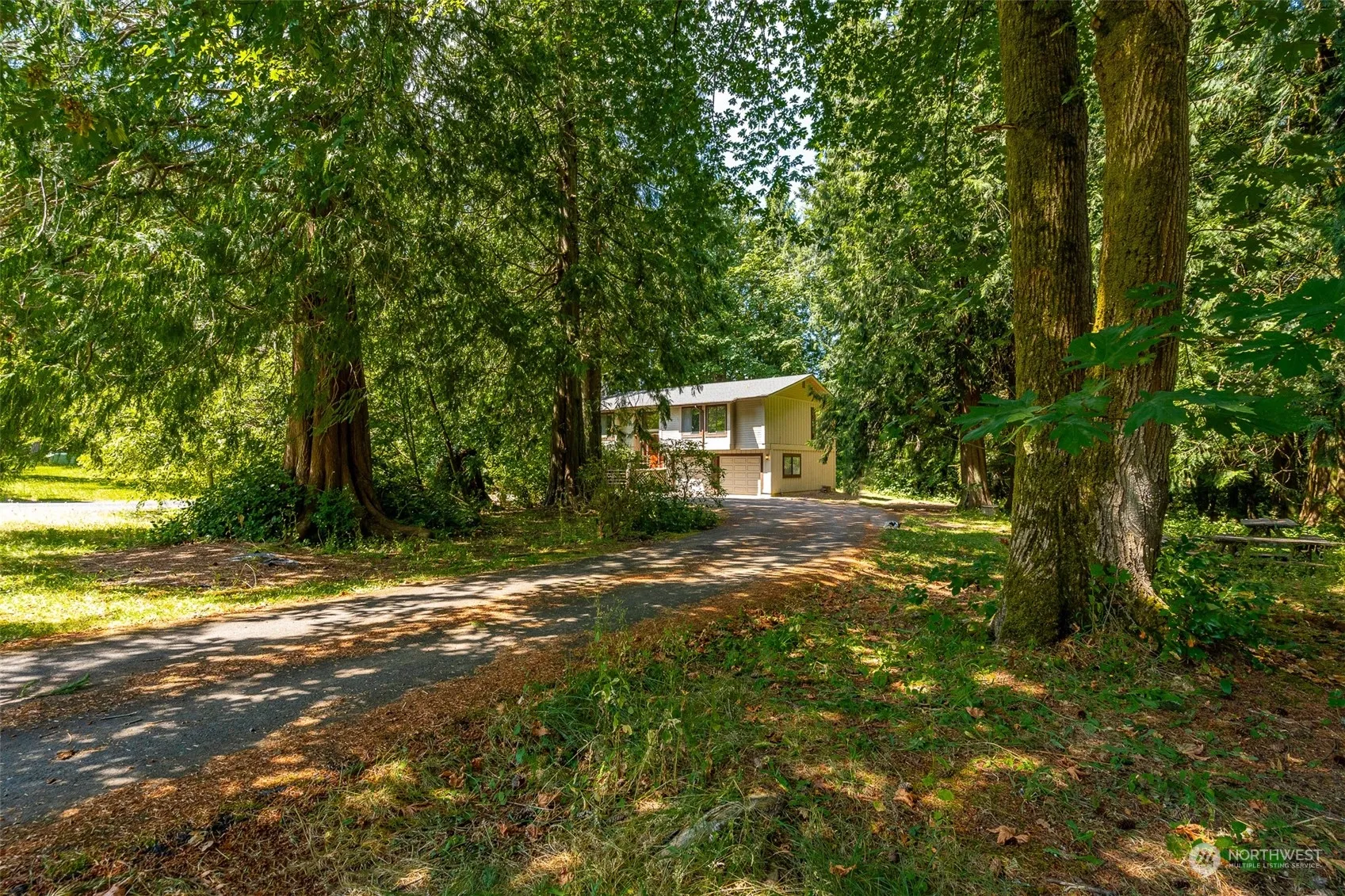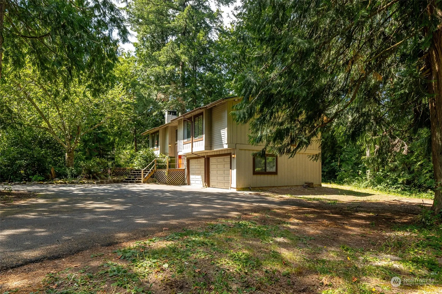 Step into this mid-century split-level gem, offering nearly 2000 sq ft of living space on a lovely 5 acre property. Nestled on a quiet road, this home is your private retreat, surrounded by mature trees, a serene creek down the hill, and ample room for gardening and entertaining. Main Level Delights include a spacious living room, dining area, and functional kitchen, along with 3 good sized bedrooms. Lower Level Charm boasts a family room complete with a built-in wet bar for entertaining and the laundry room and the spacious 2 car garage. Expansive lush grounds with room to create the garden of your dreams and host unforgettable events! Brand new roof, new panel and primary bath updates. Located in the beautiful Castle Rock area.