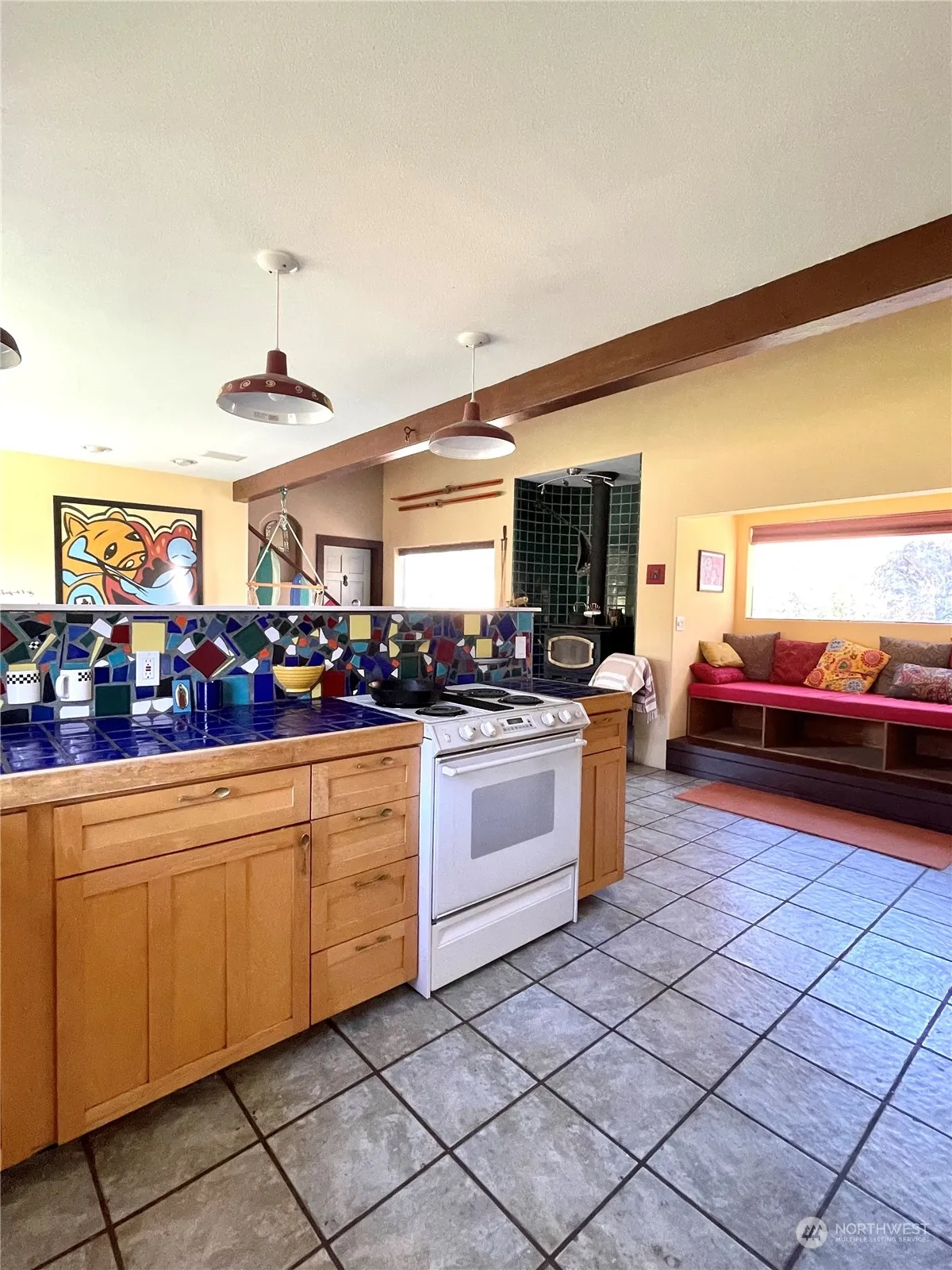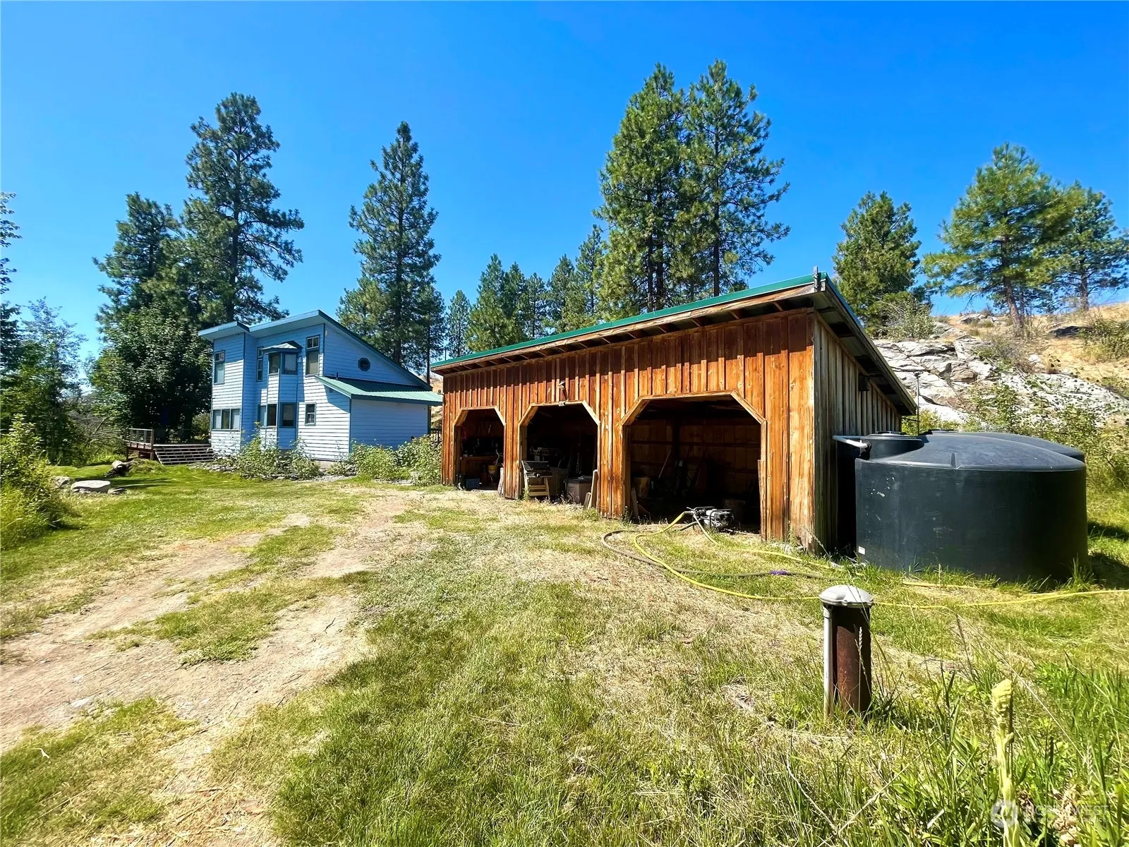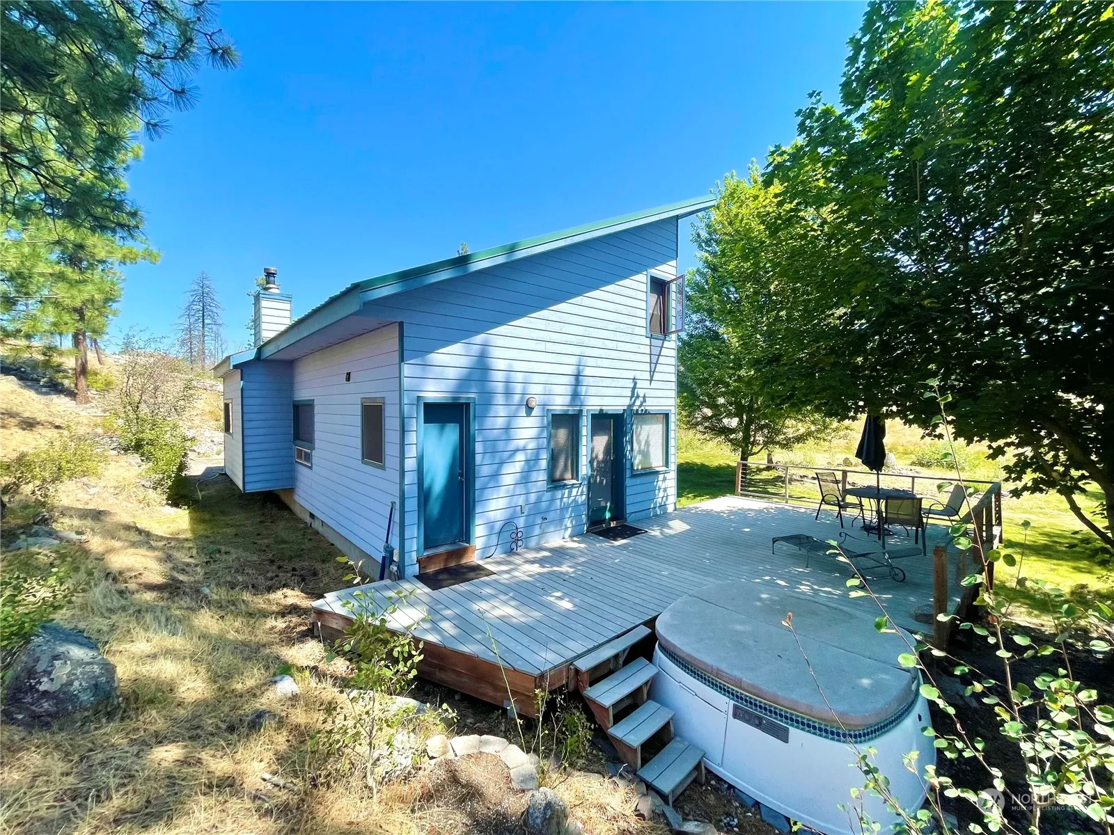 CAMERON LAKE LOOP – SECLUDED OASIS-20 ACRES. 1,300+ sq. ft picturesque home w/2 bed/1.5 bath. Uniquely highlighted w/crystal stone touches. Vaulted ceilings, Living rm w/ceiling fans, bay windows w/seats & storage, wood stove with Amethyst crystal in tiled wall. Kitchen w/appliances, Italian-tiled countertops & dining rm area. Spacious utility rm w/freezer, built-in shelves & W/D. Bonus family rm w/natural lighting by many windows, w/door leading to new back deck. Unique 3/4 bath w/Thunder Egg inlayed shower, deep cabinets & exterior access to hot tub. Both bedrms & 1/2 bath upstairs. Seasonal creek. Detached 3-bay equipment shed. Private well & septic. Wildfire protection sprinkler system. Fully fenced acreage. $365,000 H-3582/MLS-2273139