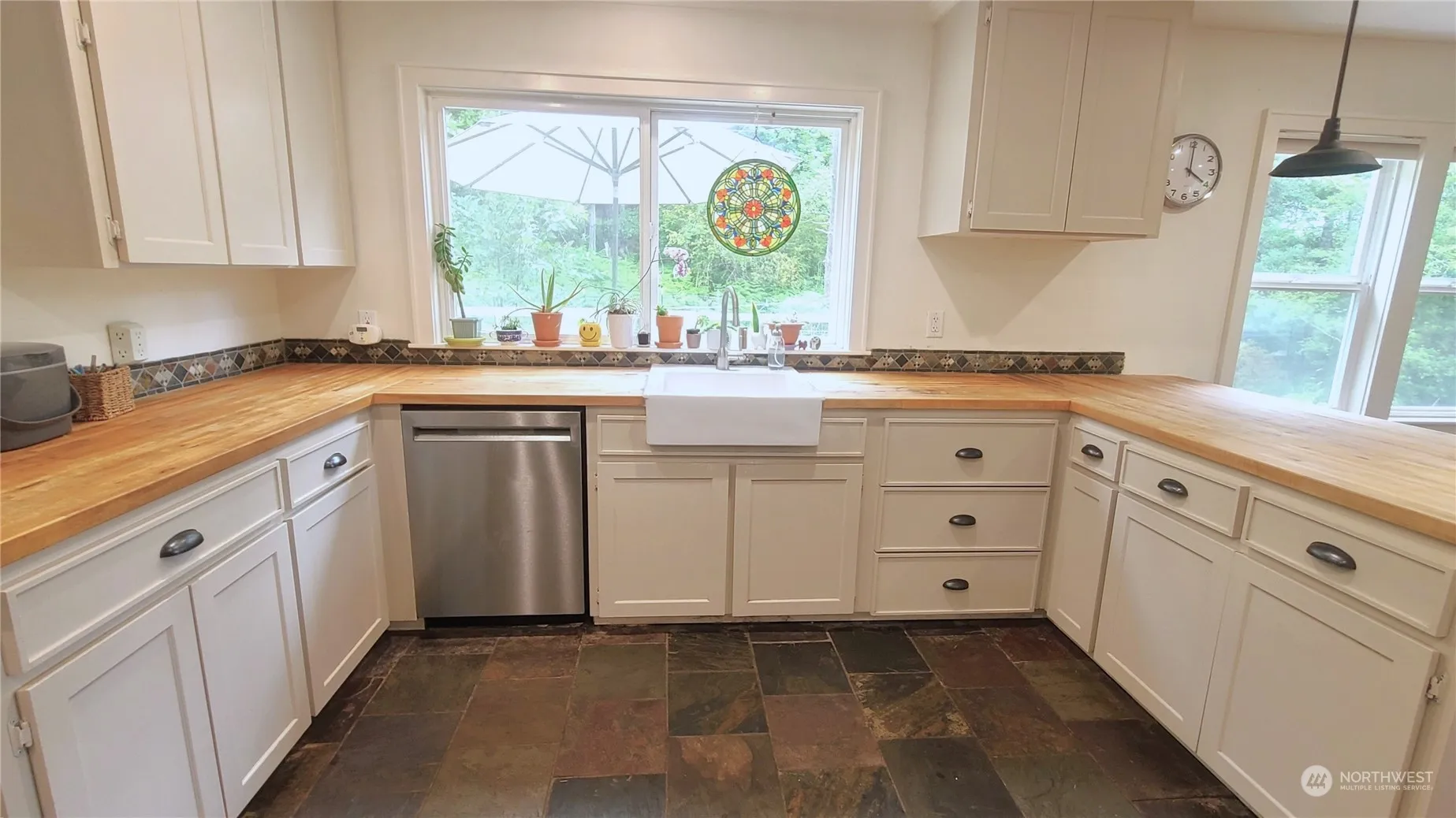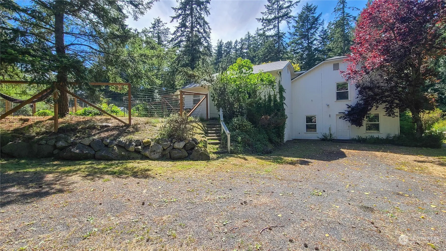 Find peace in this beautifully updated home on 6 lush acres, perched on a small valley just a 7-minute drive from the center of Friday Harbor. The light-filled main floor has vaulted living room ceilings, kitchen, dining area, bathroom, 2 bedrooms and 2 other rooms. From the living room walk out to a resilient deck in the fully fenced backyard. Downstairs holds a rec room with built-in storage, laundry room and primary suite with 6 piece bathroom. Also downstairs is a separate guest suite with full kitchen, laundry bedroom and ¾ bathroom. The guest suite has its own parking area entrance. The thriving raised bed garden is fully fenced with a separate greenhouse. The 2 story shop has a roll-up door. Roof replaced just 4 years ago.