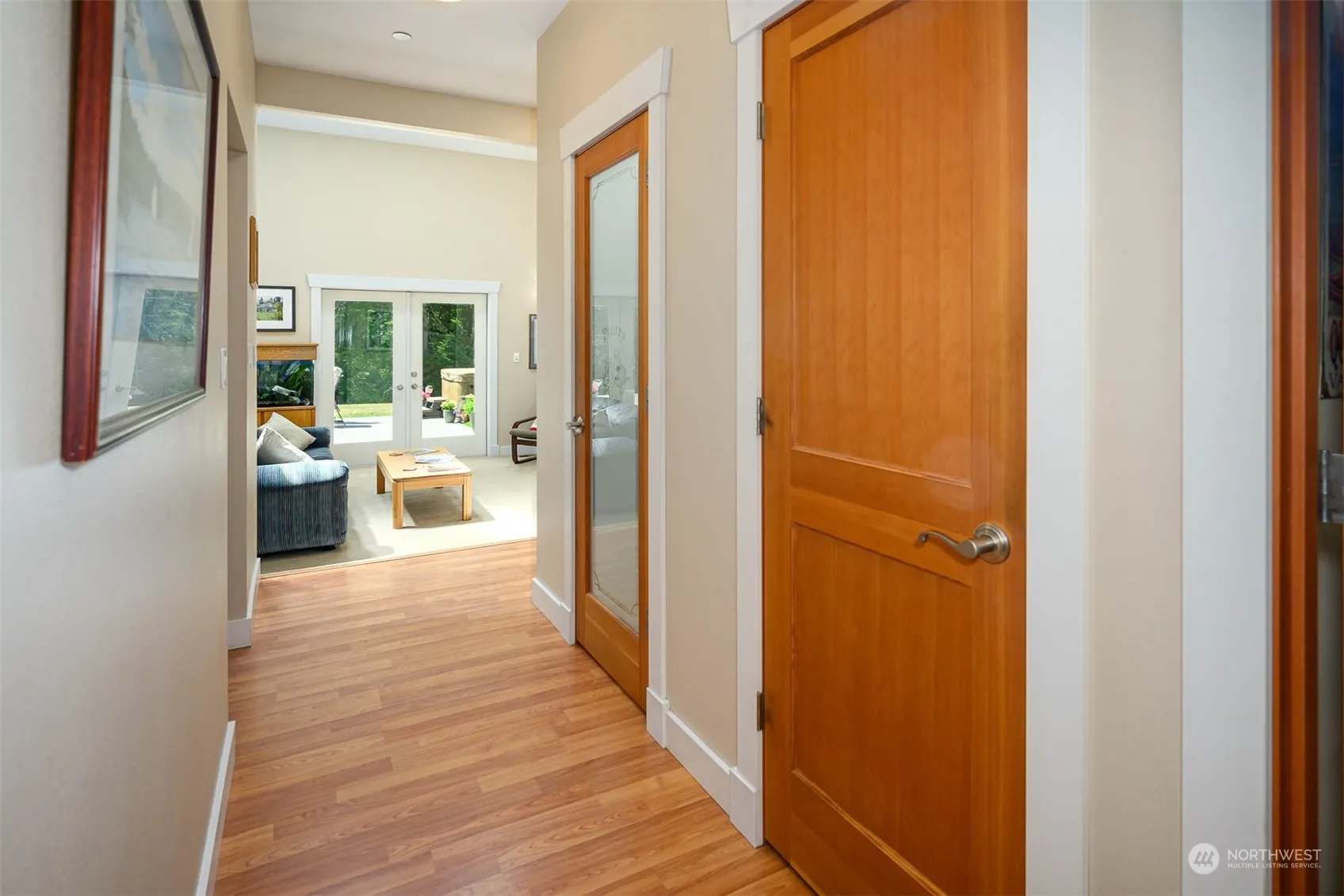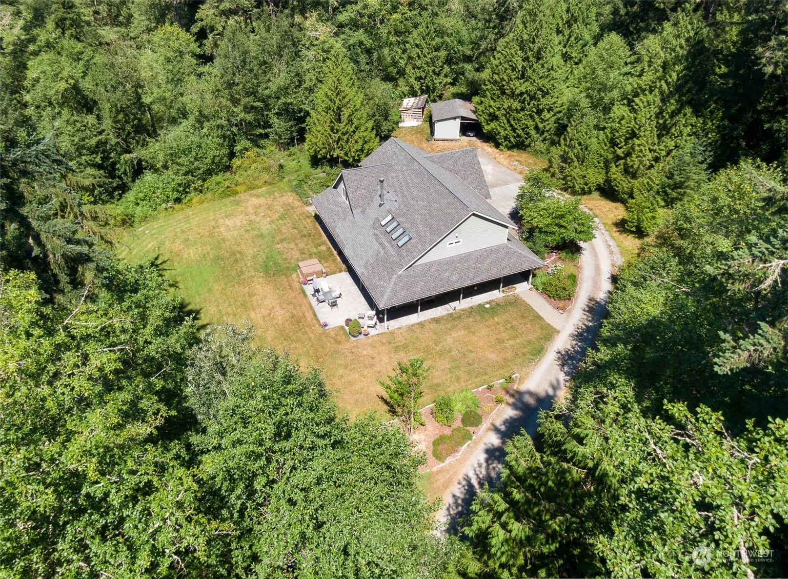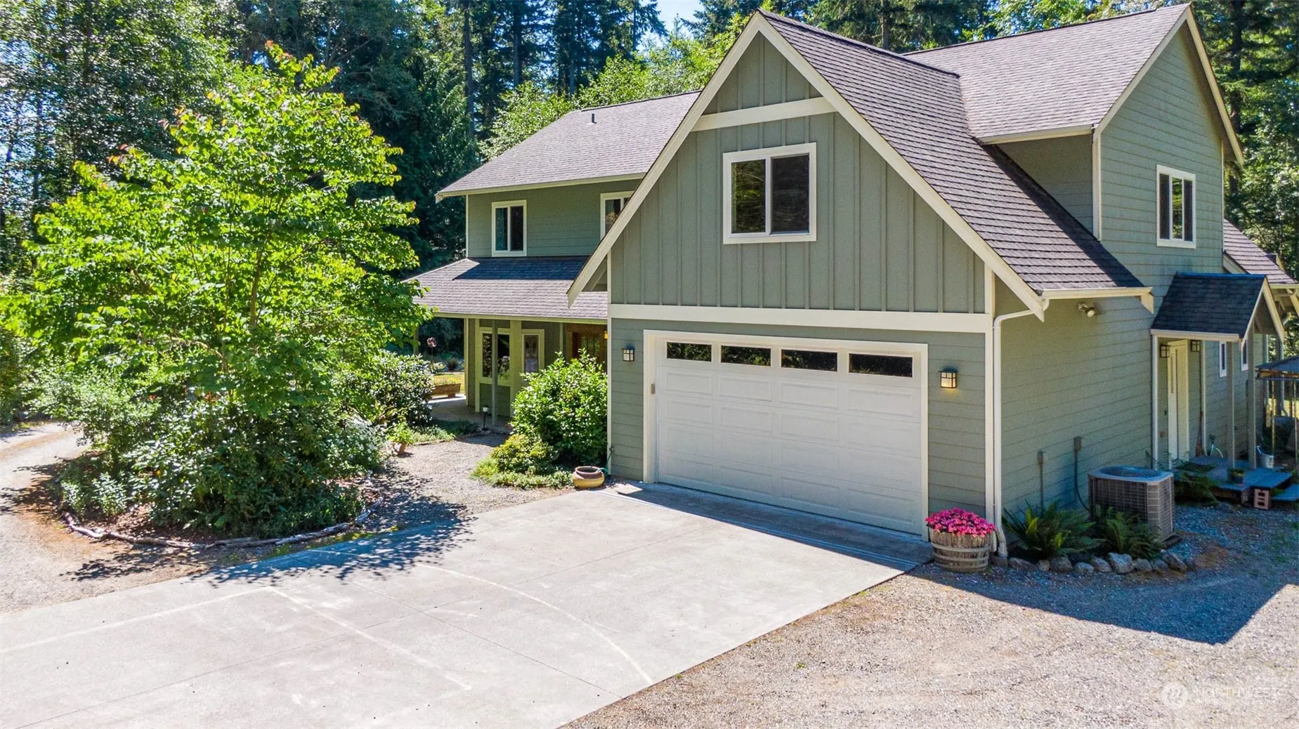 Enter through the winding drive to this spectacular 3,034 square ft. 3-bedroom, 3-bathroom home on 4.8 sun-drenched private acres. Built in 2006, this house has it all: large kitchen w/ eating area, walk-in pantry, living room with French doors, vaulted ceilings, a wood-burning stone fireplace, and home office. Enjoy easy living with the main floor Primary ensuite & 2 bedrooms upstairs, a large bonus/family room, a 2nd office or craft room, and an attached 2-car garage. Don’t miss the covered wrap-around porch, large sun-drenched patio, garden area, and outbuilding w/ carport. Complete privacy, yet very close to town and ferries. It’s an island dream property!