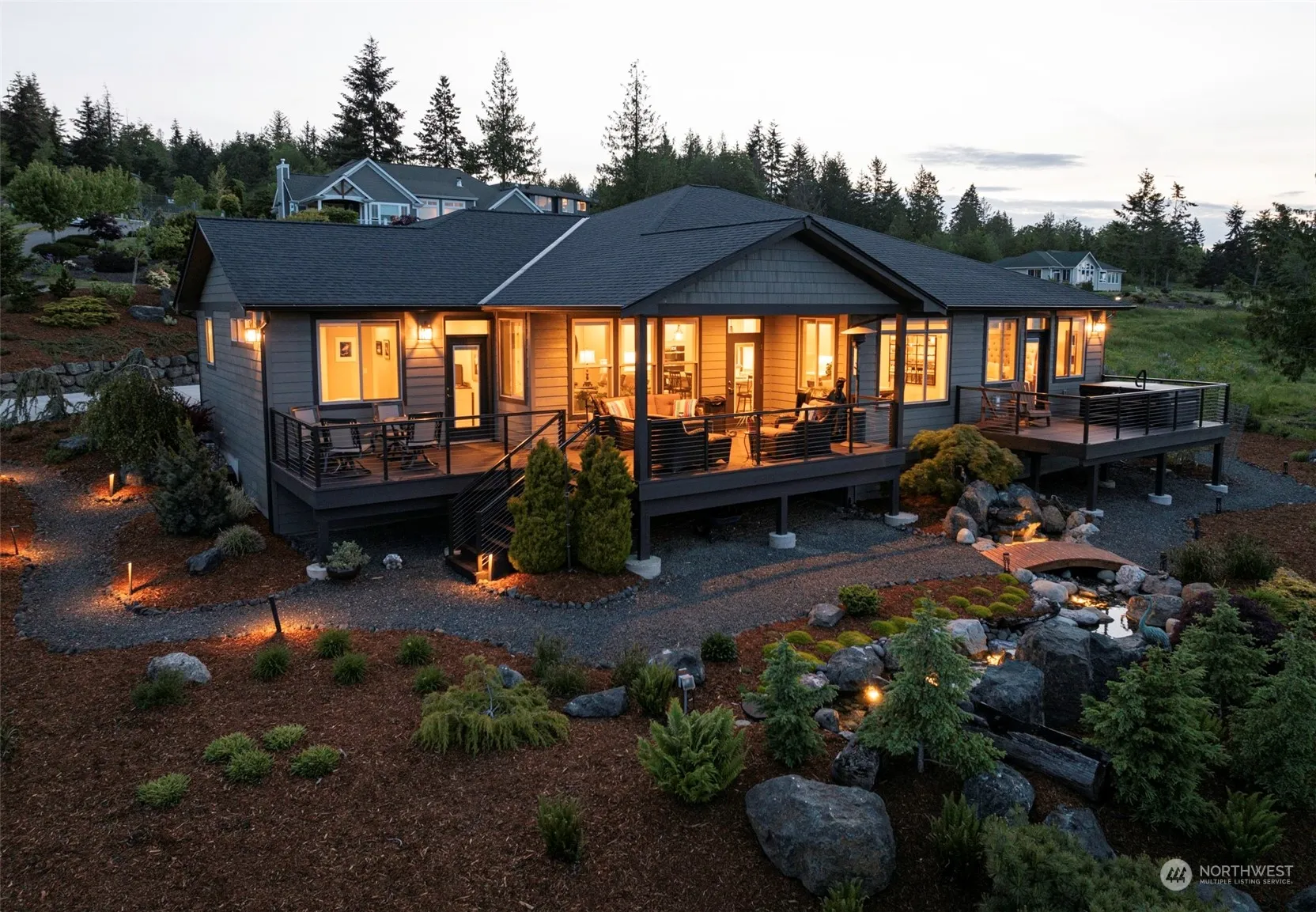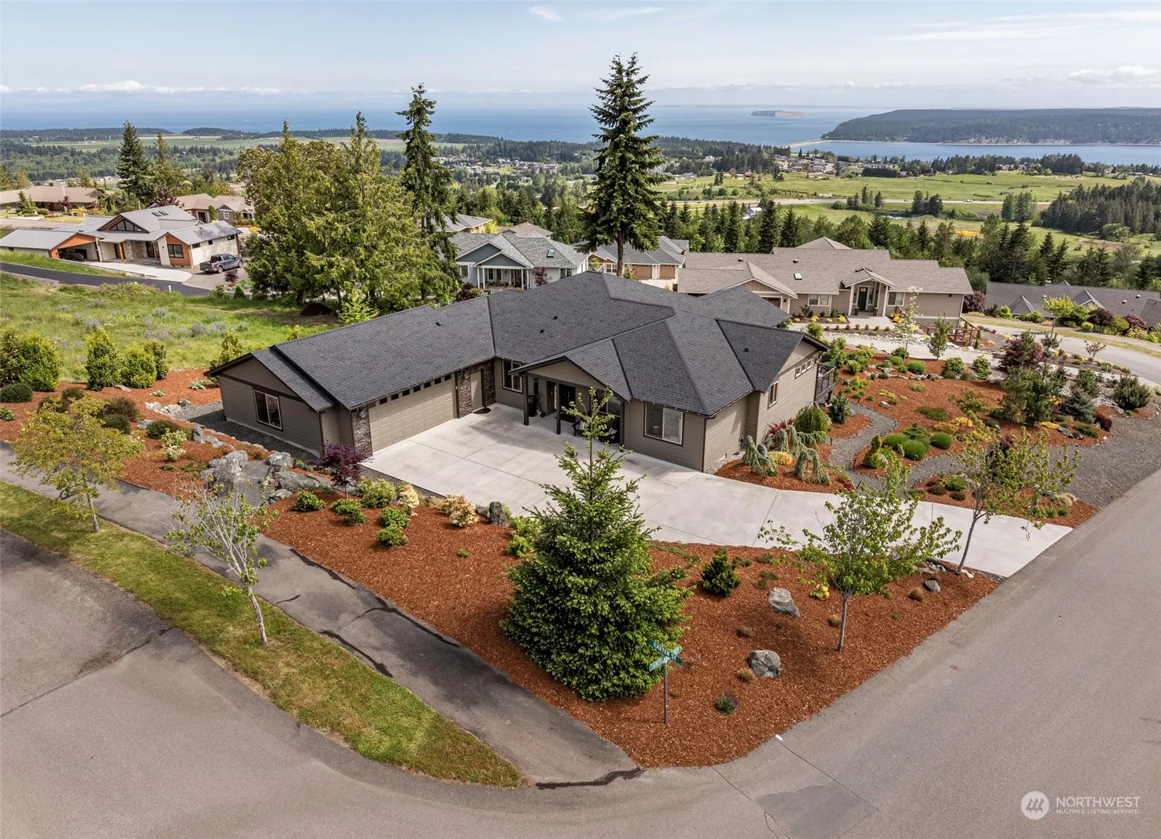 The moment you step through the front door of this custom-built home the panoramic water views will draw you in. Soak in the beauty of Mt. Baker, Protection Island & the Sequim Dungeness Valley. High-end, luxury finishes throughout, thoughtfully designed storage solutions, & open concept living make this a wonderful entertaining & living space. Pristine landscaping with trickling water features & a covered deck. Soak your troubles away in the salt water hot tub or curl up while watching the cruise ships go by. This home features a luxury guest room, private deck, extra wide hallways, multiple closets, built in garage storage. Every nod to comfort & convenience has been thought of. Come see a remarkable home with a remarkable view!