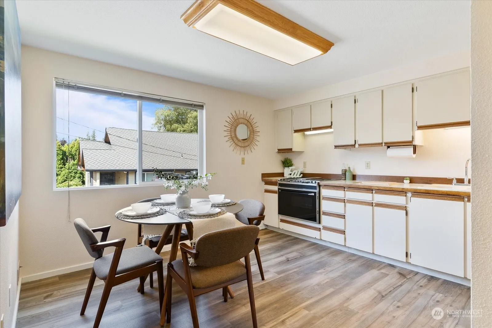 Discover the charm of this top-floor unit in a prime Edmonds location, just steps from 5 Corners & minutes to magical downtown Edmonds/waterfront. Enjoy the convenience of popular neighborhood shops/restaurants, Yost Park, & Pine Ridge Park. This unit is perfect for downsizing or a new beginning, featuring fresh flooring throughout, a spacious living room w/cozy wood-burning stove & wet bar + large kitchen w/room for a dining table. Relax outside on your deck & enjoy the sun. In-unit washer/dryer, private garage for parking/storage + additional reserved parking spot. Pet-friendly policy for 2 pets up to 40 lbs & open to investors (below rental cap). This condo is a great opportunity to live at the gateway of all that Edmonds has to offer!